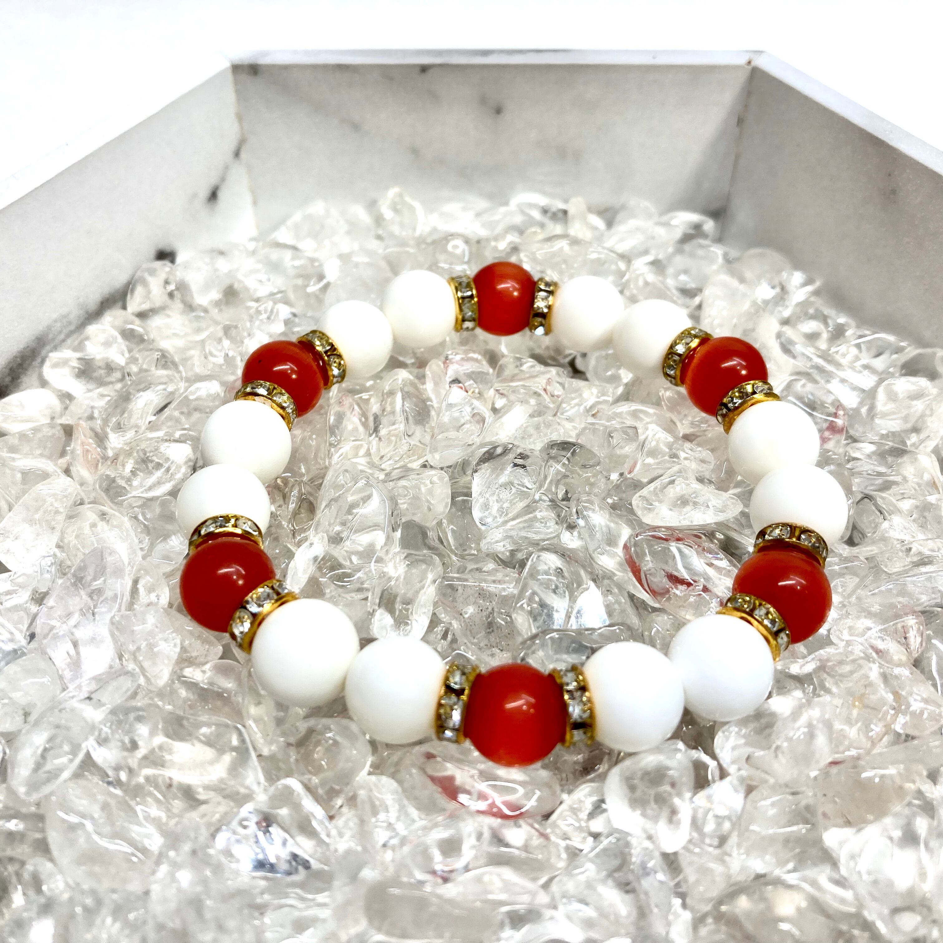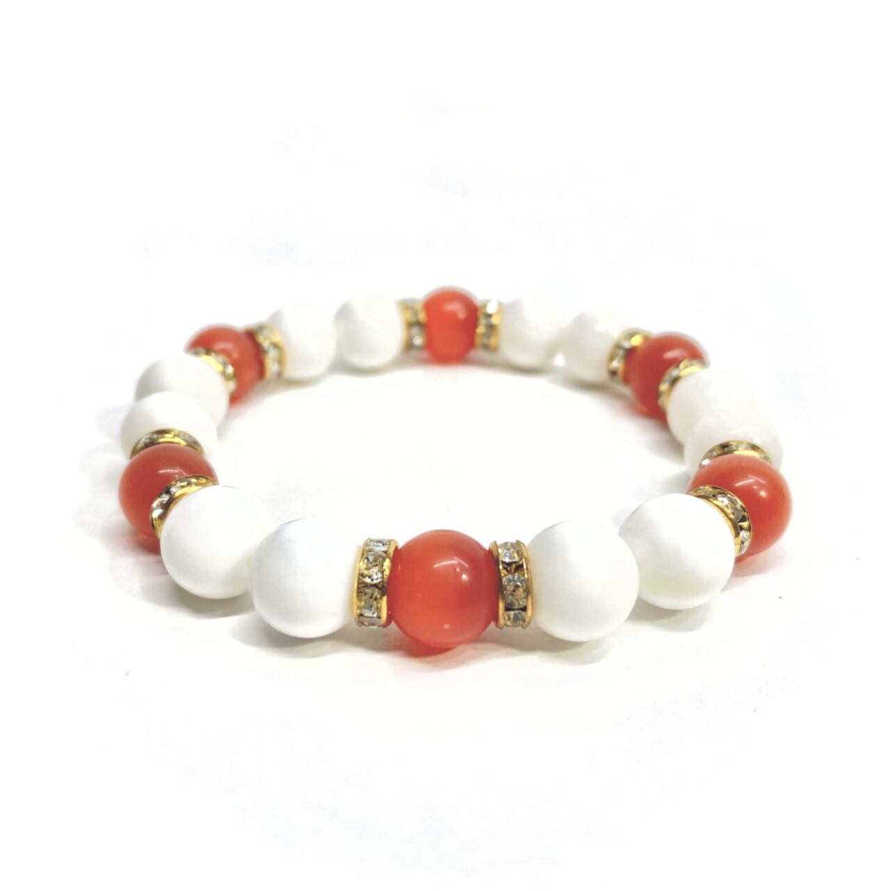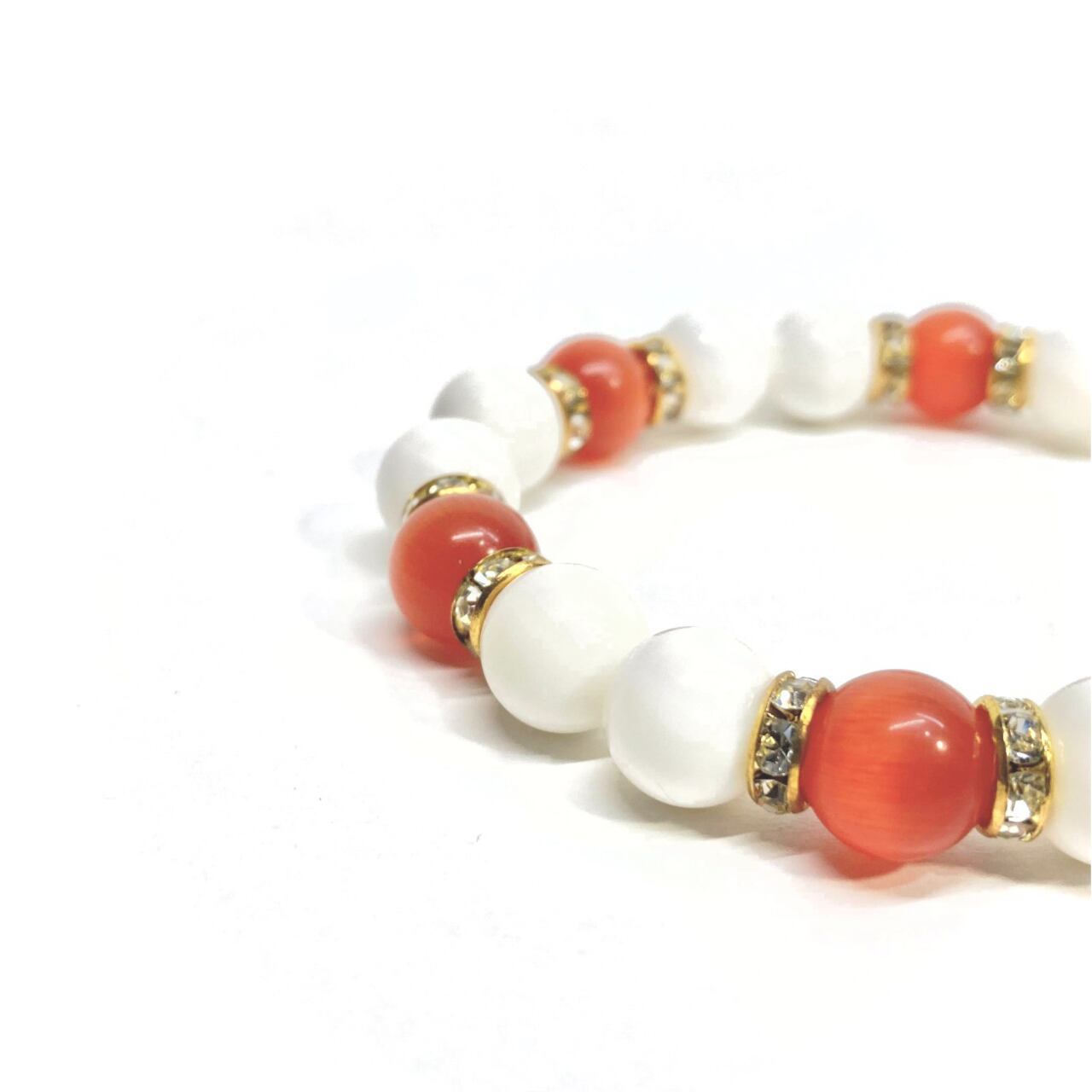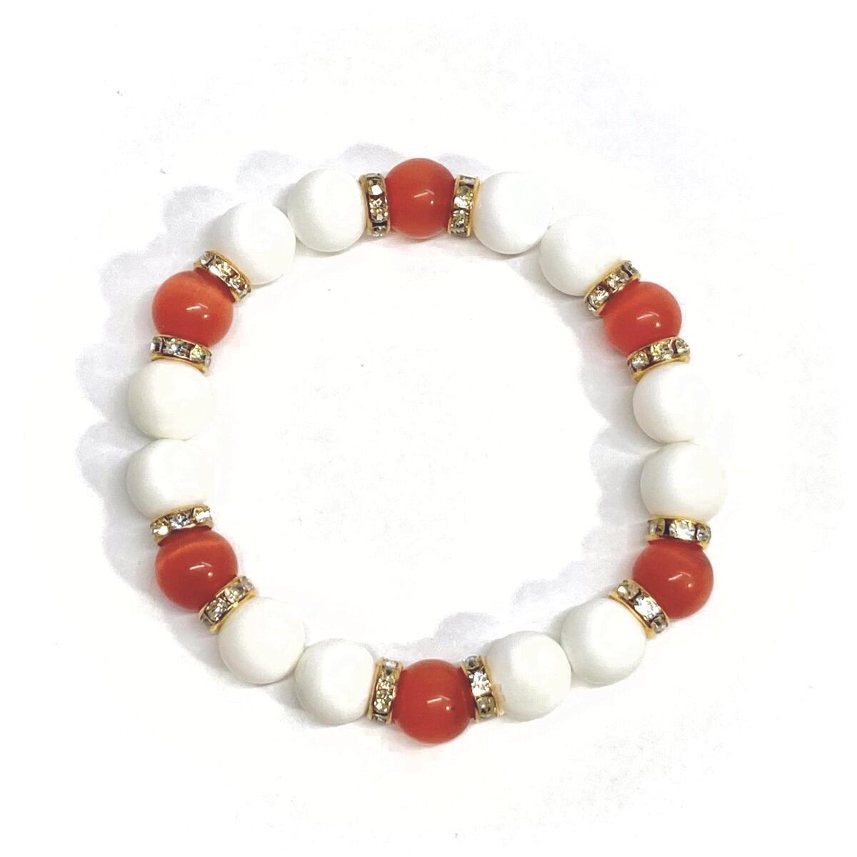 キャッツアイ(レッド) ホワイトオニキス パワーストーン ブレスレット (ゴールド) メンズ・レディース 男性・女性 数珠ブレス 開運