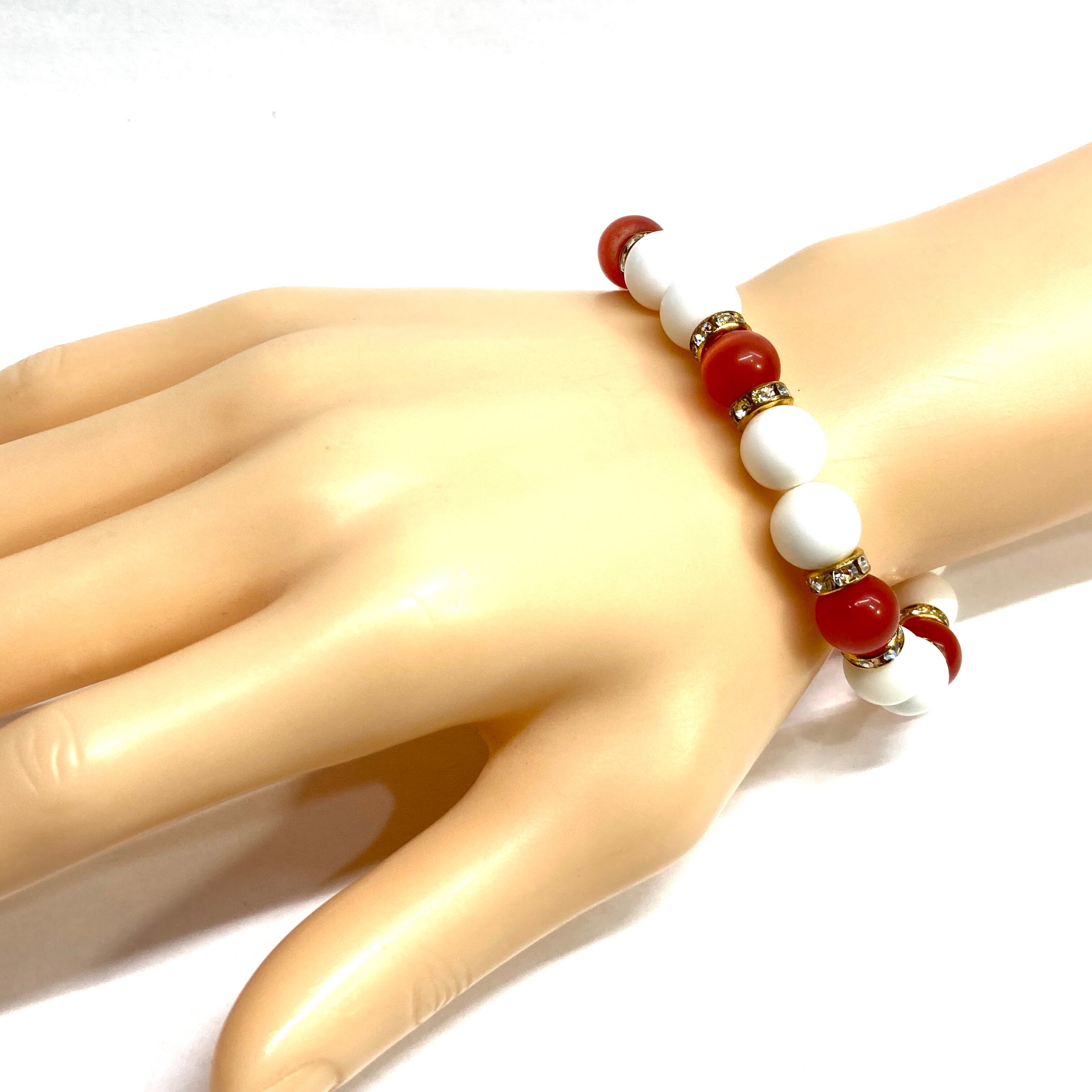 こちらは、キャッツアイとホワイトオニキスを組み合わせたブレスレットです。間にはロンデルを挟み高級感あるデザインに仕上がっています。石大きさは腕にも馴染みやすいように10mm玉で内周約16cm(伸可能)です。数に限りがございますので気になる方はお早めにどうぞ。