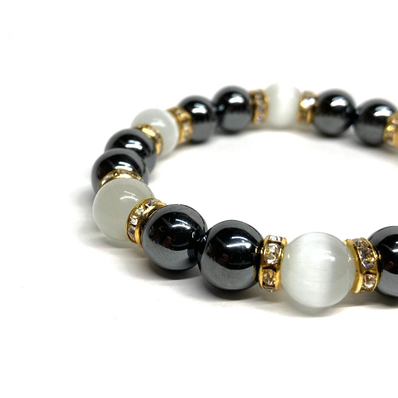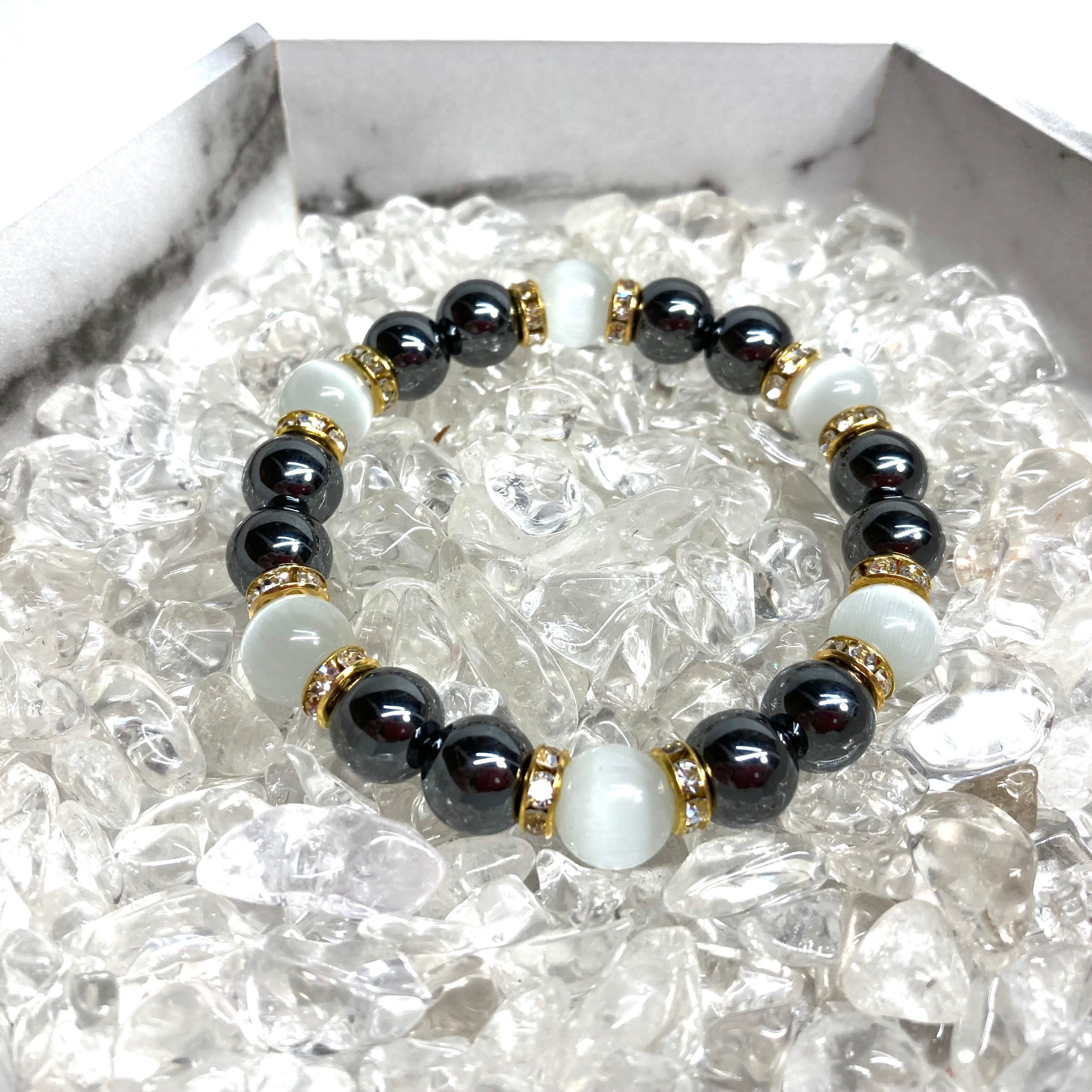 キャッツアイ(ホワイト) ヘマタイト パワーストーン ブレスレット (ゴールド) メンズ・レディース 男性・女性 数珠ブレス 開運