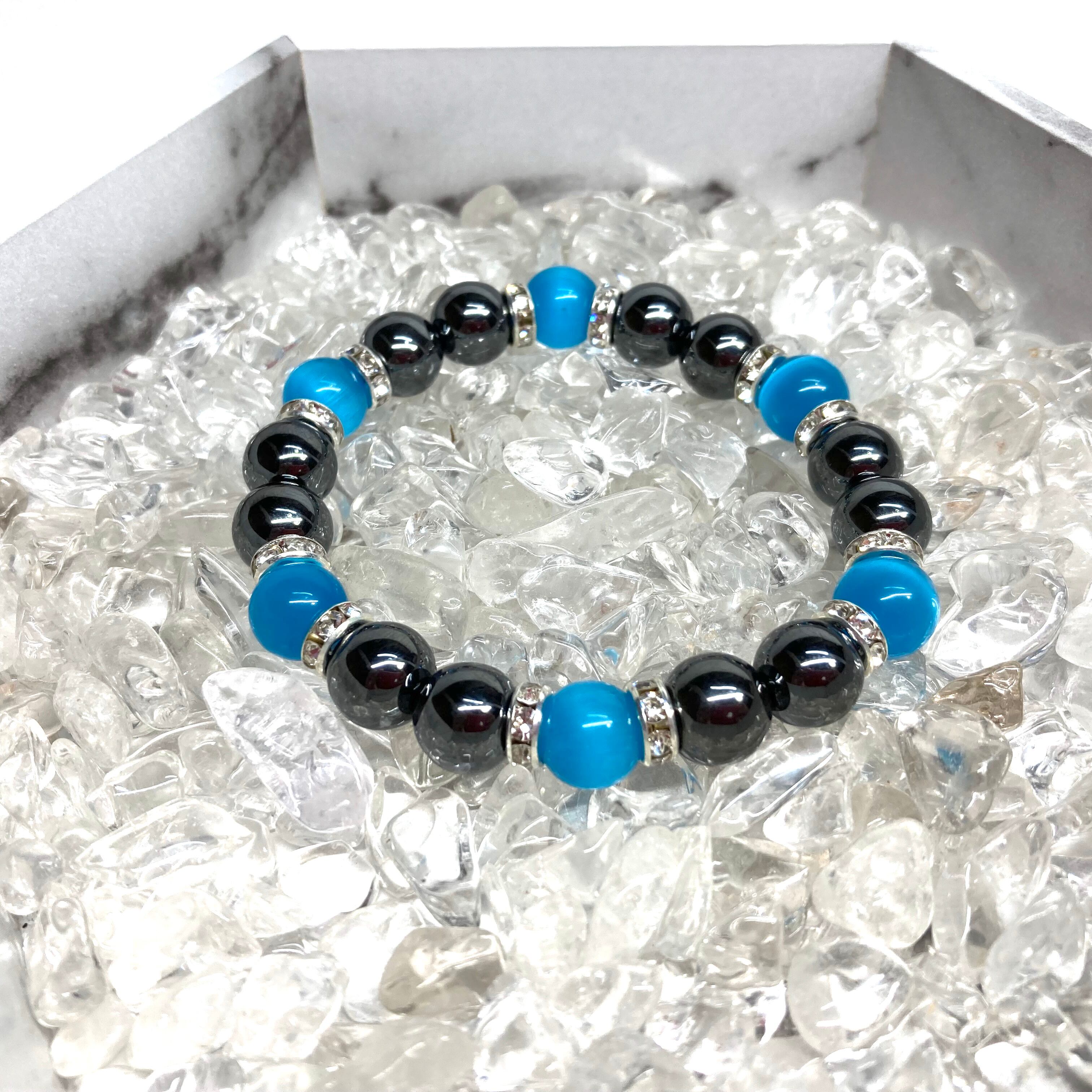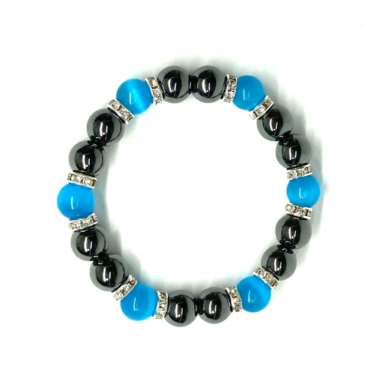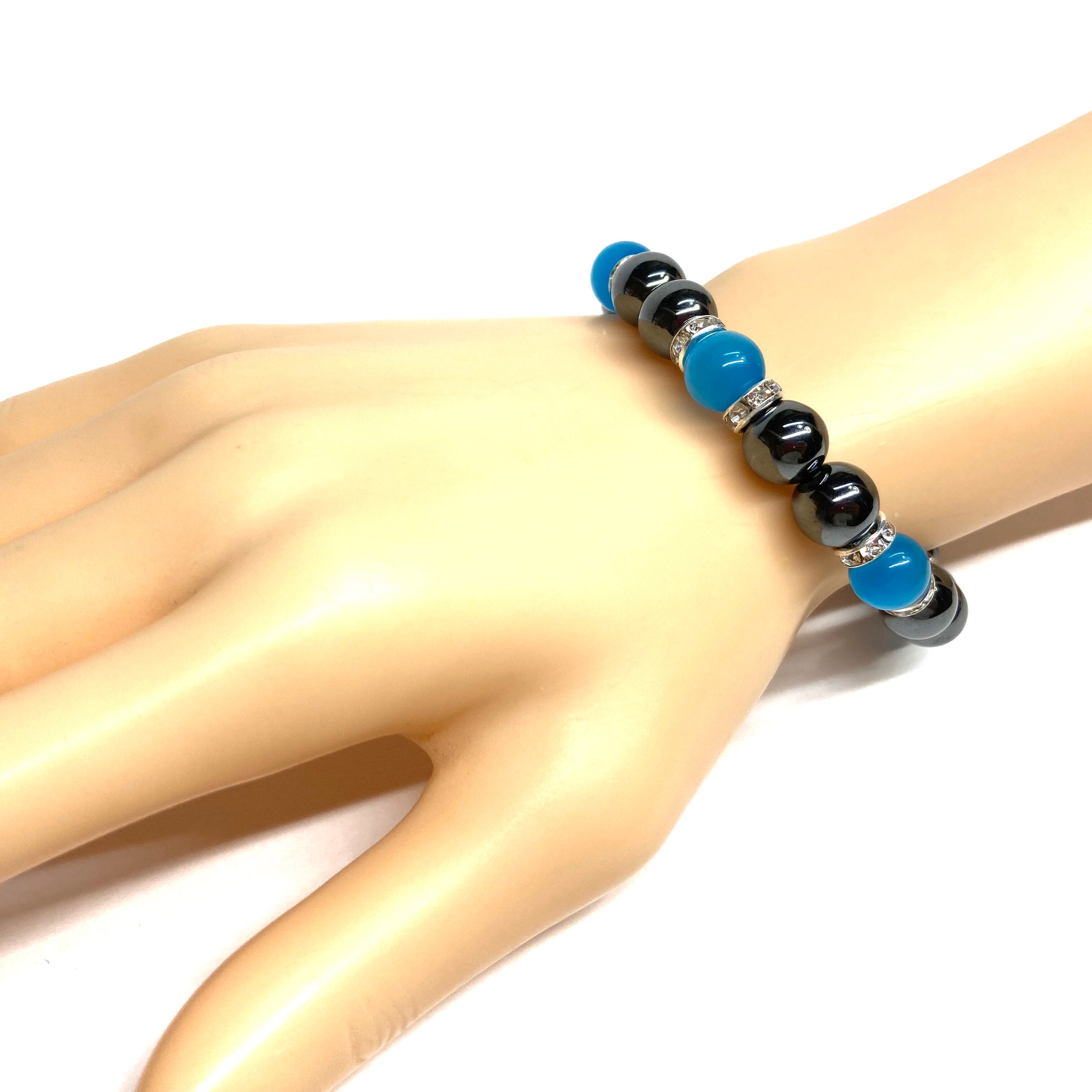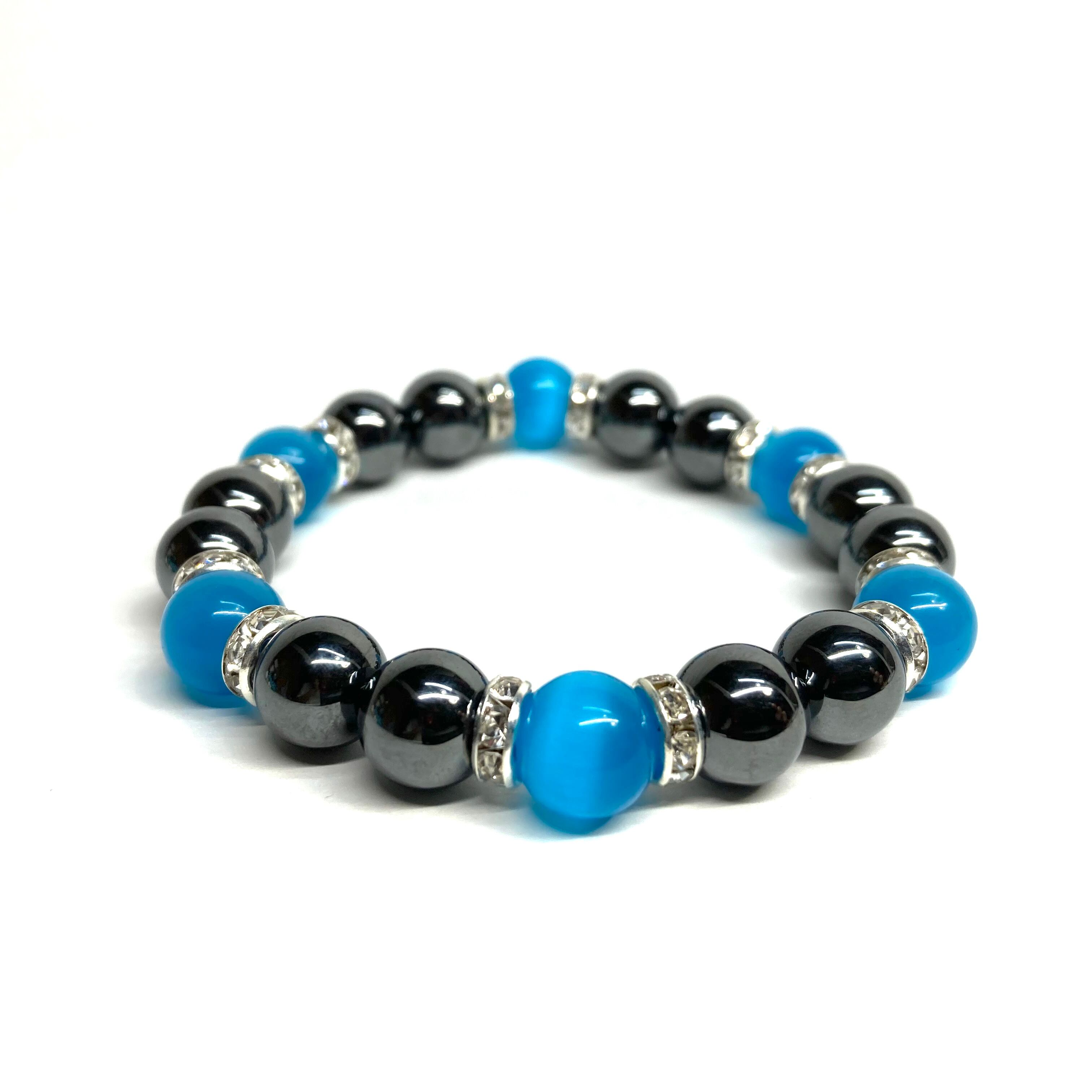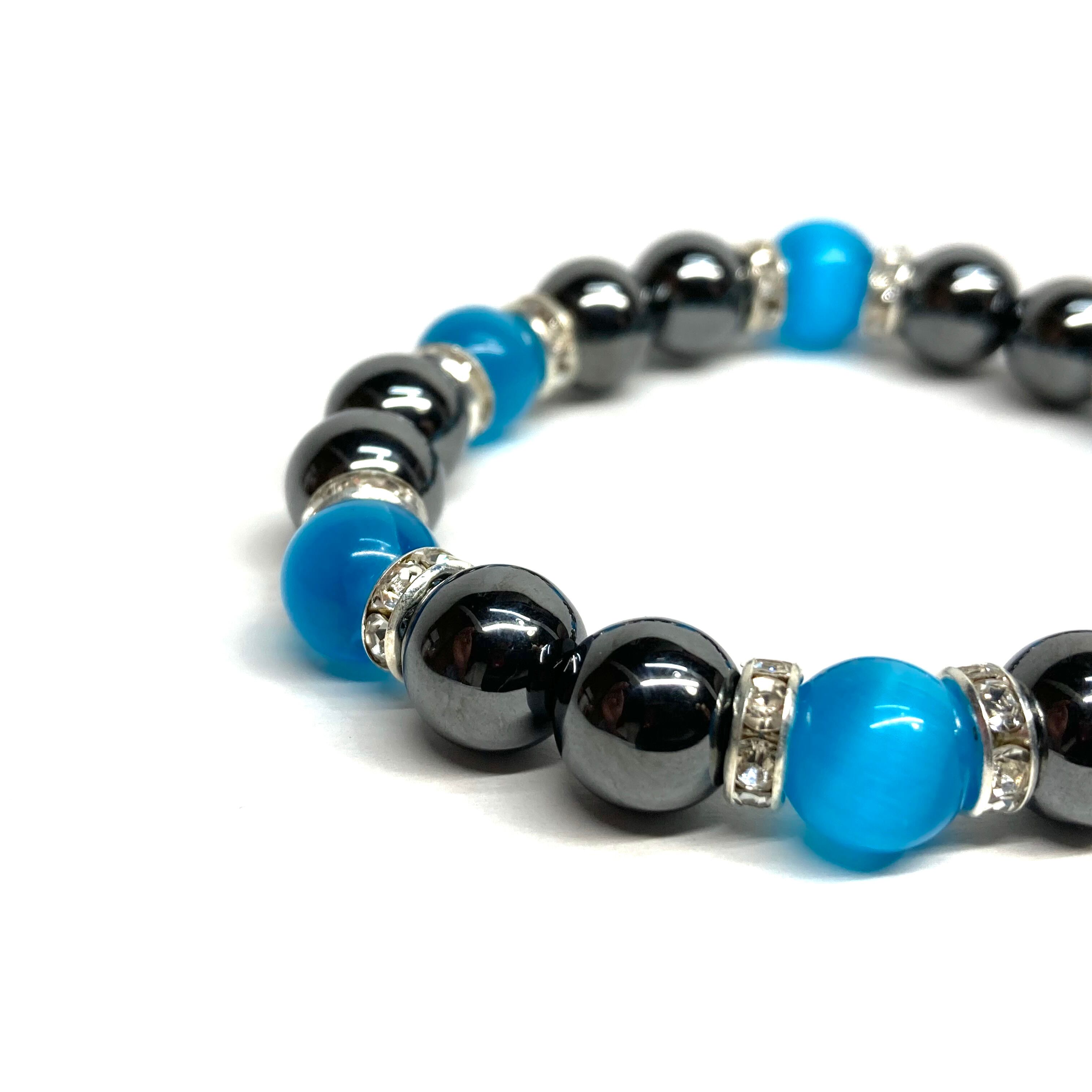 キャッツアイ(ライトブルー) ヘマタイト パワーストーン ブレスレット (シルバー) メンズ・レディース 男性・女性 数珠ブレス 開運