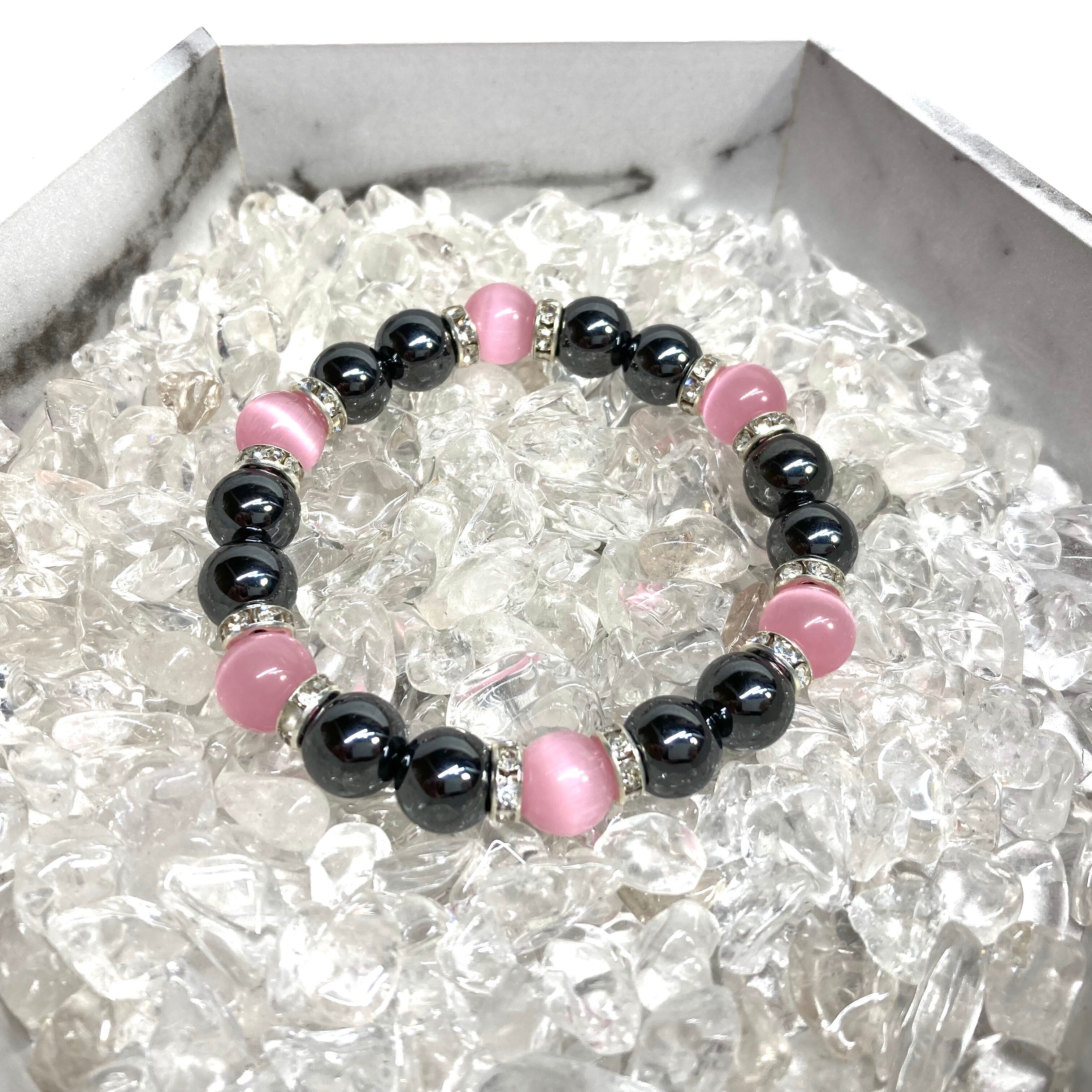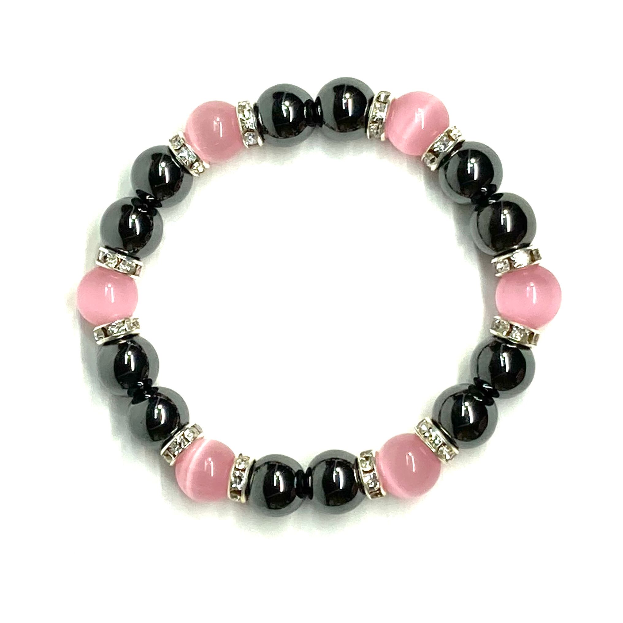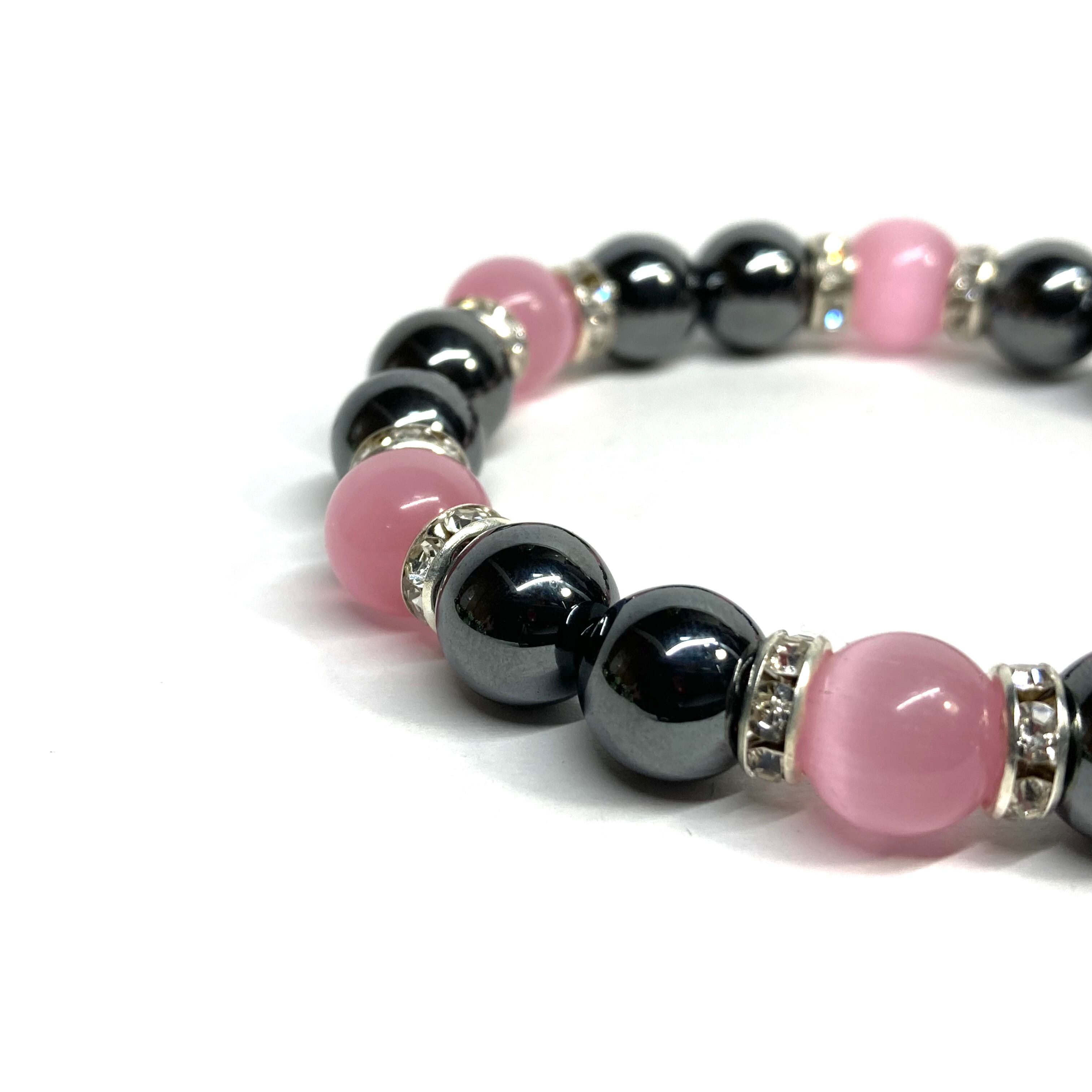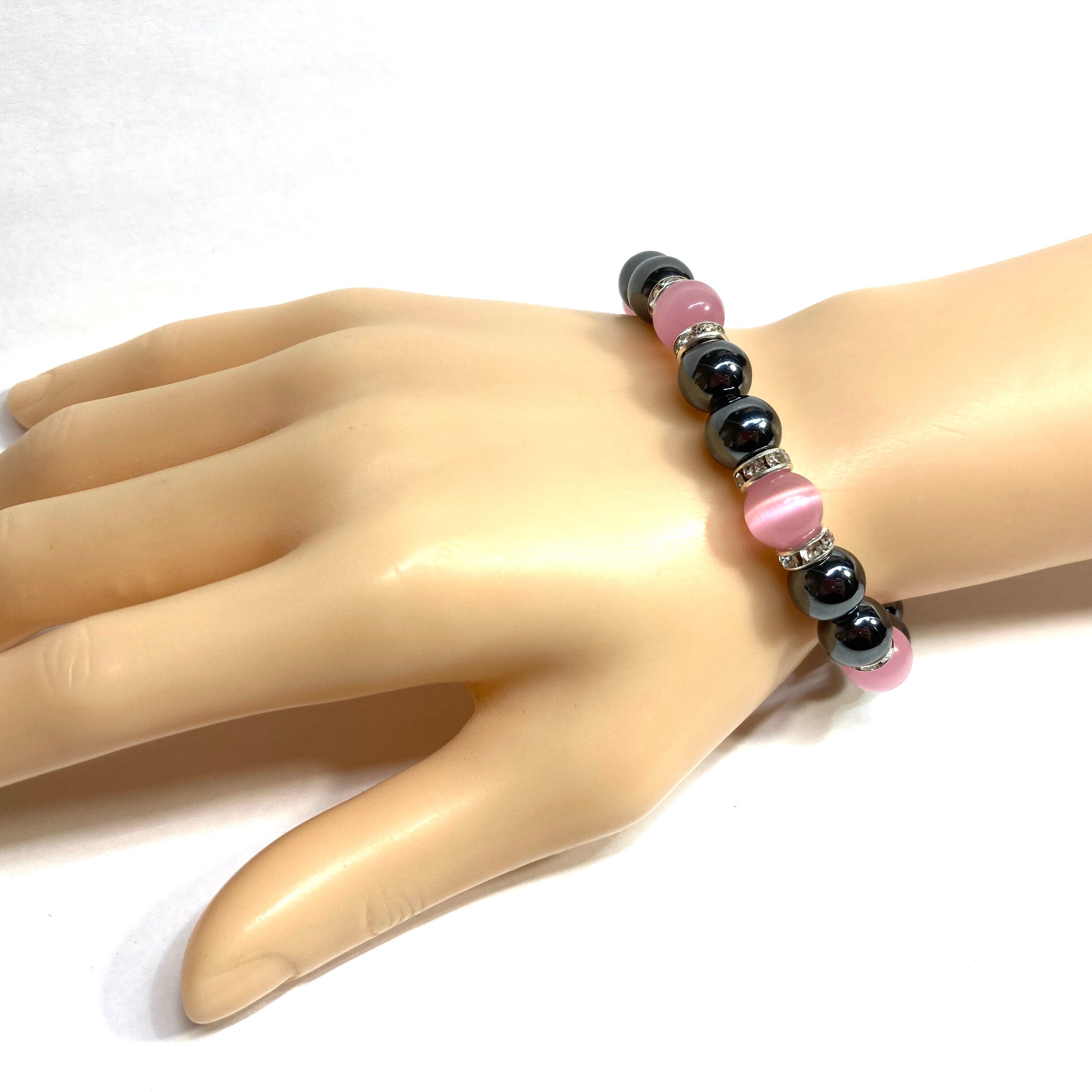 キャッツアイ(ピンク) ヘマタイト パワーストーン ブレスレット (シルバー) メンズ・レディース 男性・女性 数珠ブレス 開運