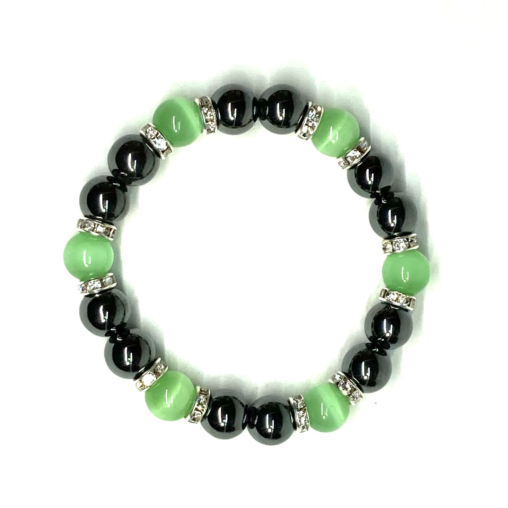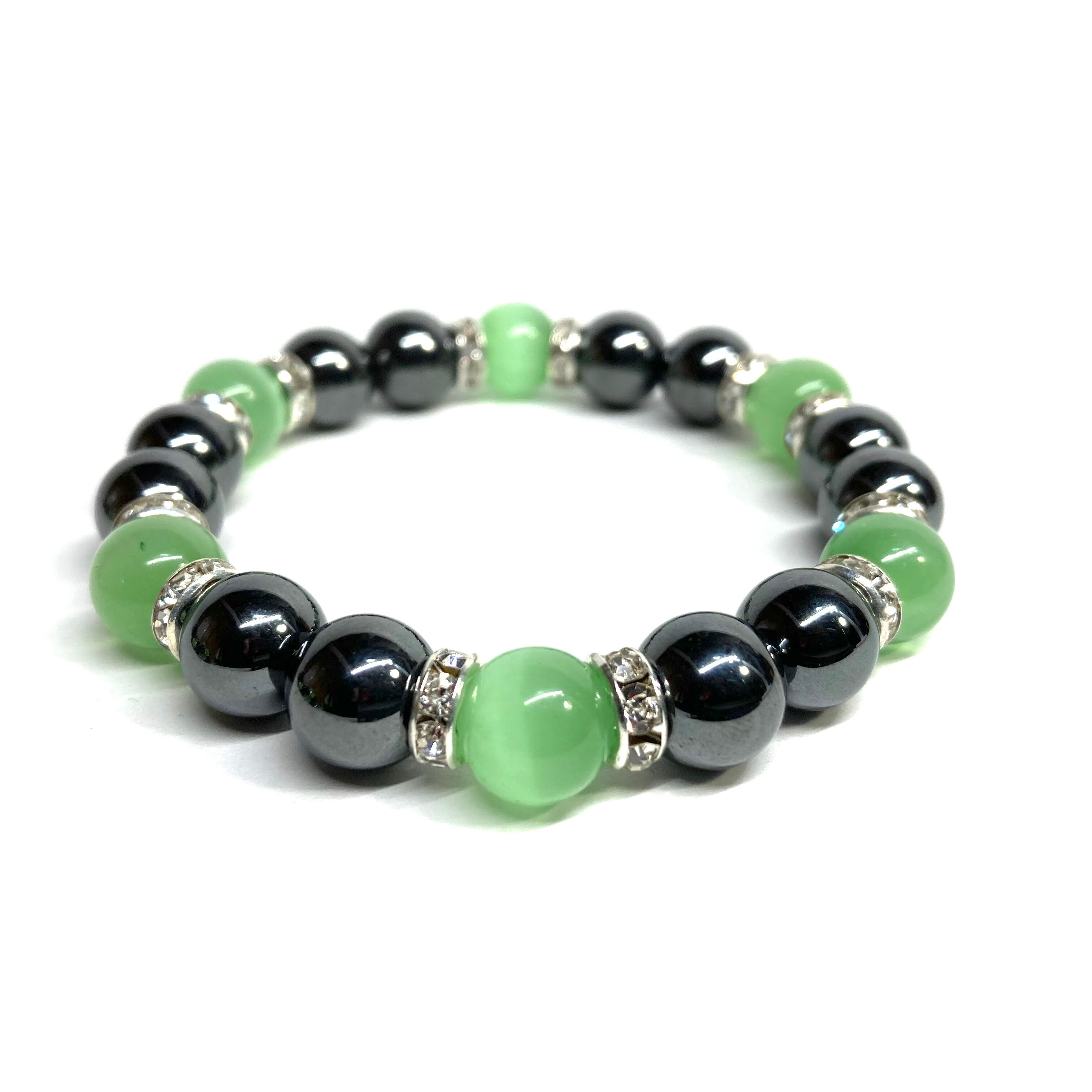 キャッツアイ(ライトグリーン) ヘマタイト パワーストーン ブレスレット (シルバー) メンズ・レディース 男性・女性 数珠ブレス 開運