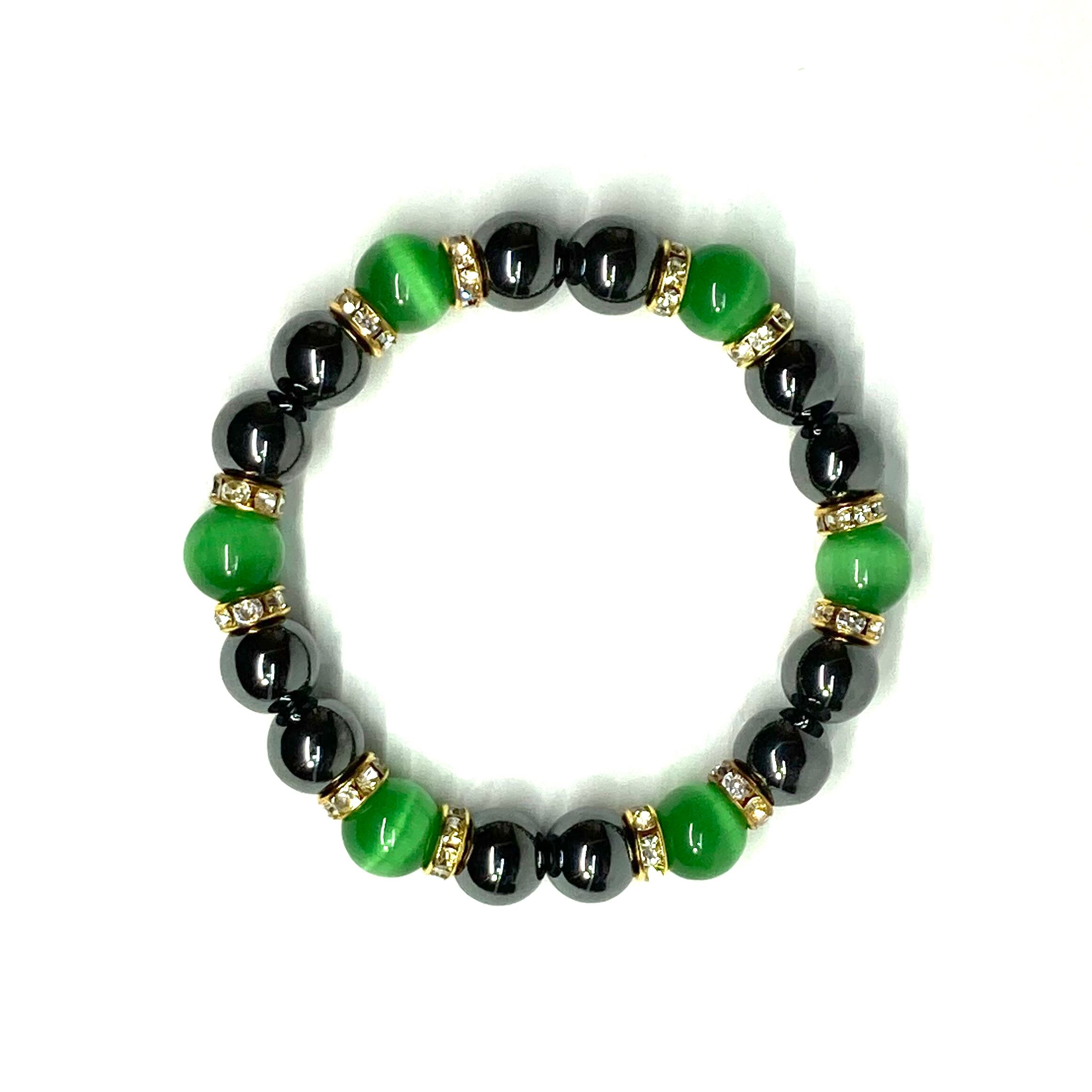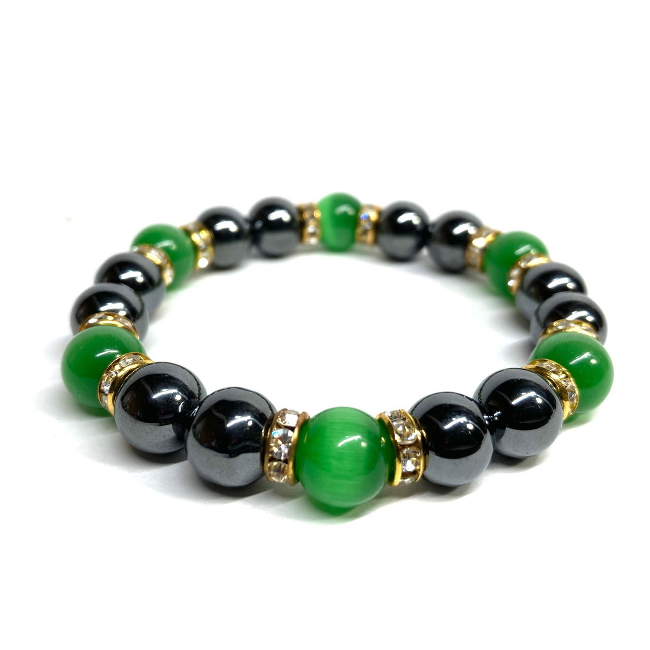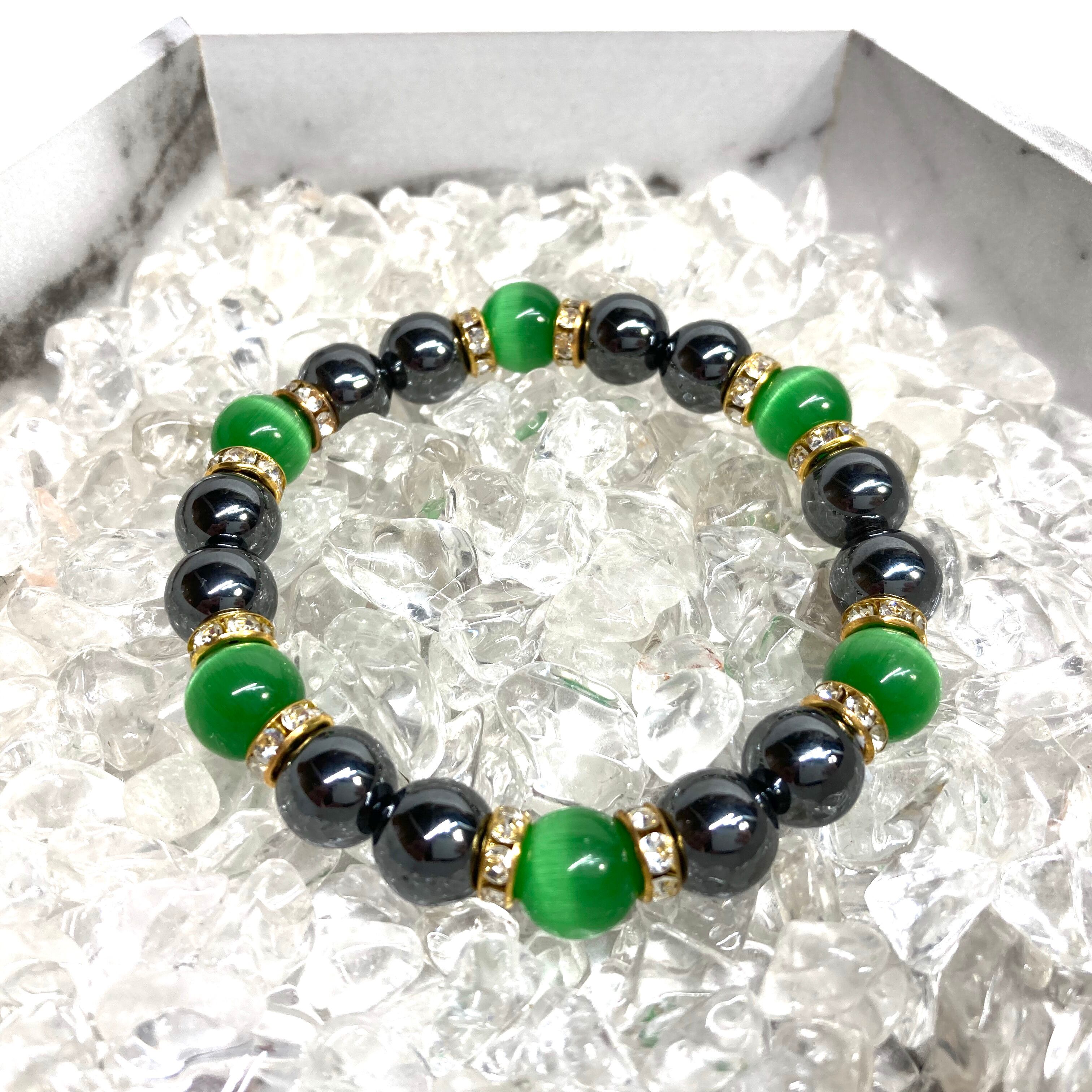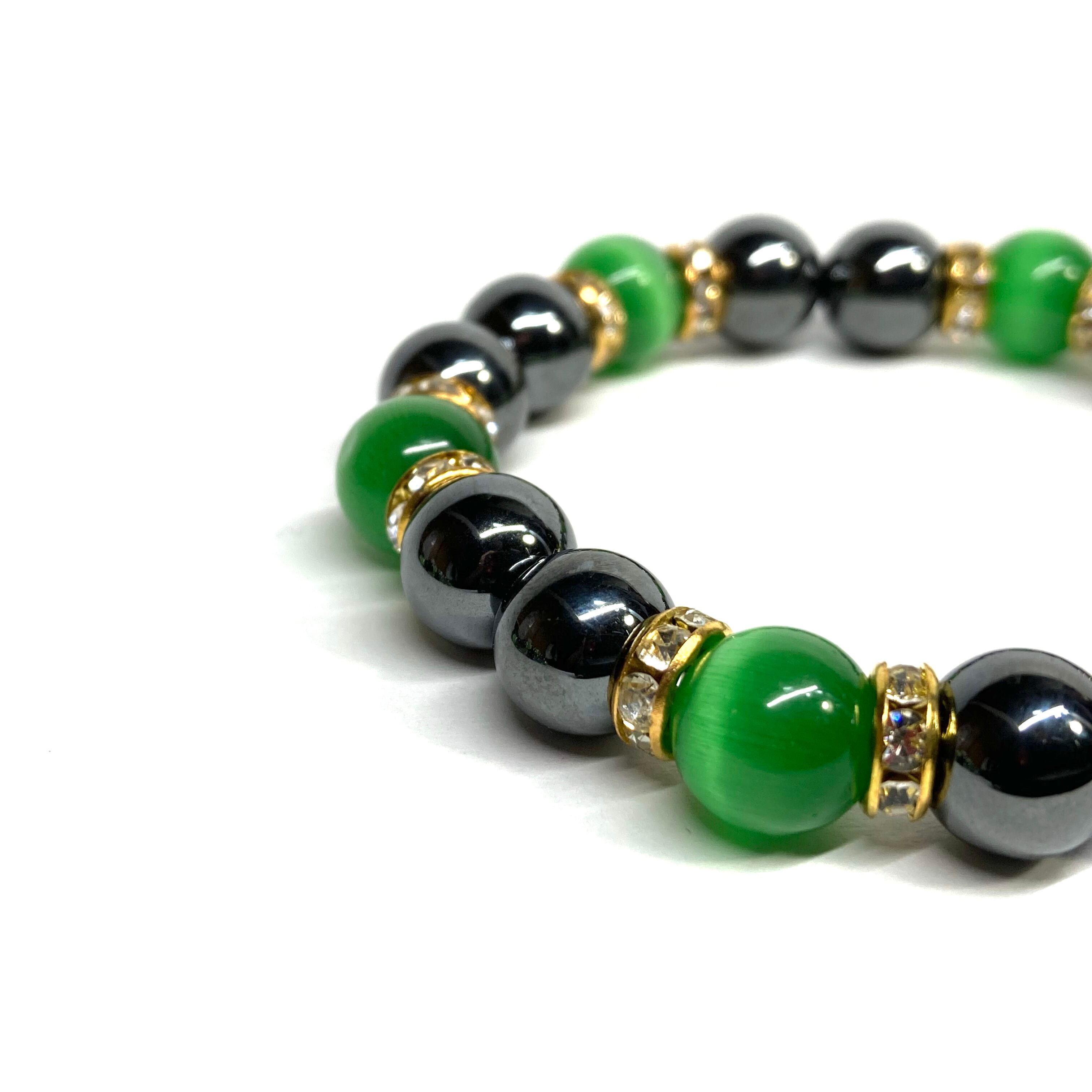 キャッツアイ(グリーン) ヘマタイト パワーストーン ブレスレット (ゴールド) メンズ・レディース 男性・女性 数珠ブレス 開運
