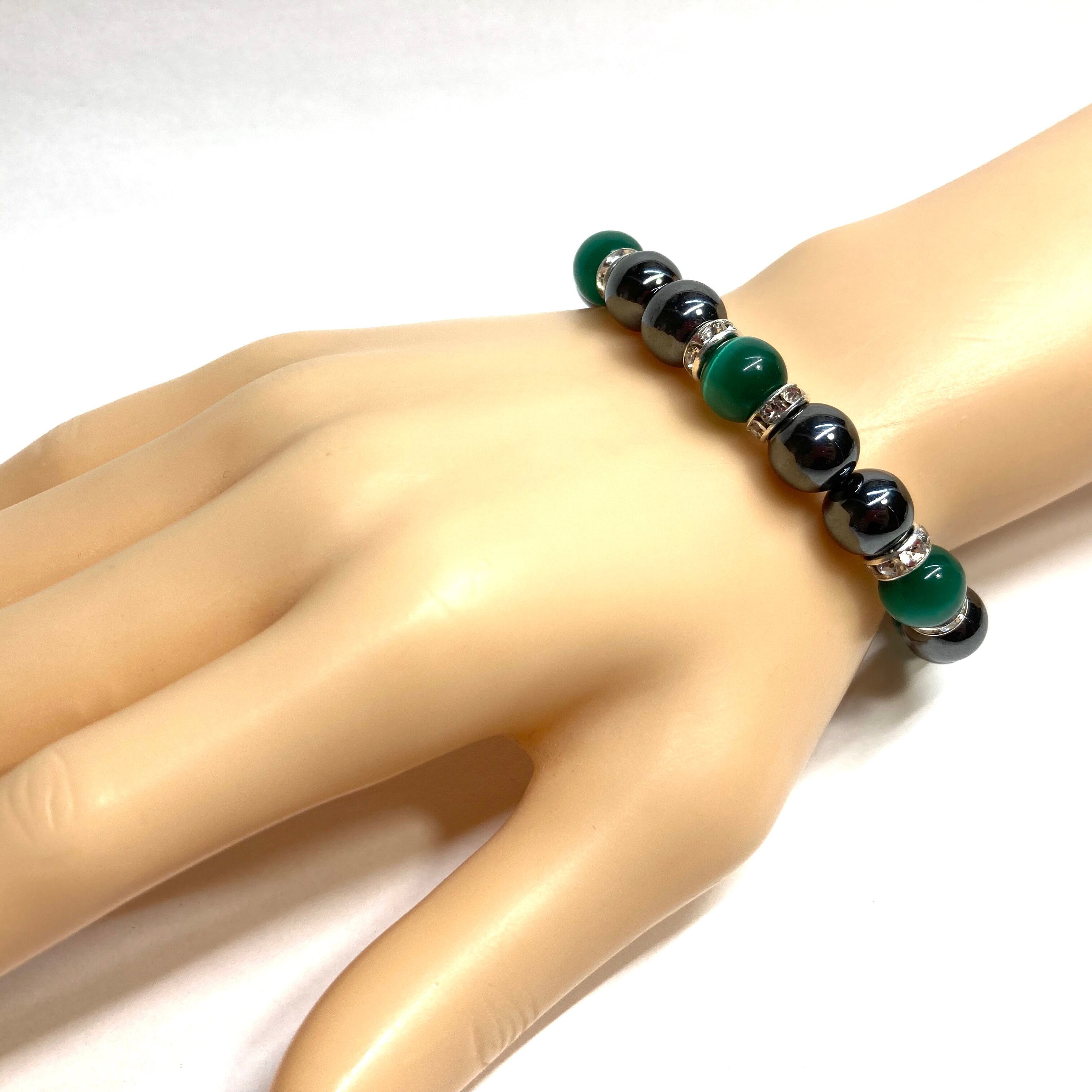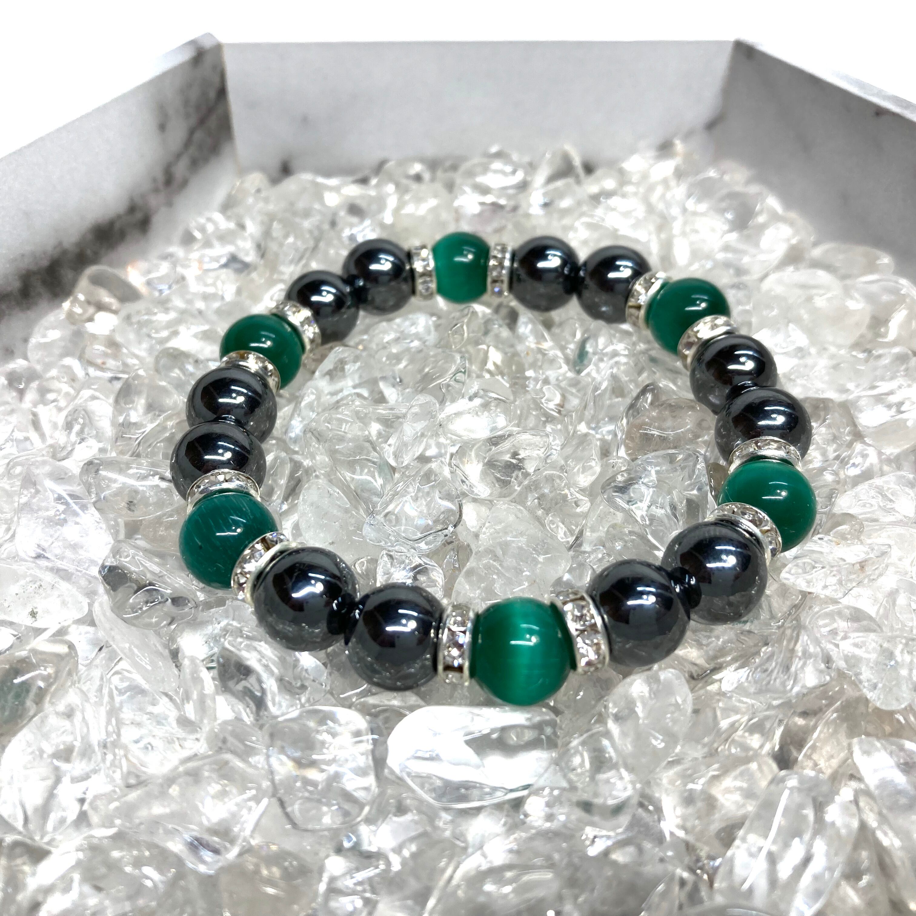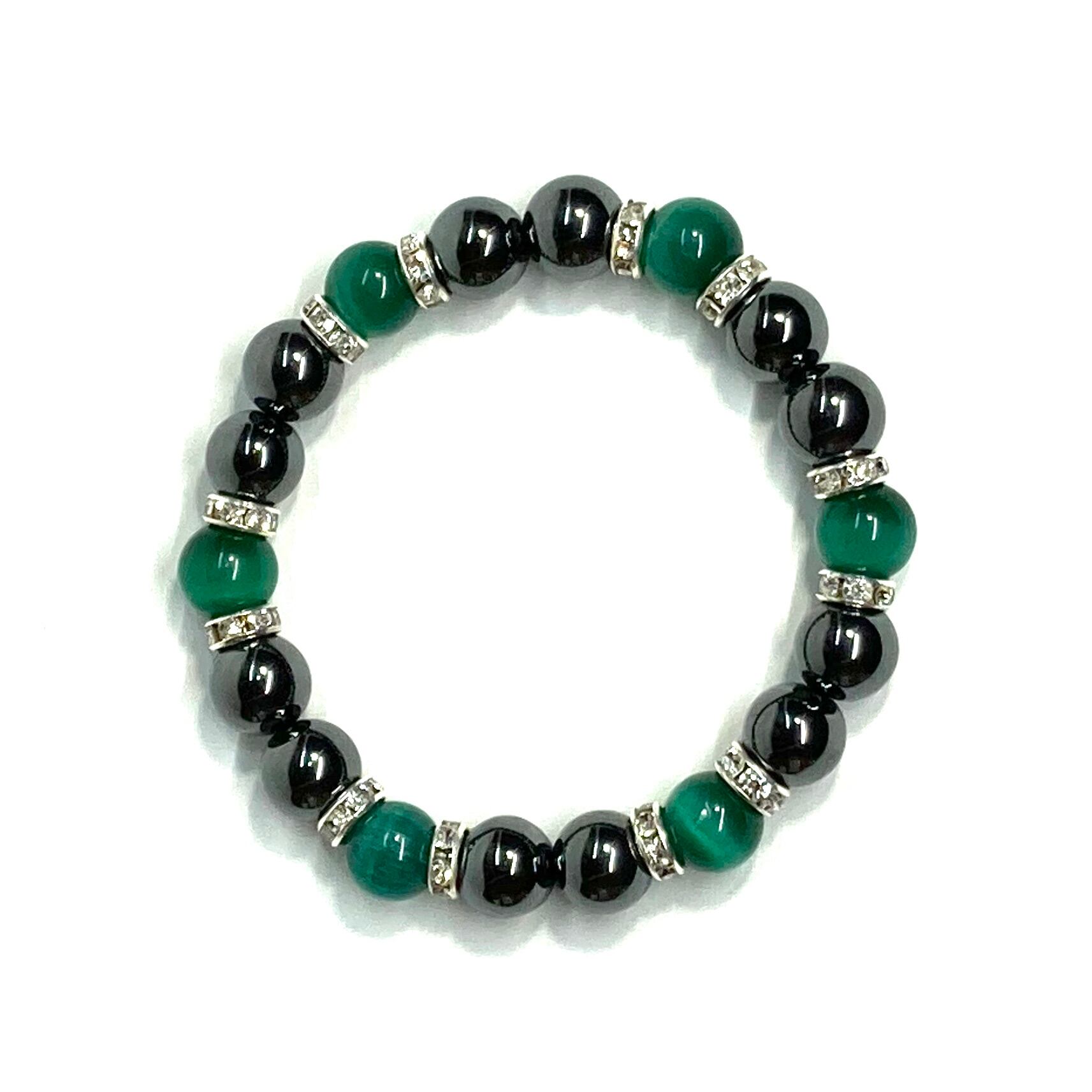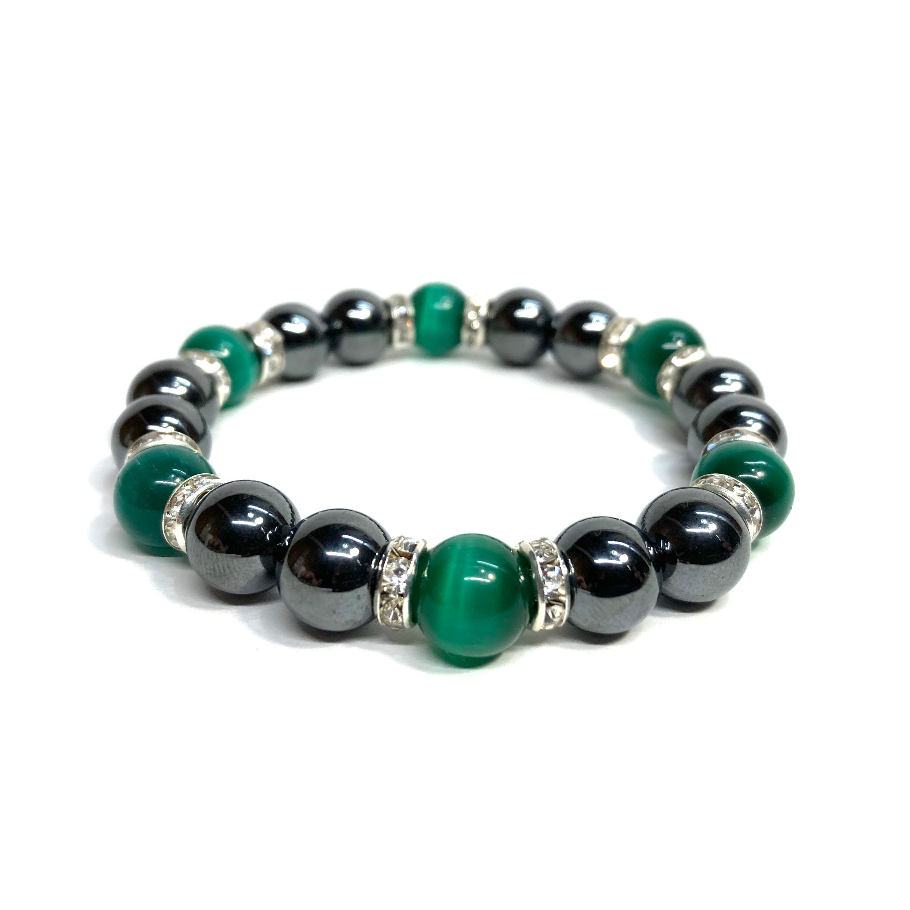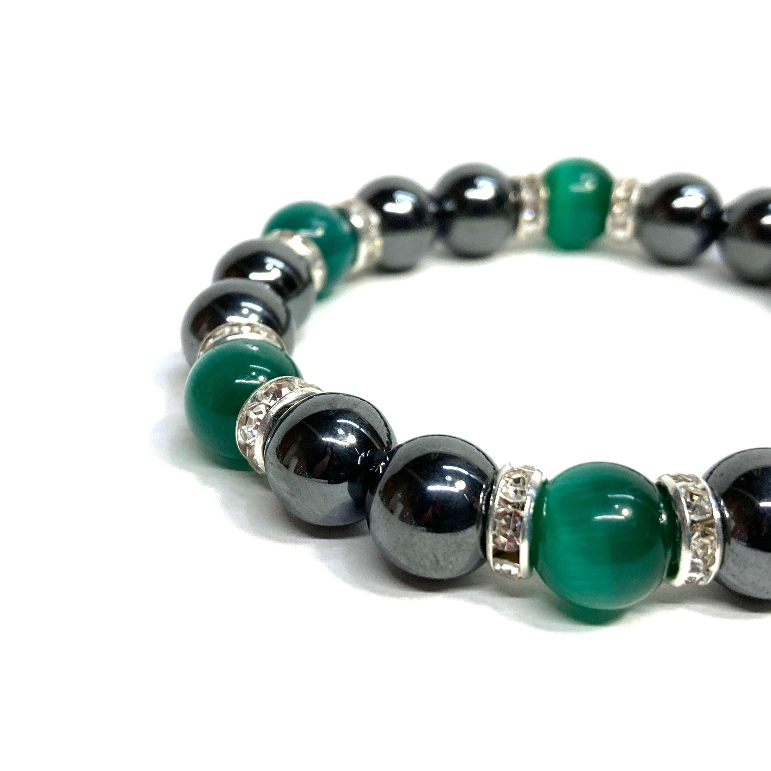 キャッツアイ(ダークグリーン) ヘマタイト パワーストーン ブレスレット (シルバー) メンズ・レディース 男性・女性 数珠ブレス 開運