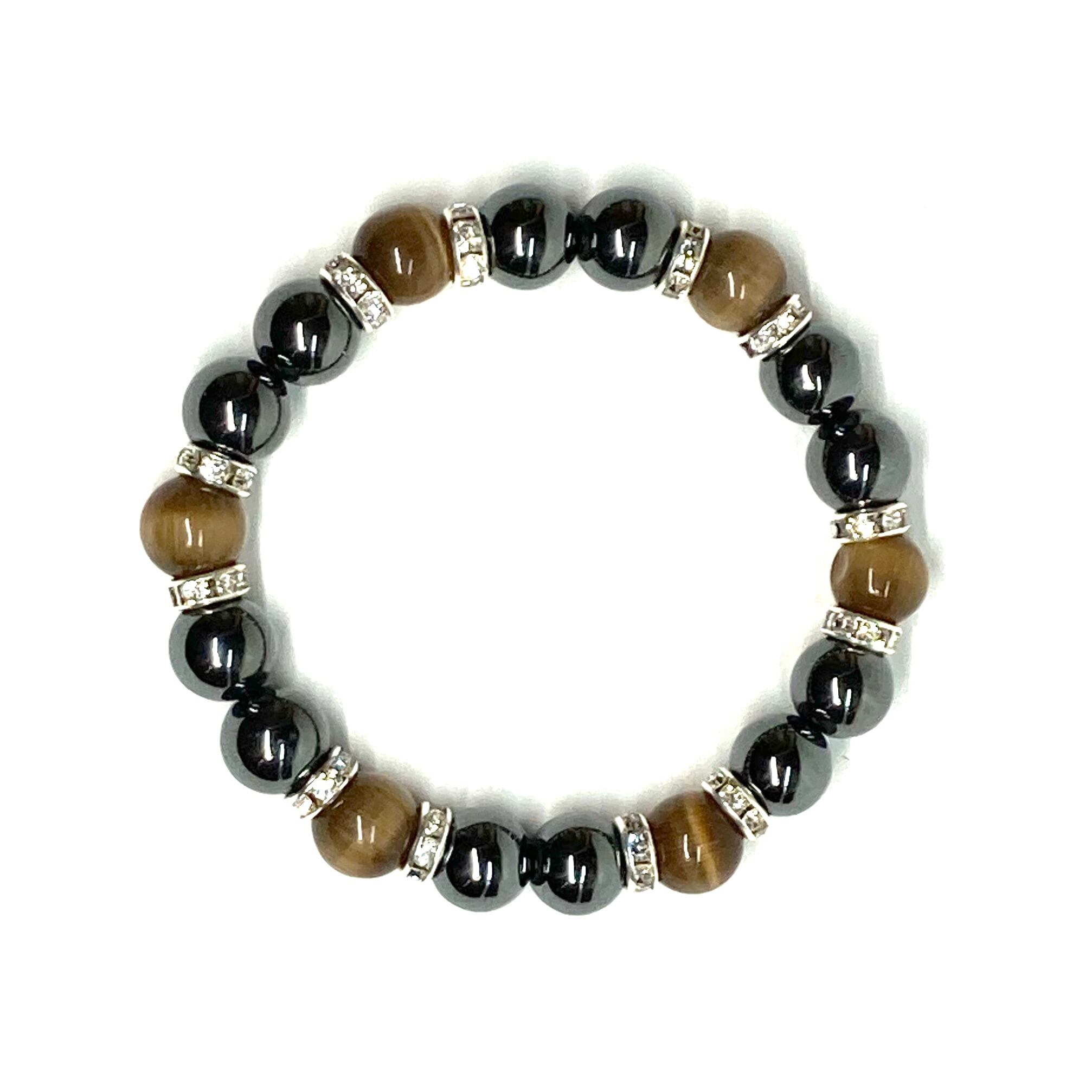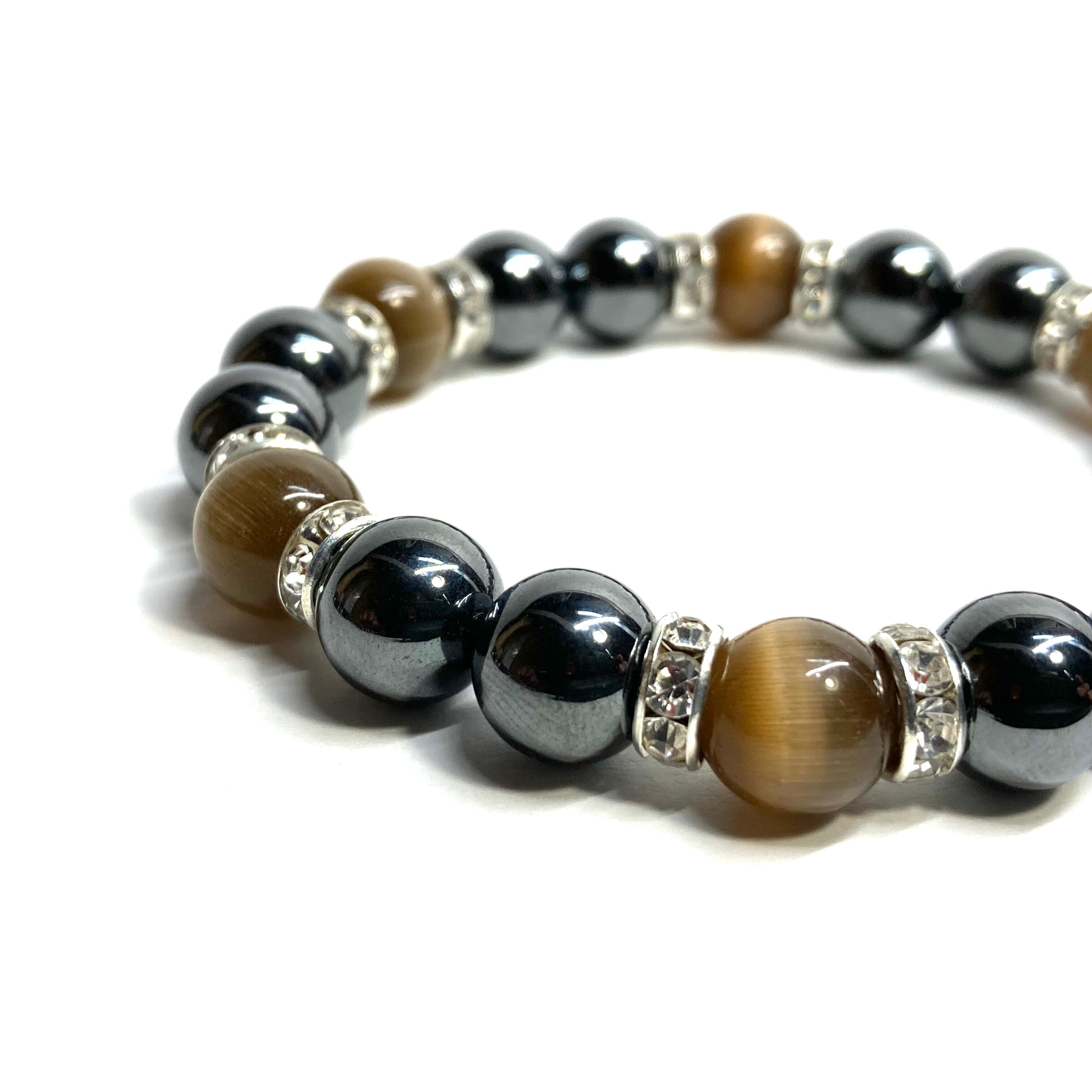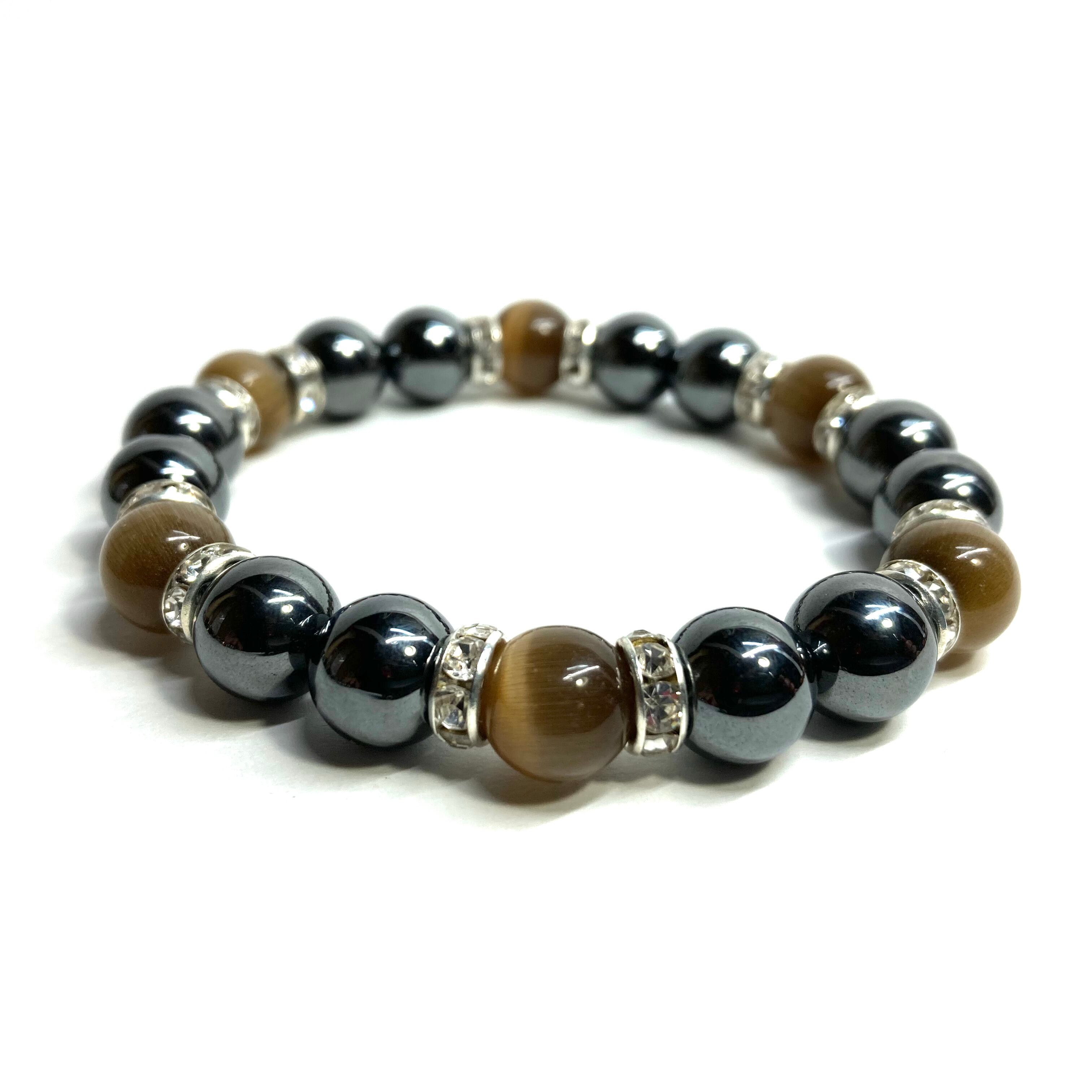 キャッツアイ(ブラウン) ヘマタイト パワーストーン ブレスレット (シルバー) メンズ・レディース 男性・女性 数珠ブレス 開運