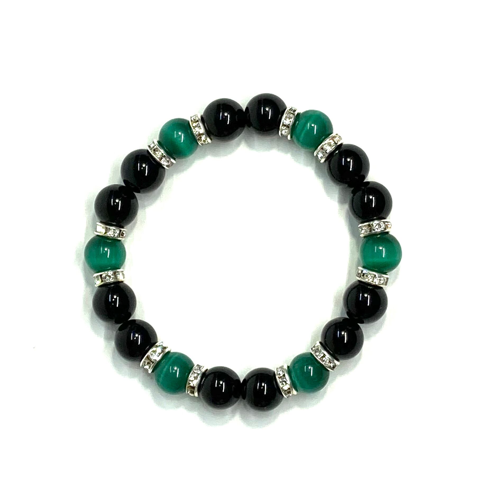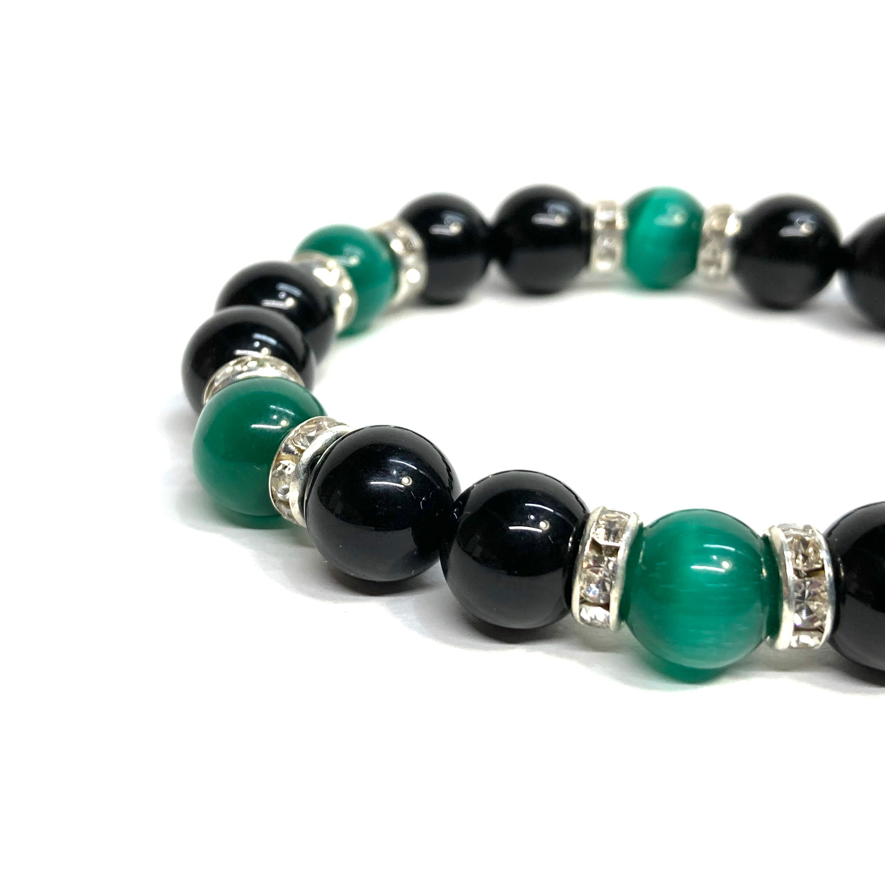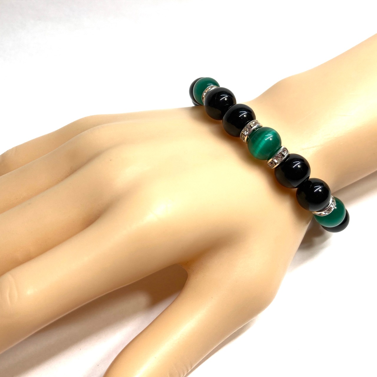 キャッツアイ(ダークグリーン) オニキス パワーストーン ブレスレット (シルバー) メンズ・レディース 男性・女性 数珠ブレス 開運