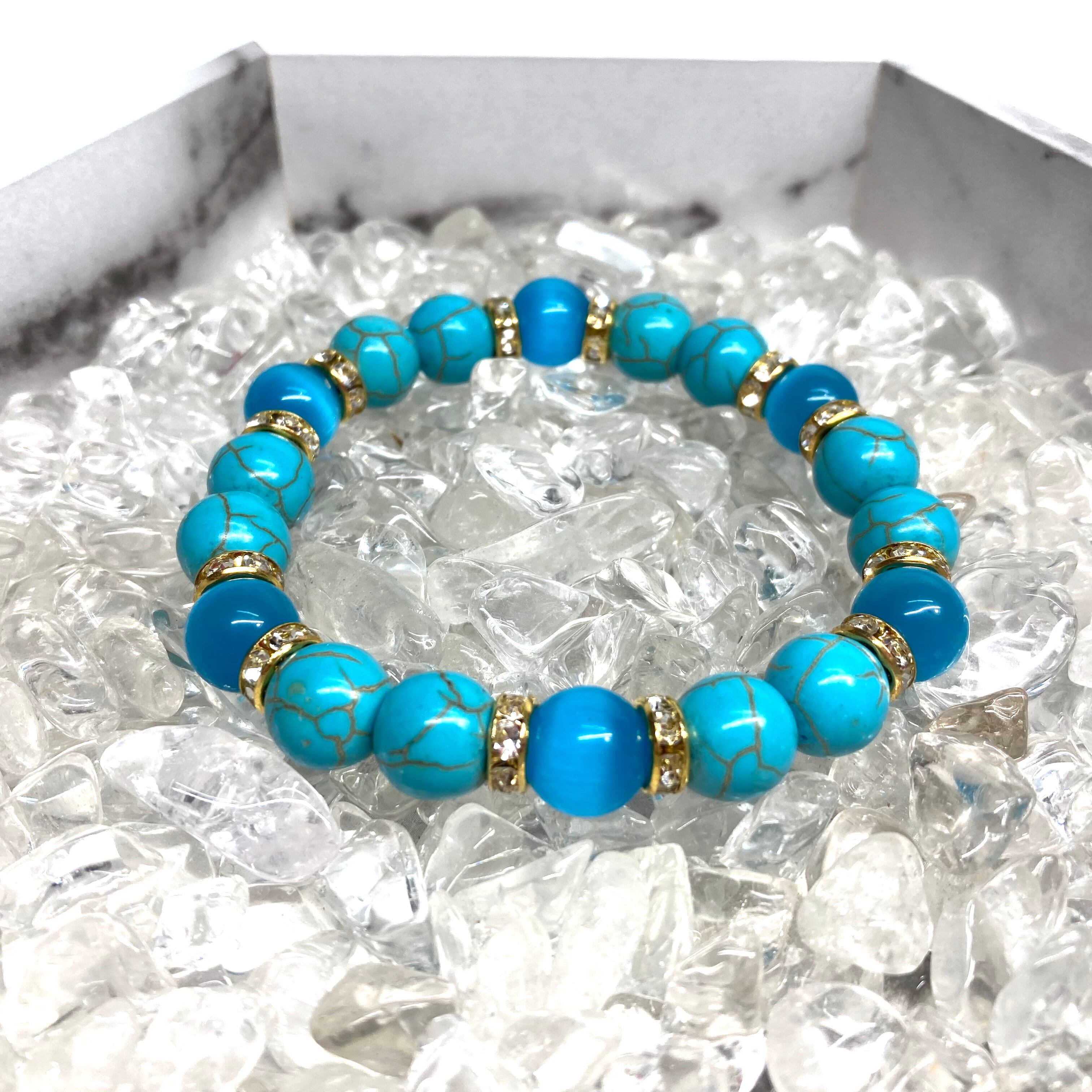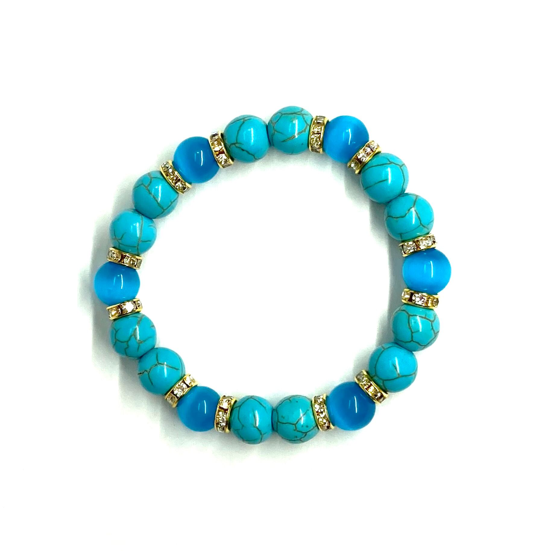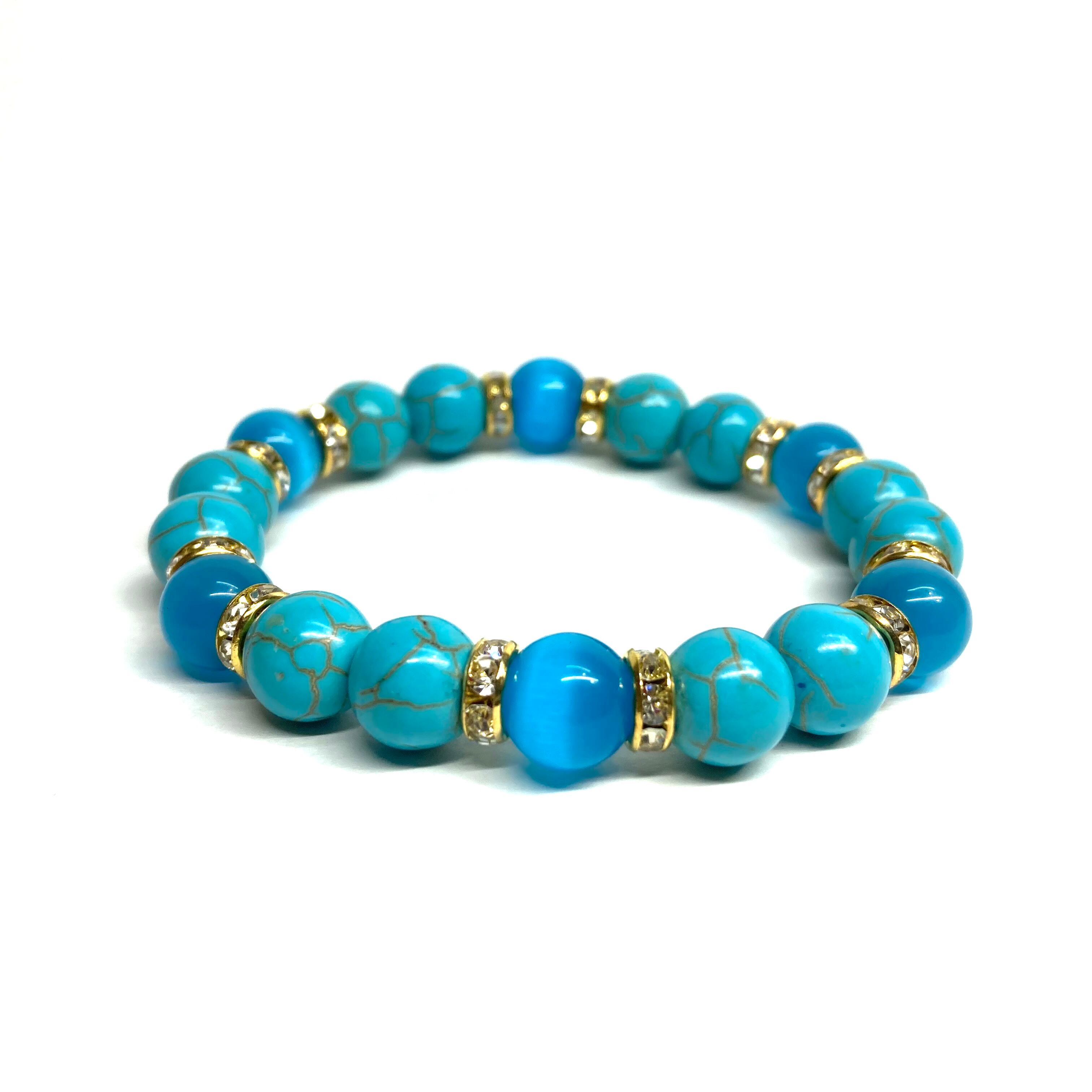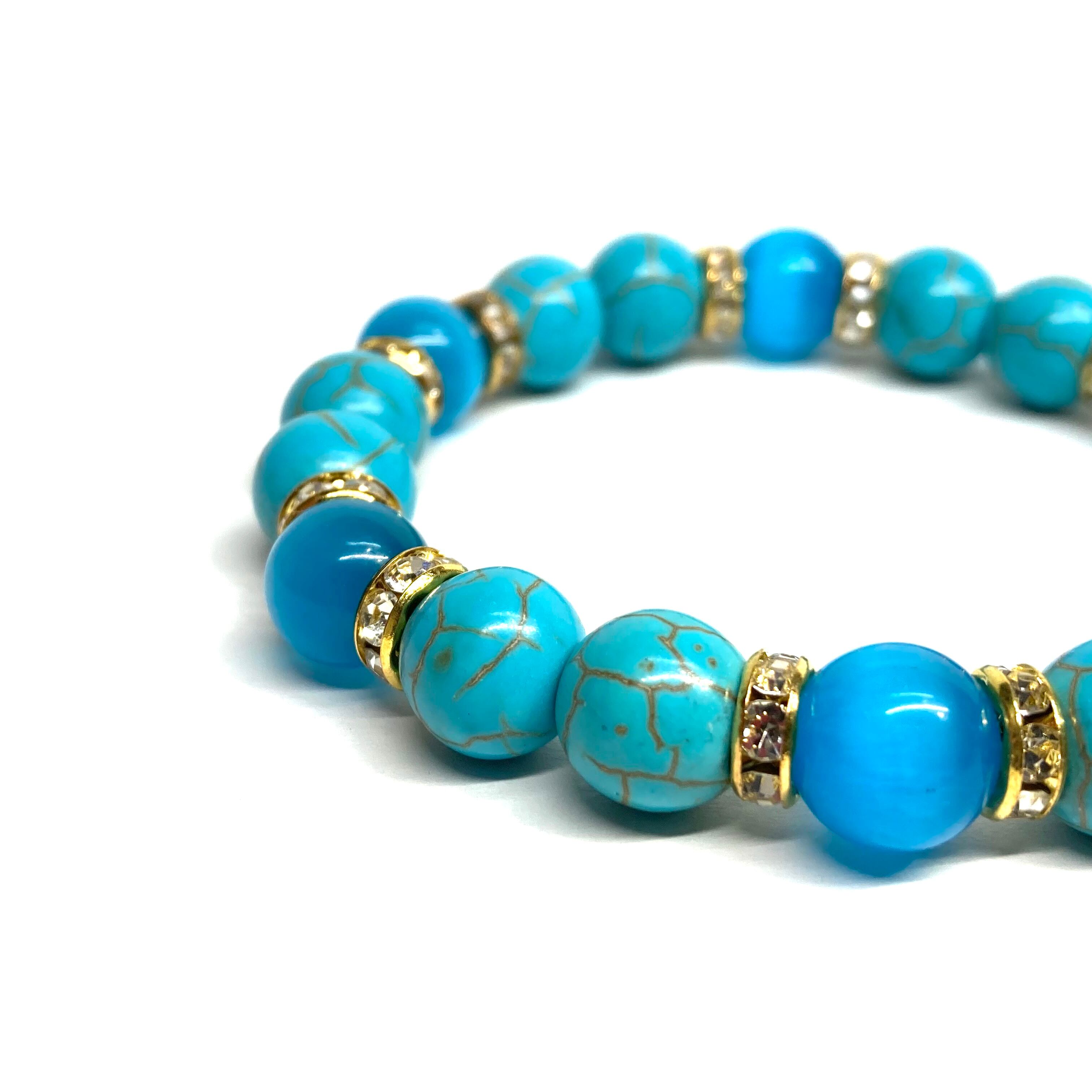 キャッツアイ(ライトブルー) ターコイズ パワーストーン ブレスレット (ゴールド) メンズ・レディース 男性・女性 数珠ブレス 開運