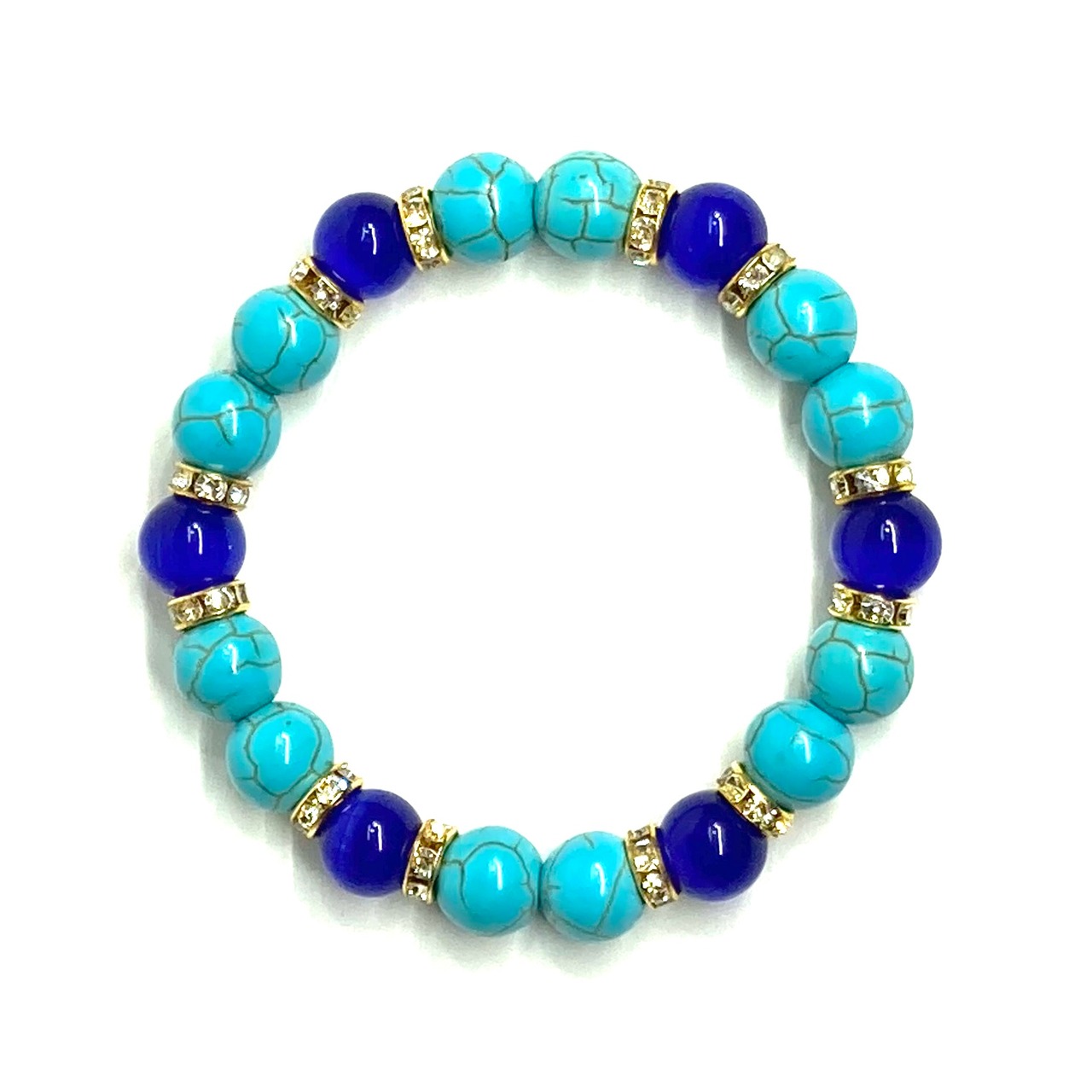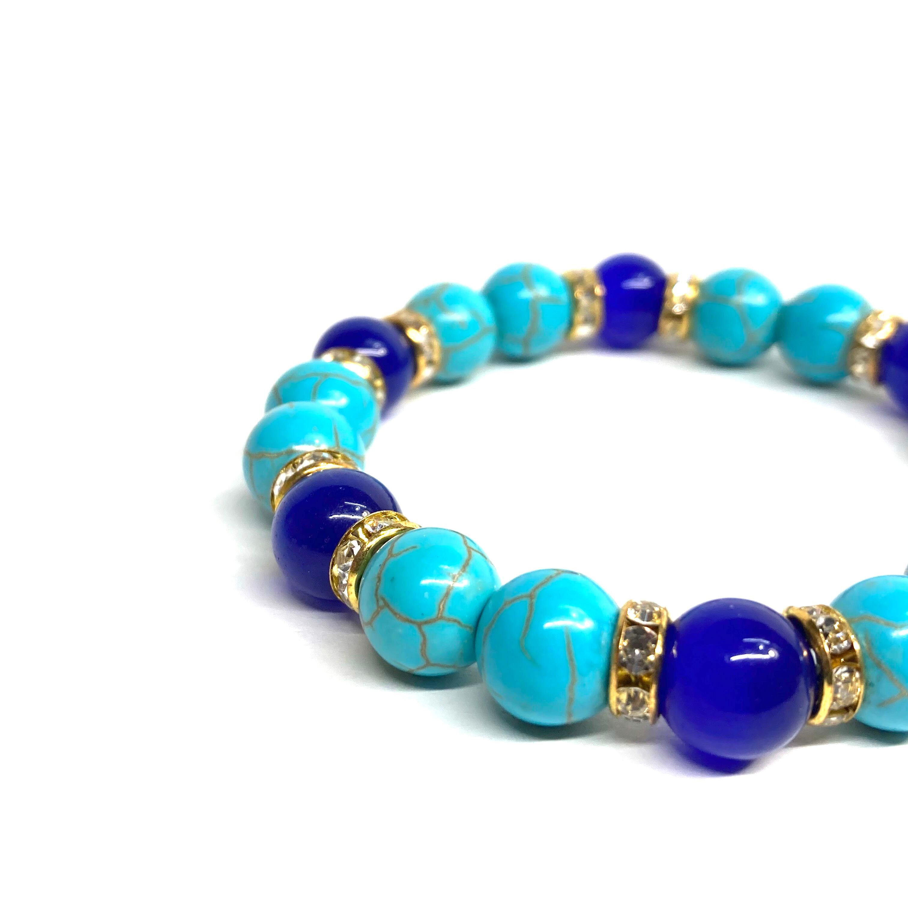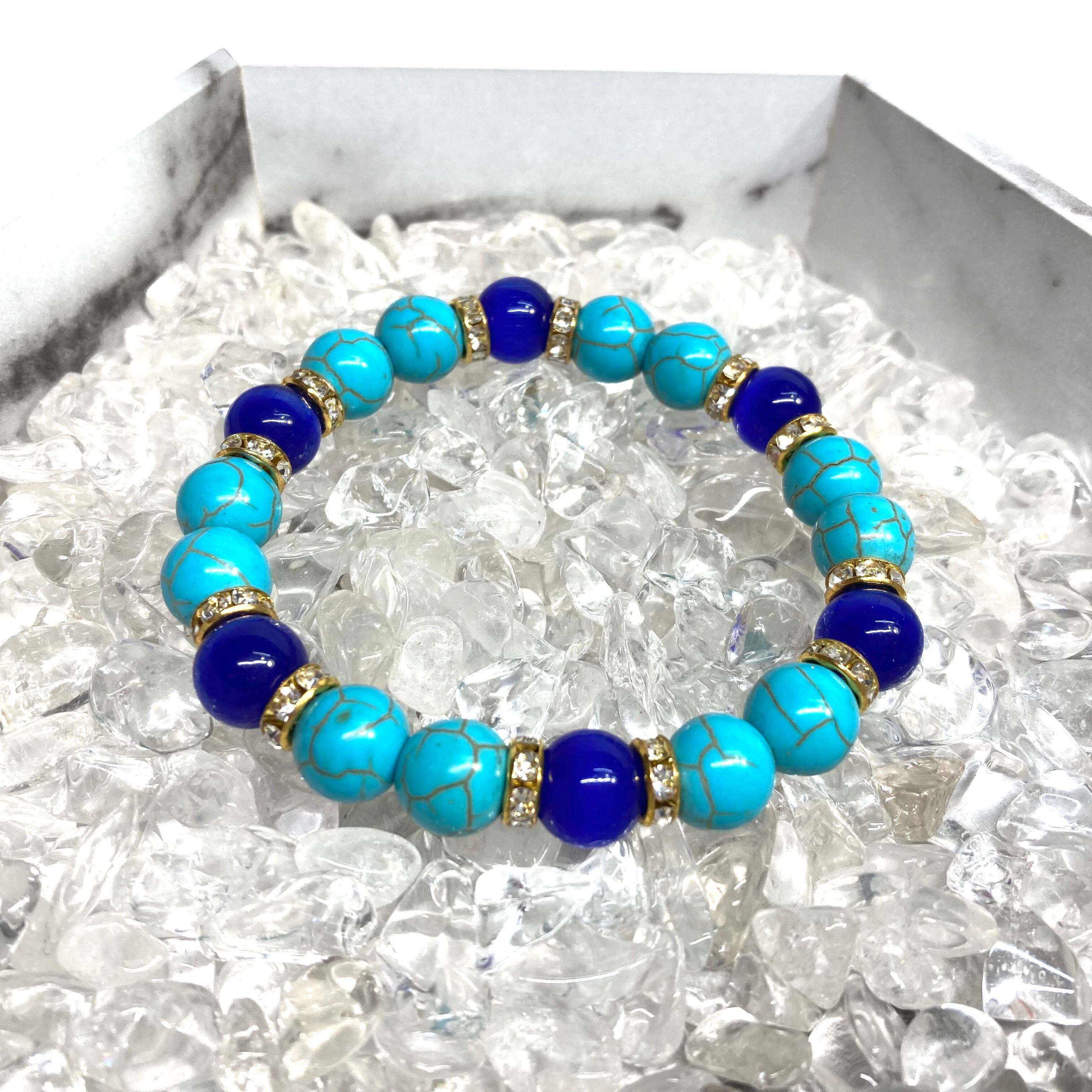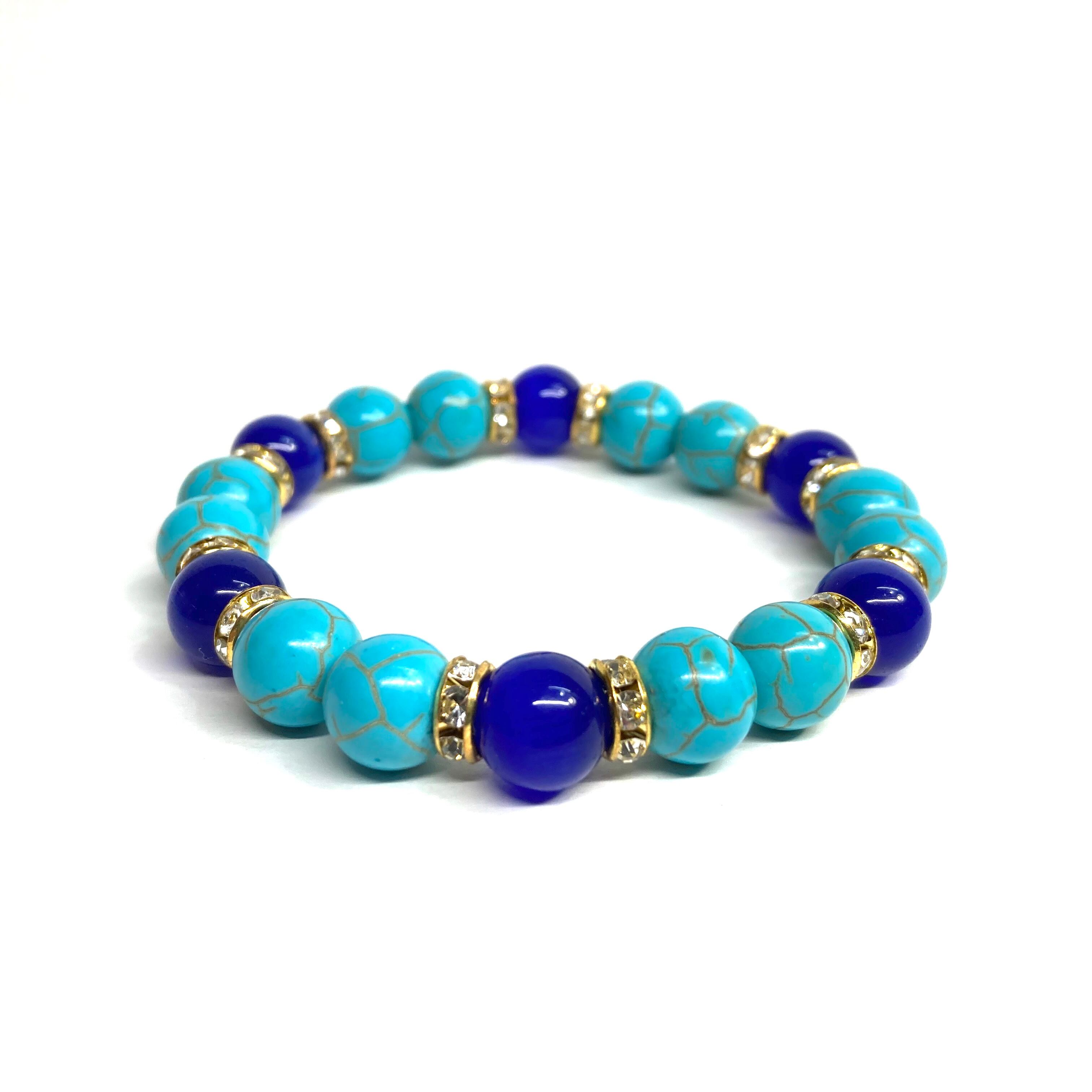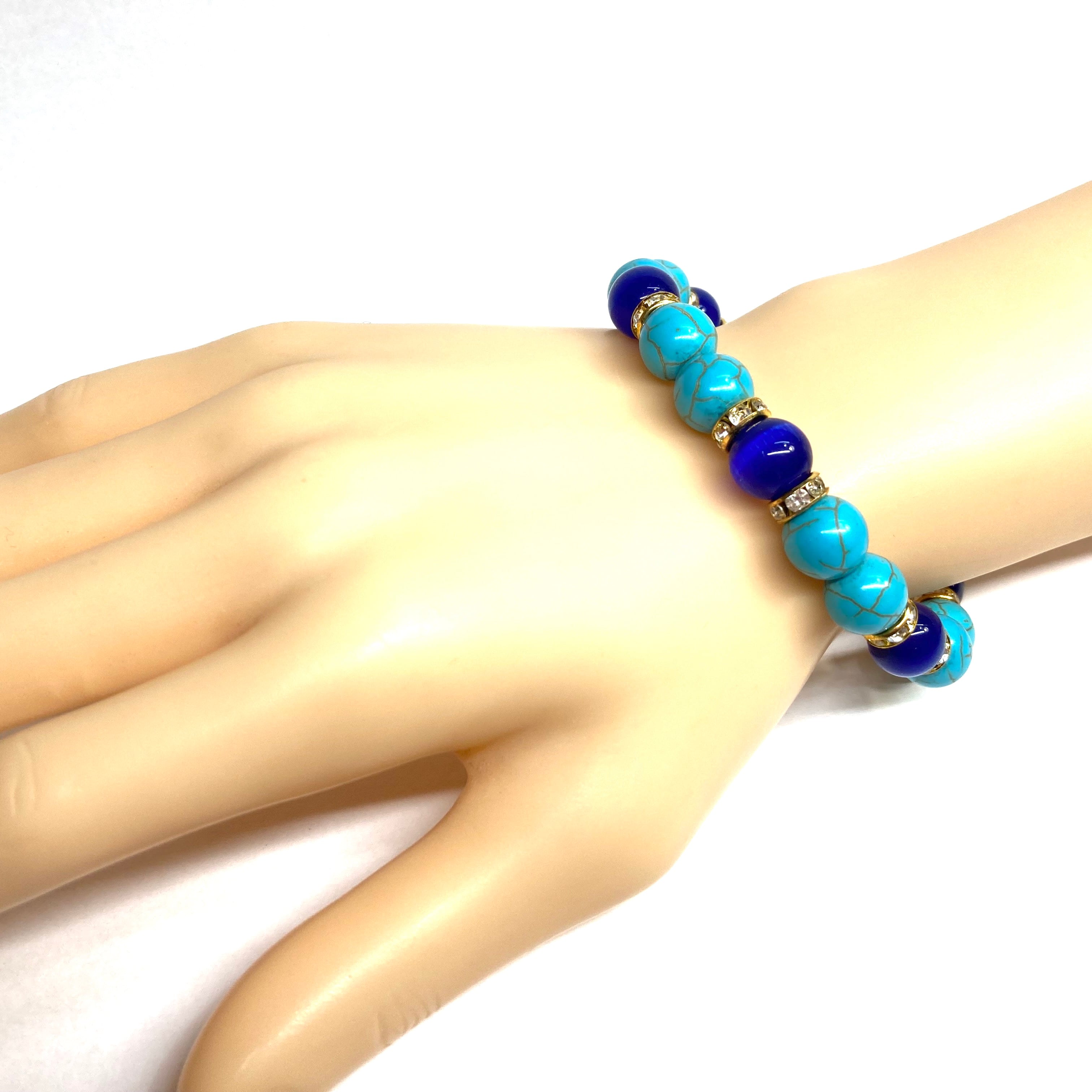 キャッツアイ(ダークブルー) ターコイズ パワーストーン ブレスレット (ゴールド) メンズ・レディース 男性・女性 数珠ブレス 開運