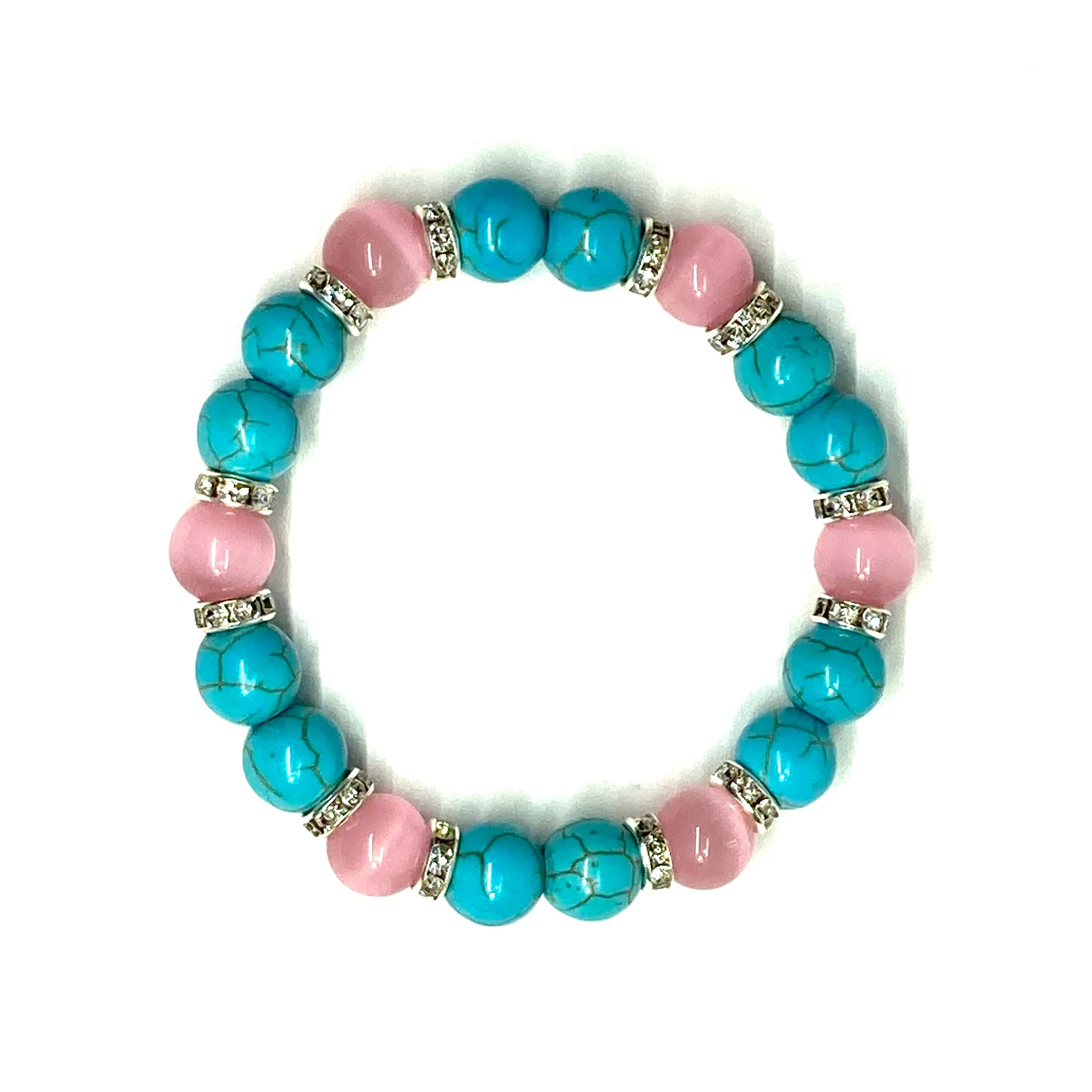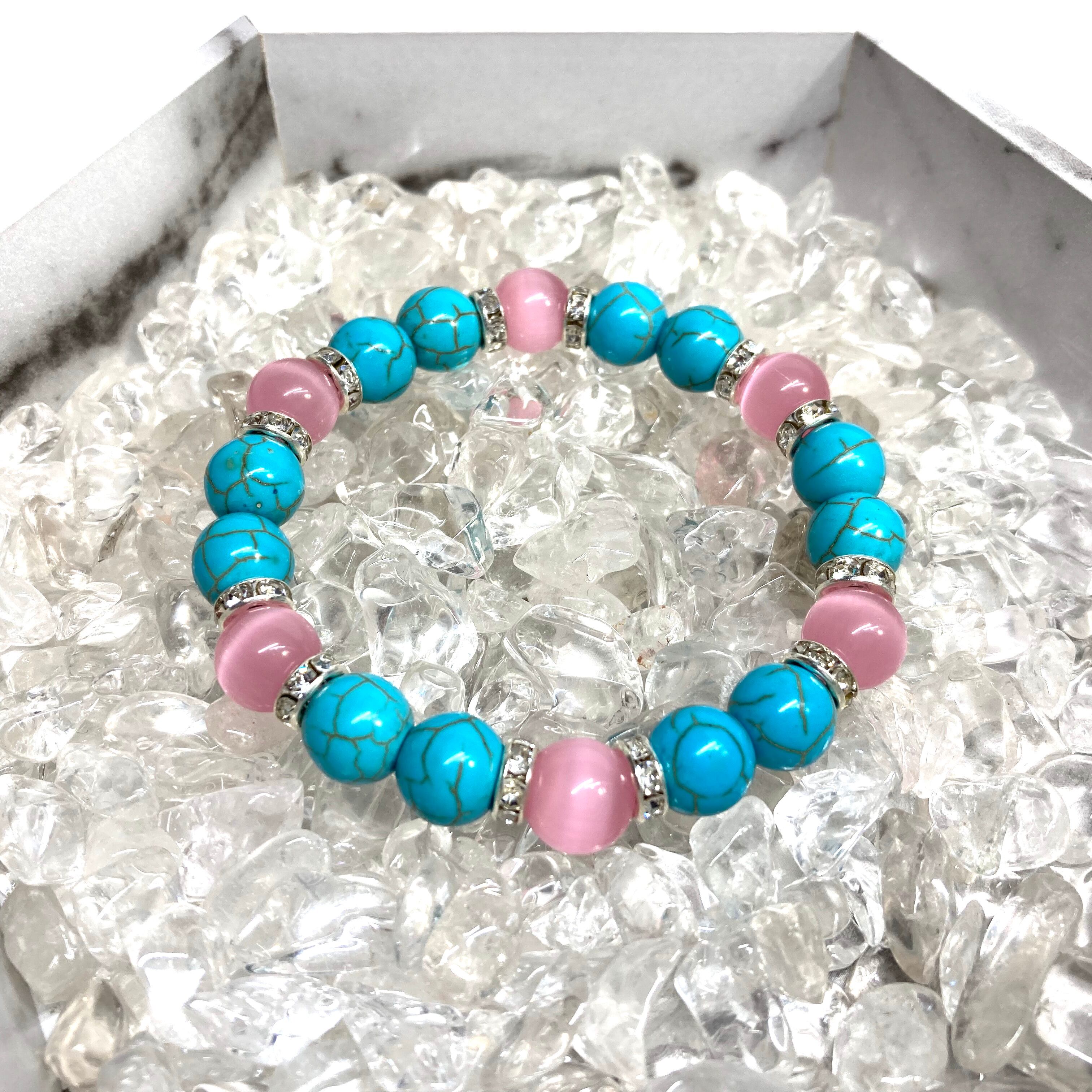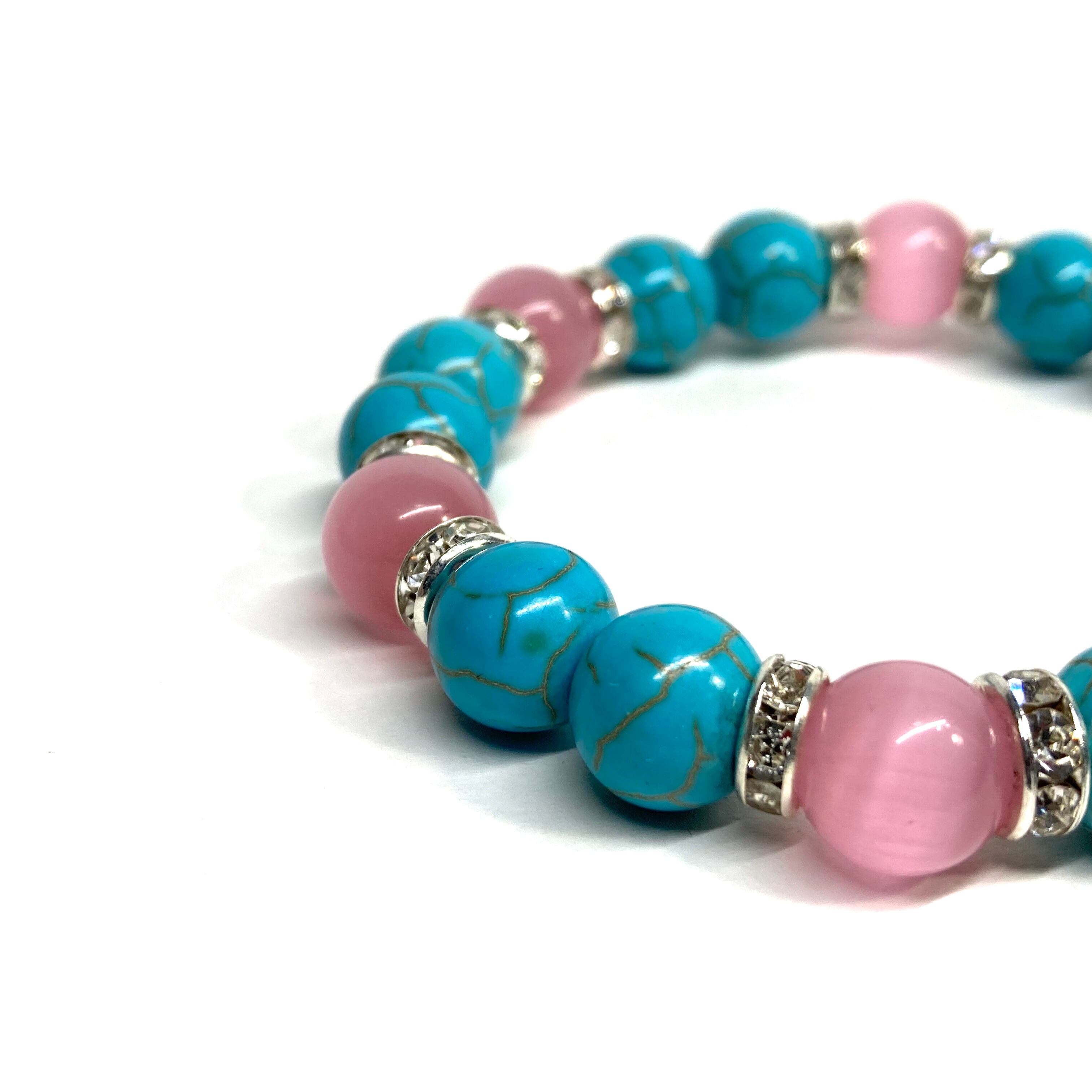 キャッツアイ(ピンク) ターコイズ パワーストーン ブレスレット (シルバー) メンズ・レディース 男性・女性 数珠ブレス 開運