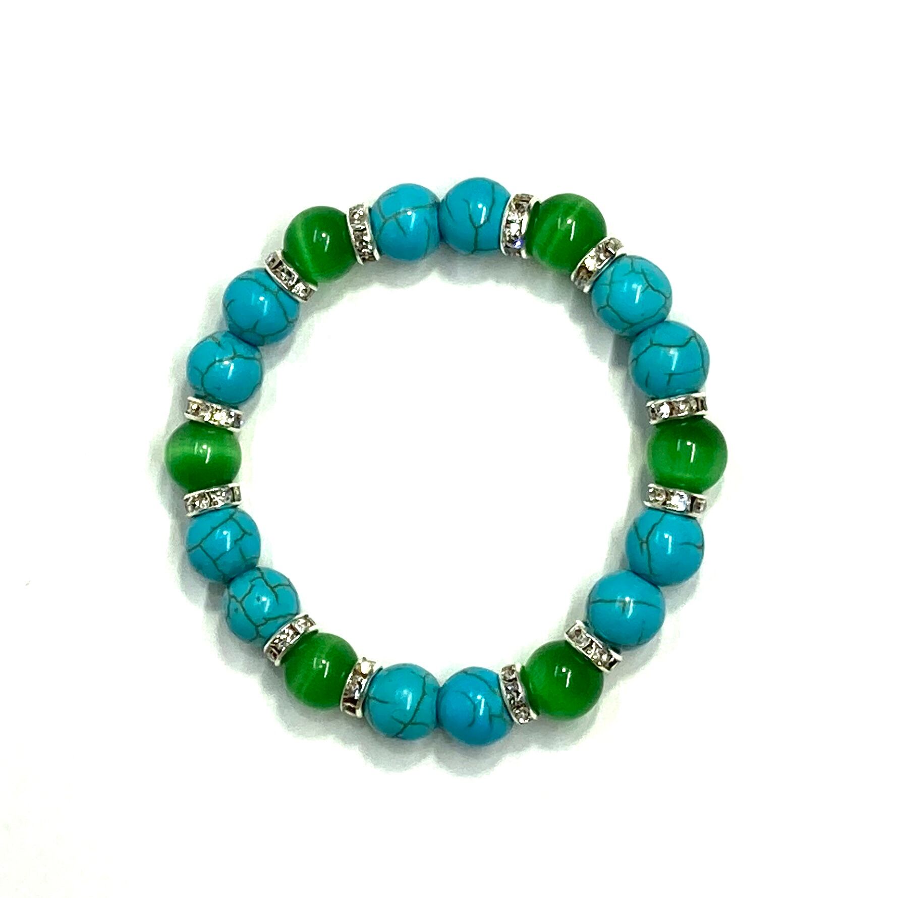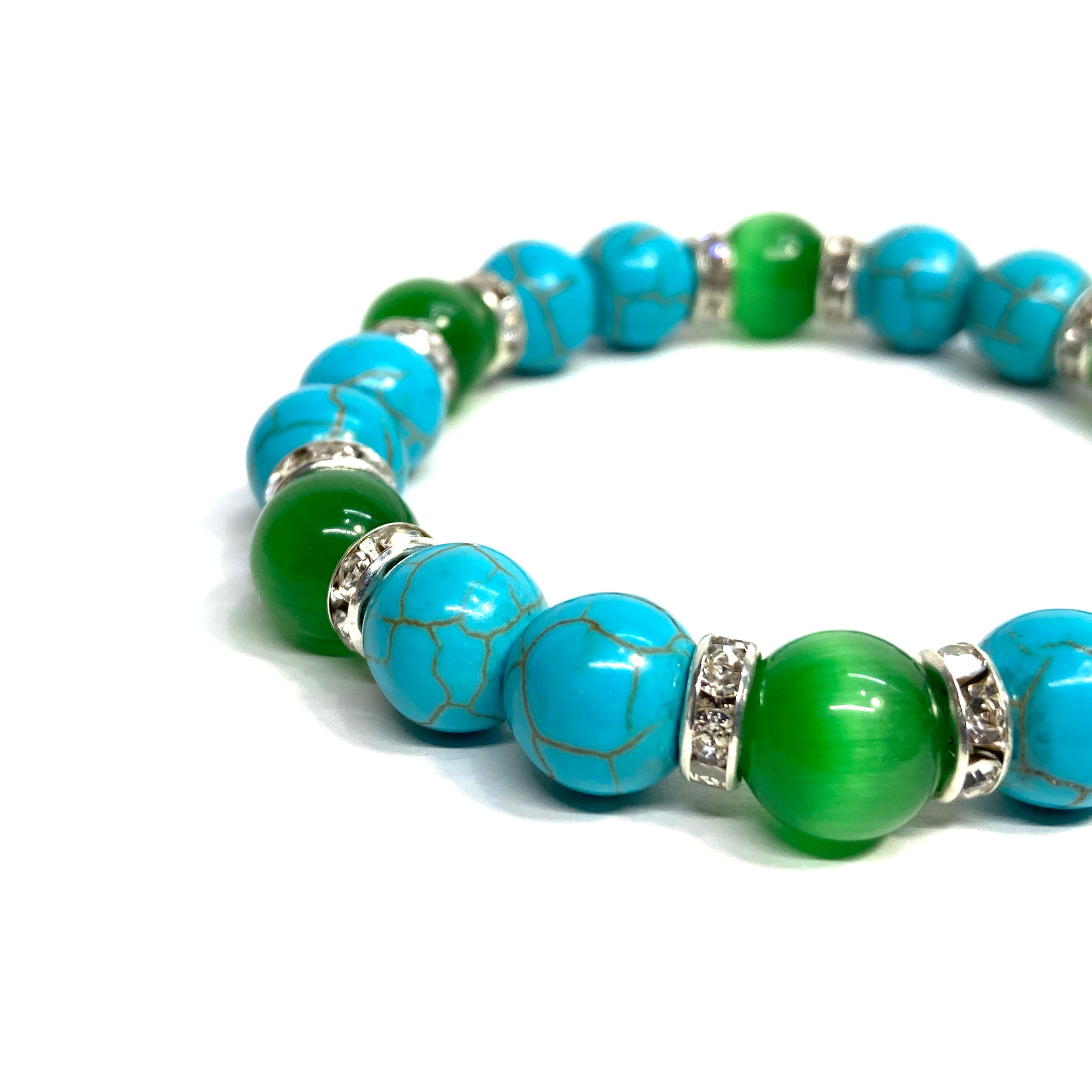 キャッツアイ(グリーン) ターコイズ パワーストーン ブレスレット (シルバー) メンズ・レディース 男性・女性 数珠ブレス 開運
