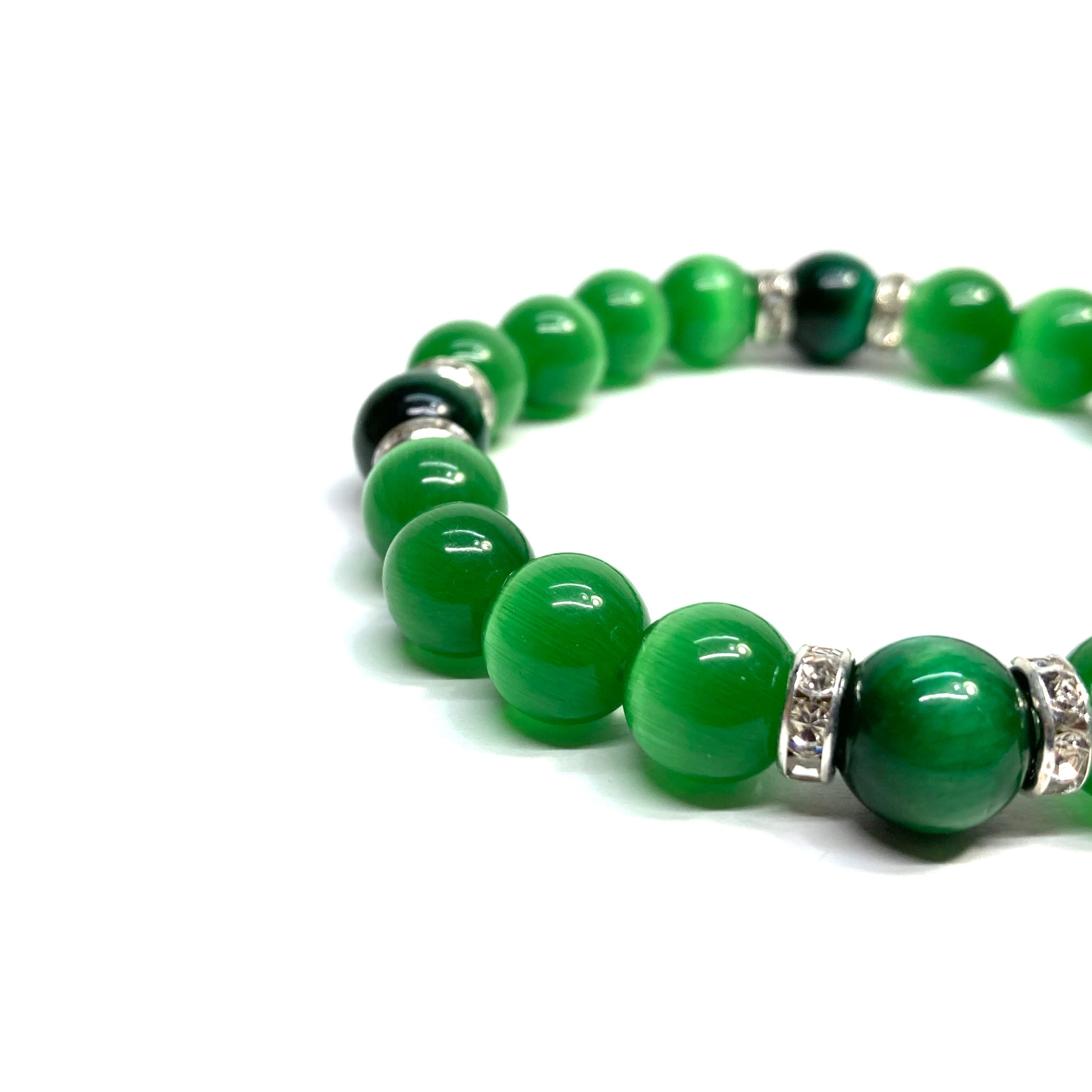 キャッツアイ(グリーン)×グリーンタイガーアイ パワーストーン ブレスレット (シルバー) メンズ・レディース 男性・女性 数珠ブレス 開運