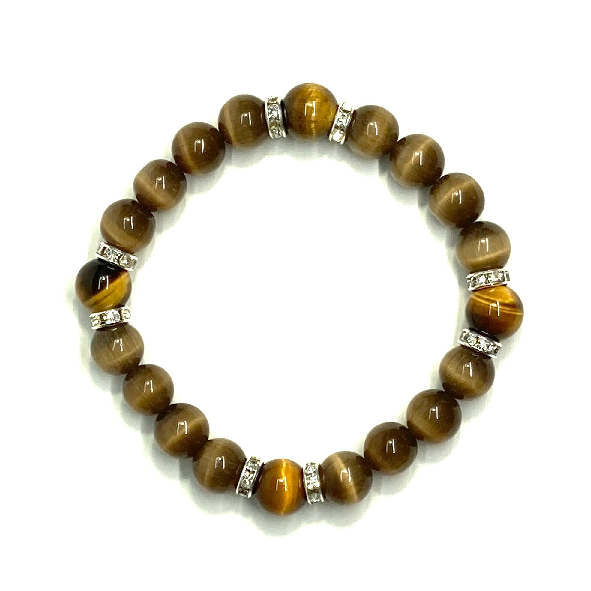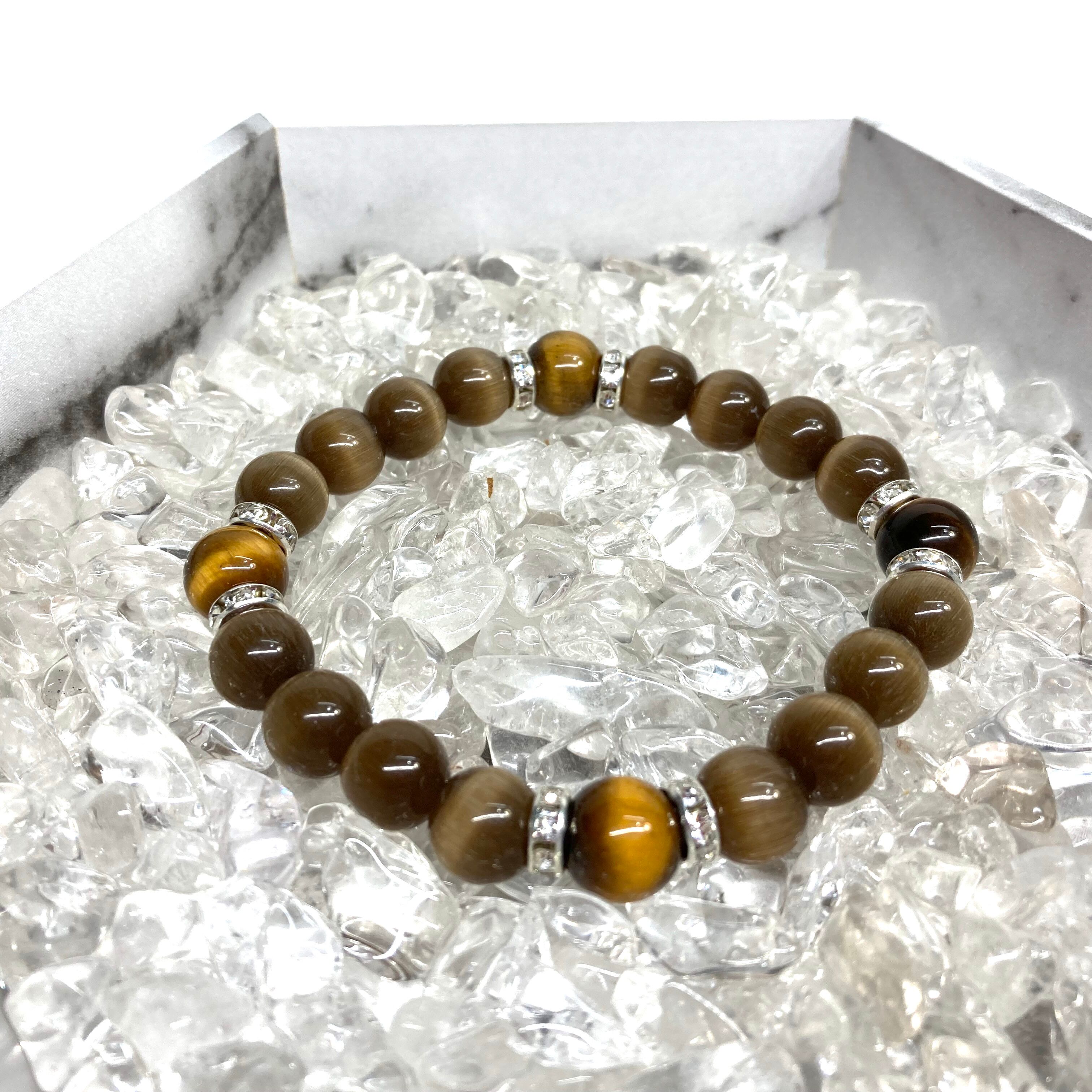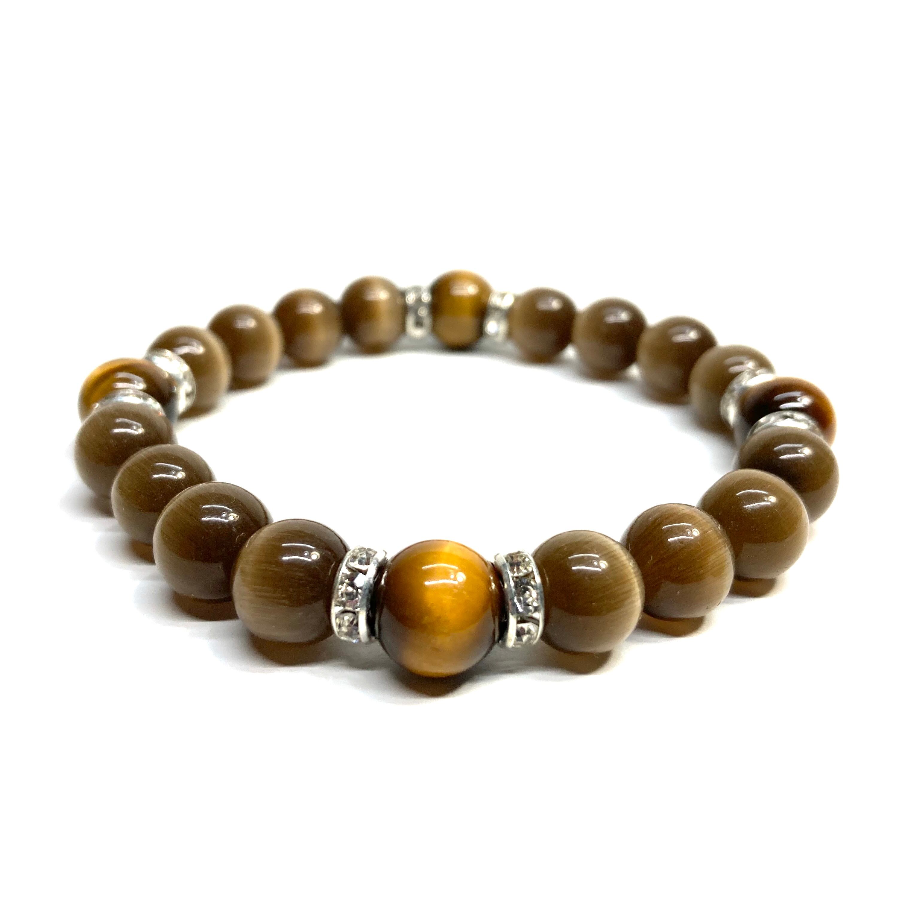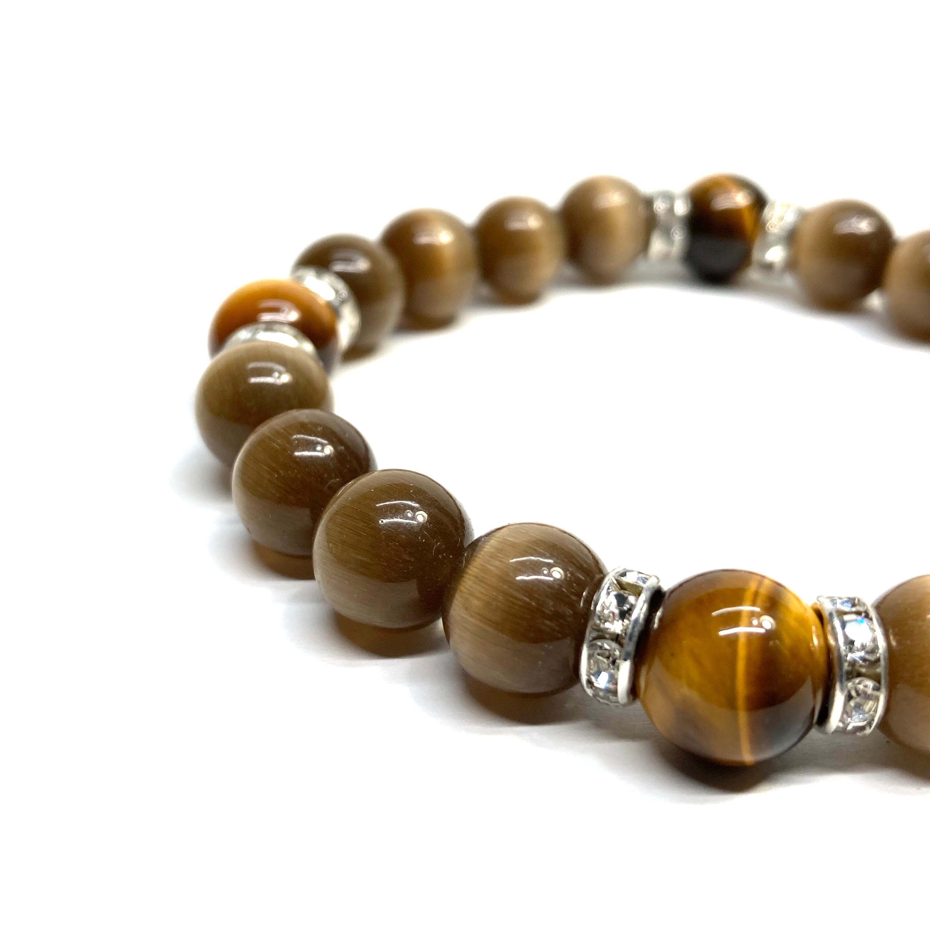 キャッツアイ(ブラウン)×タイガーアイ パワーストーン ブレスレット (シルバー) メンズ・レディース 男性・女性 数珠ブレス 開運