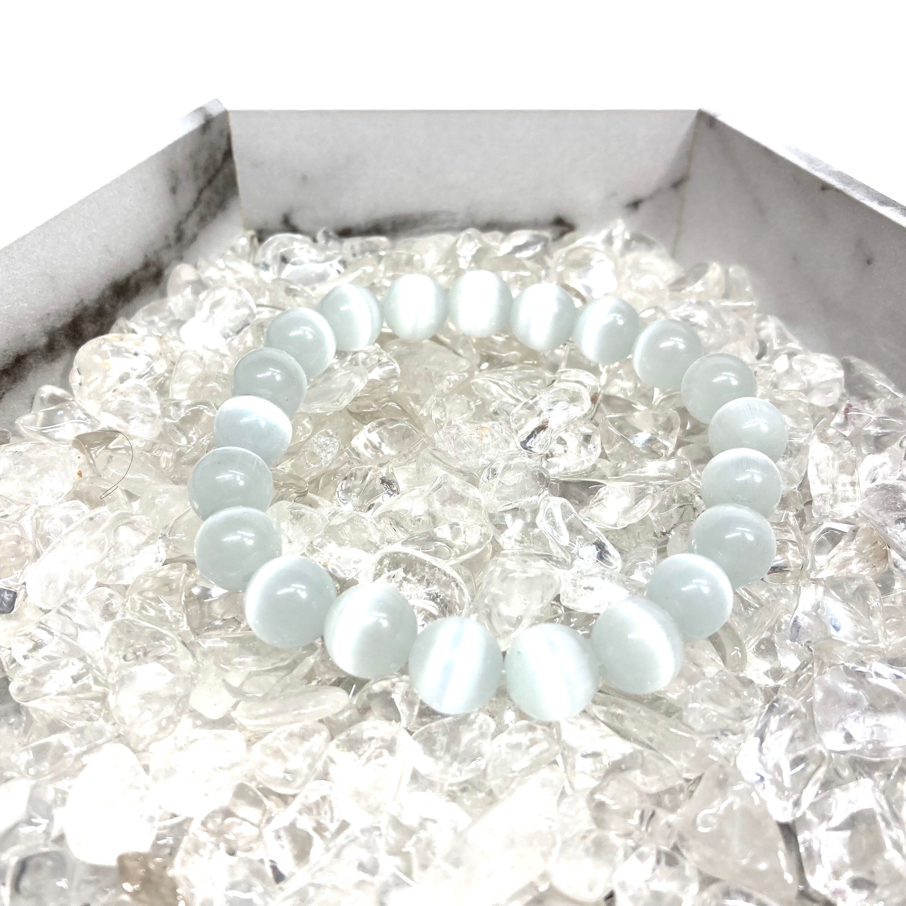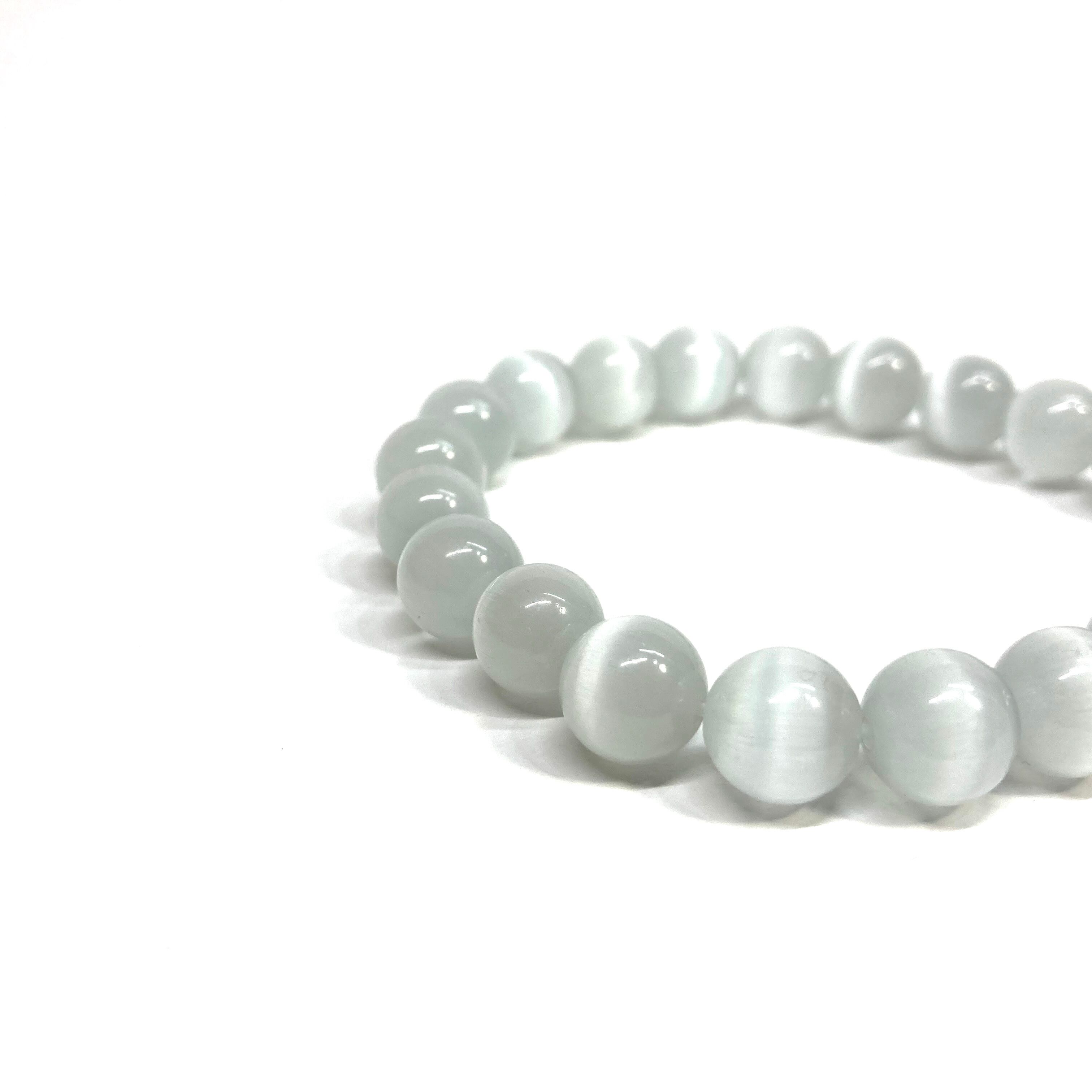キャッツアイ(ホワイト) パワーストーン ブレスレット (シンプル) メンズ・レディース 男性・女性 数珠ブレス 開運