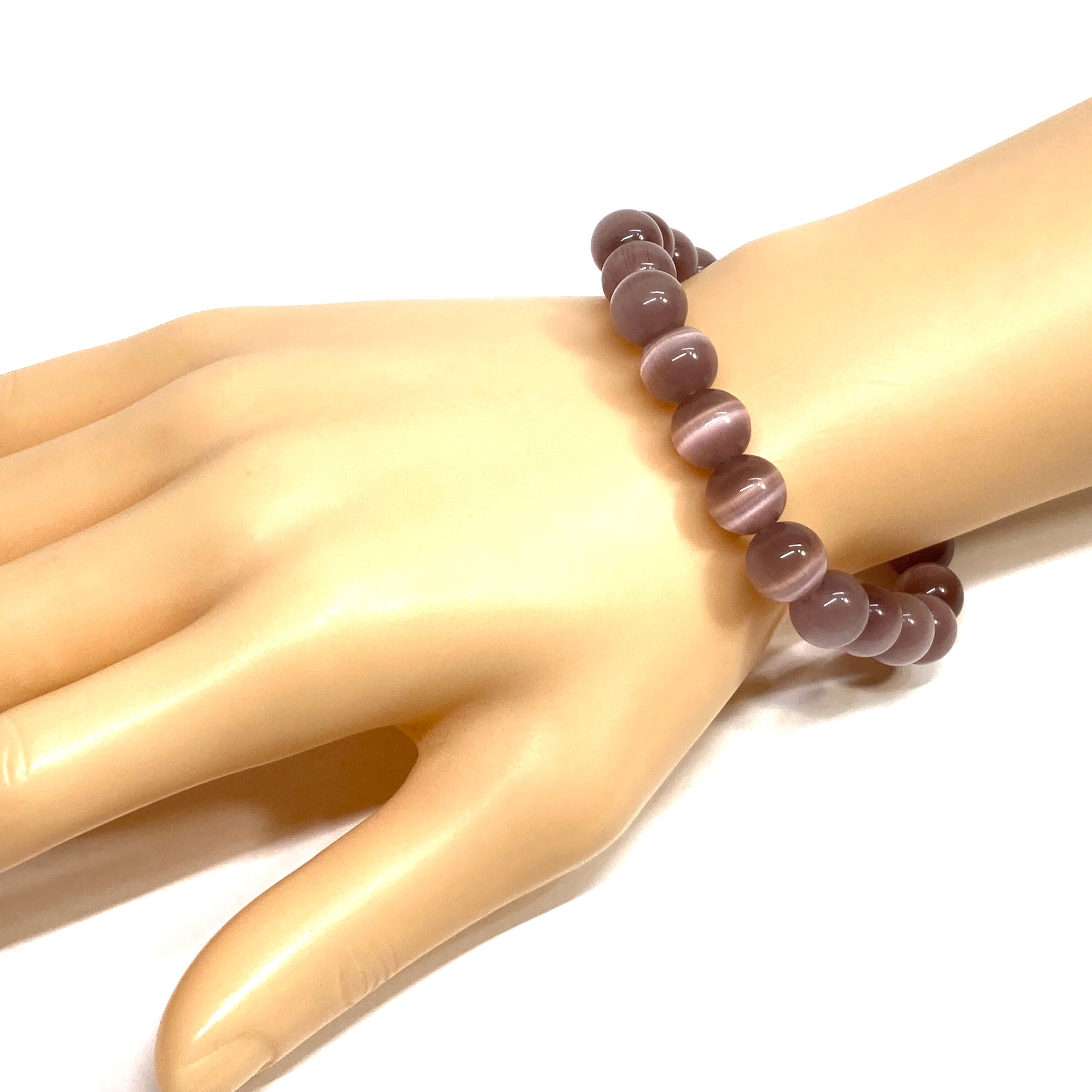 キャッツアイ(ライトパープル) パワーストーン ブレスレット (シンプル) メンズ・レディース 男性・女性 数珠ブレス 開運
