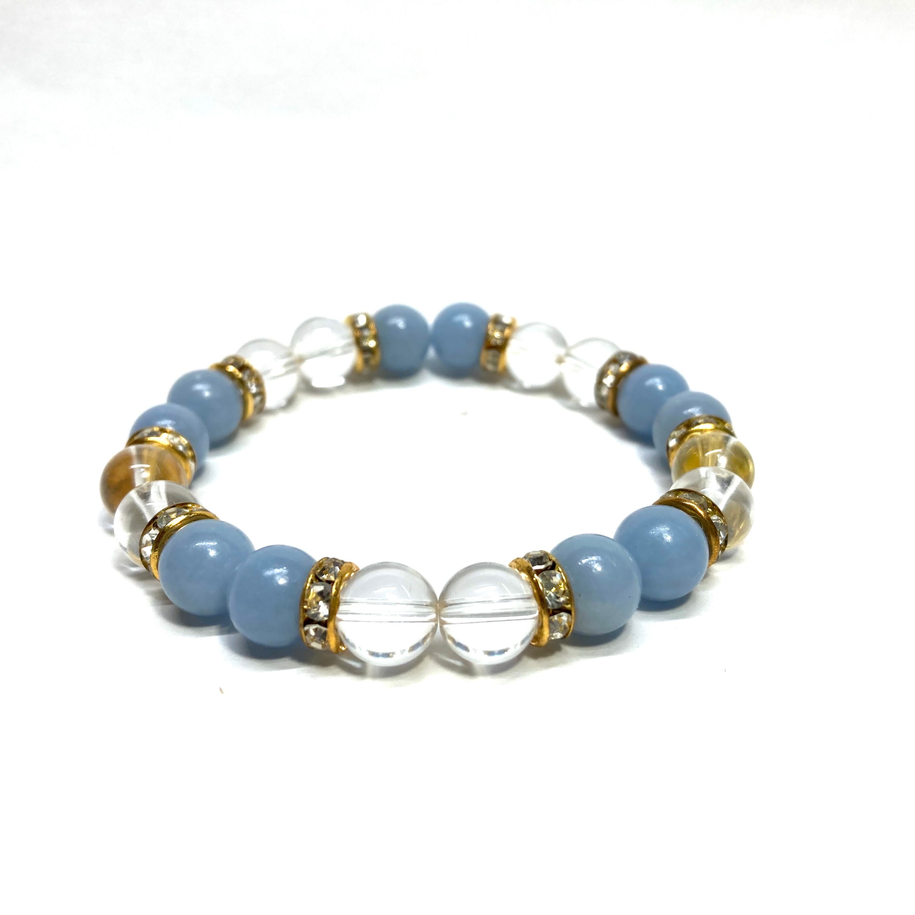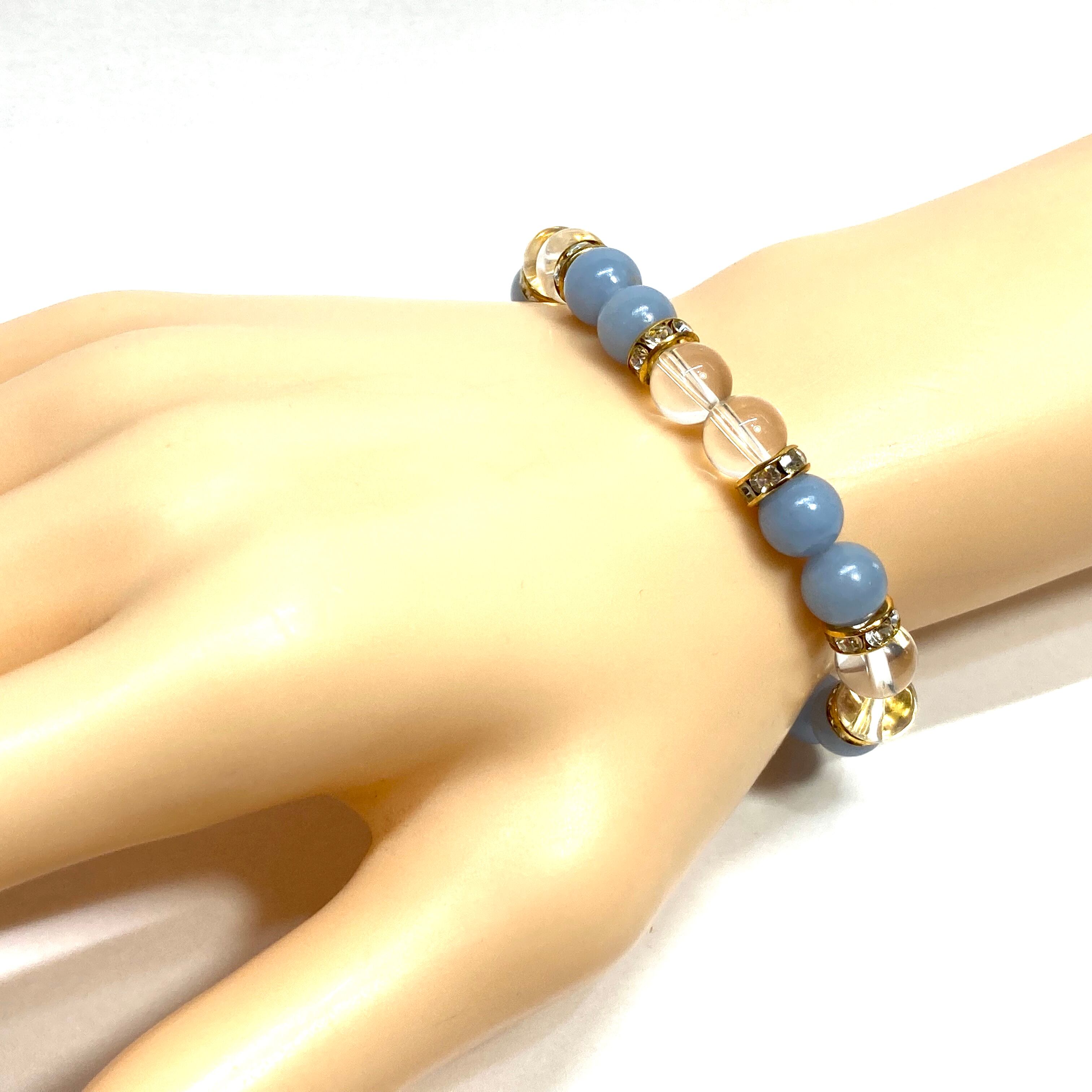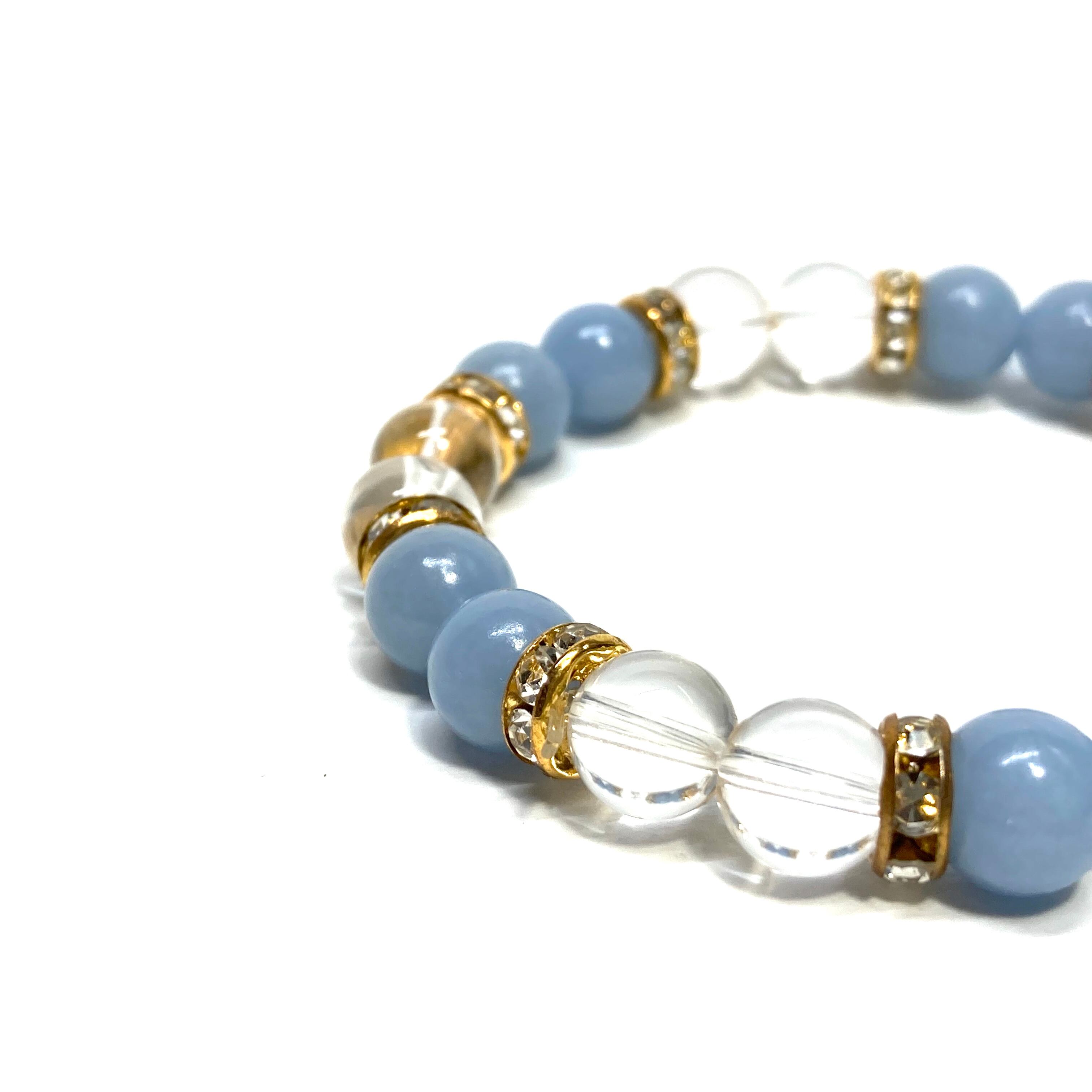 エンジェライト&水晶 パワーストーン ブレスレット 天然石ブレス (ゴールド) 8mm レディース 女性 数珠ブレス 開運 プレゼント ギフト