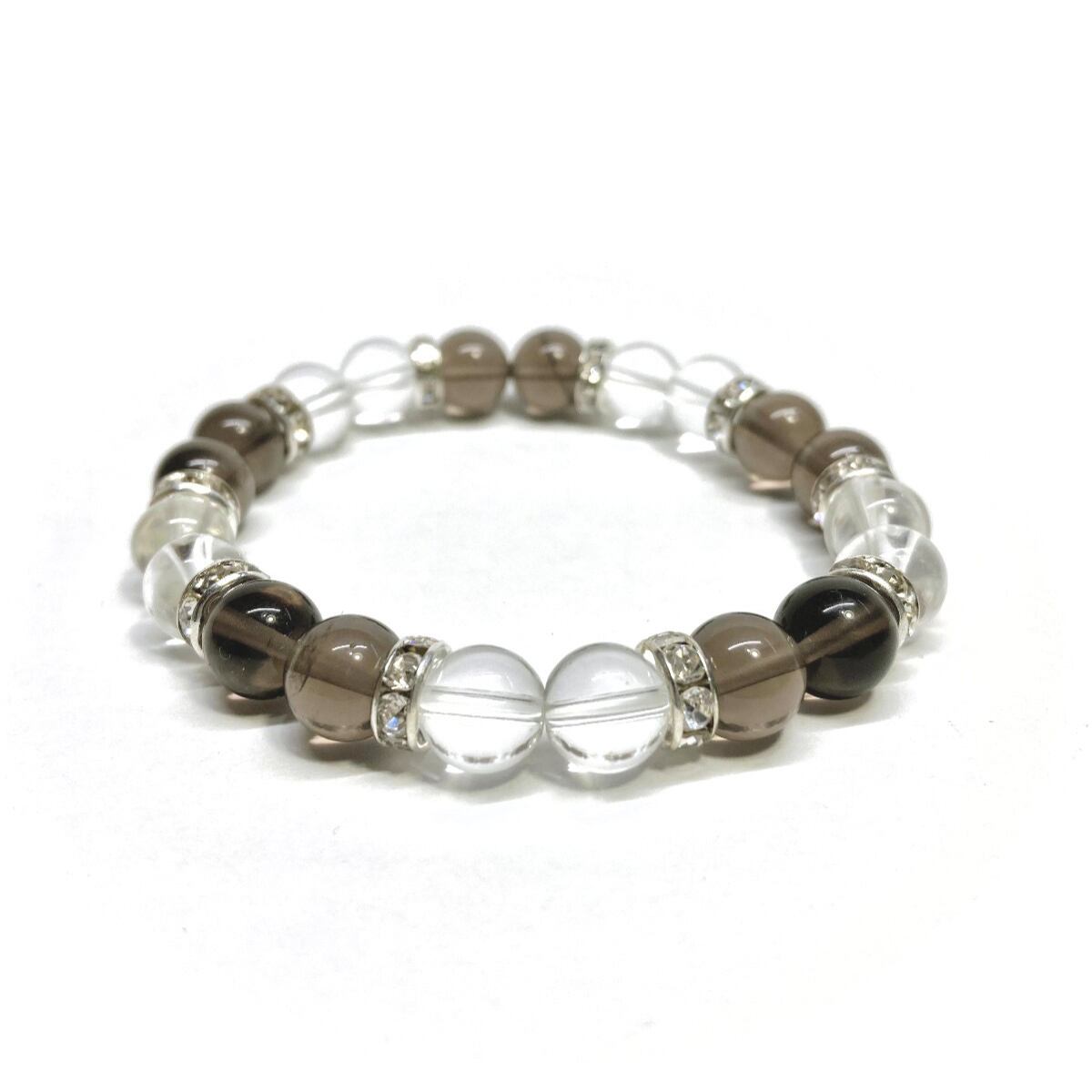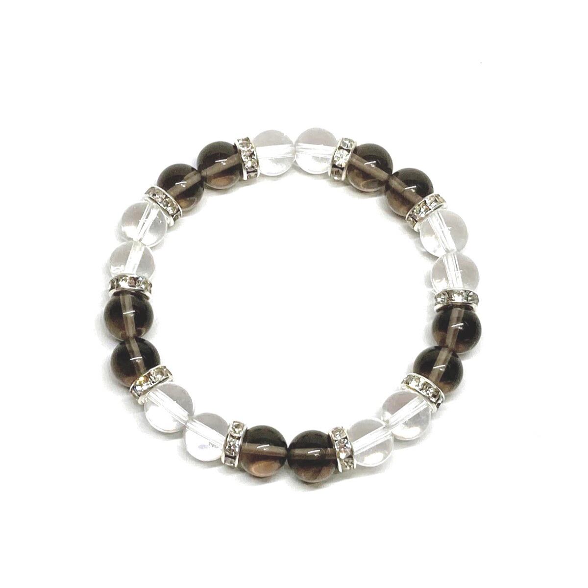 スモーキークォーツ&水晶 パワーストーン ブレスレット 天然石ブレス (シルバー) 8mm レディース 女性 数珠ブレス 開運 プレゼント ギフト