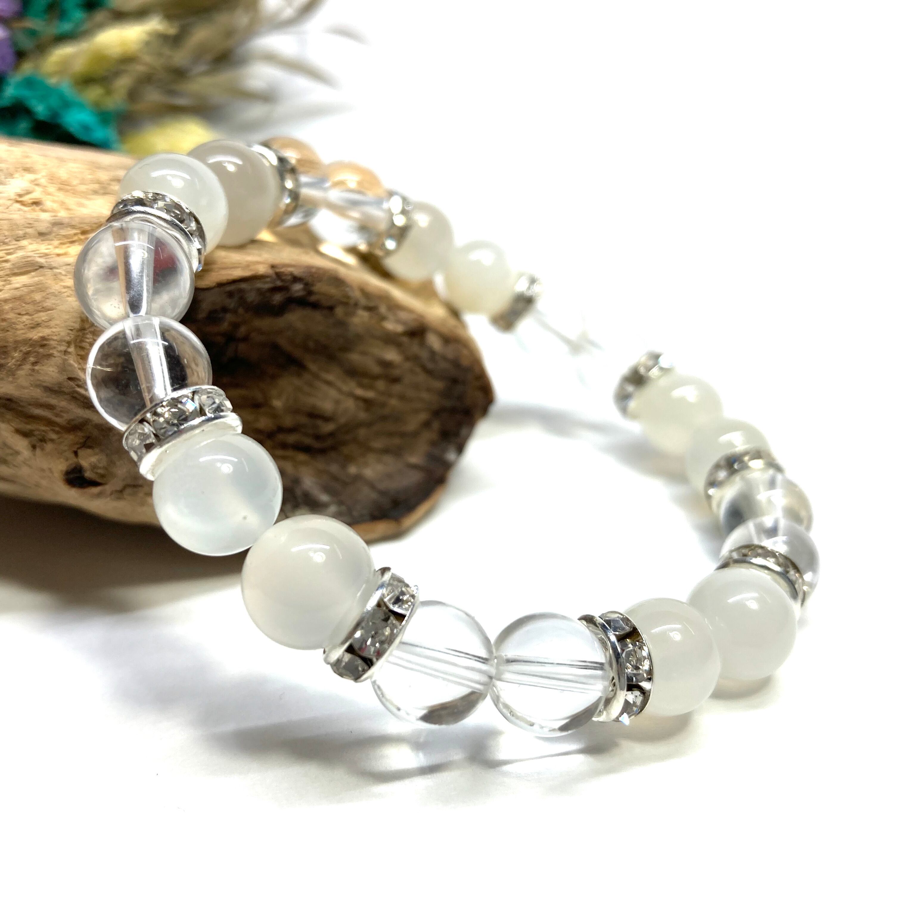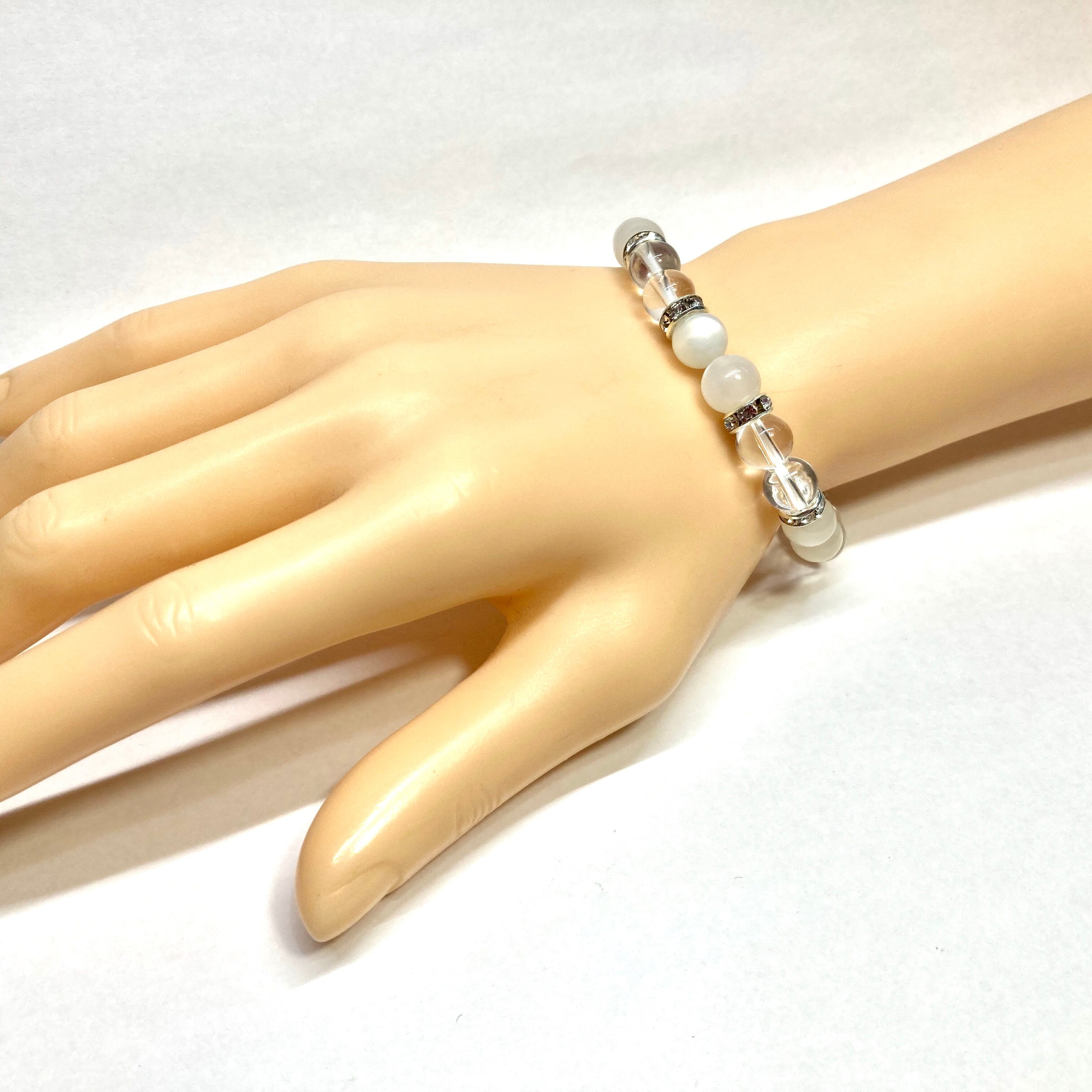 ムーンストーン&水晶 パワーストーン ブレスレット 天然石ブレス (シルバー) 8mm レディース 女性 数珠ブレス 開運 プレゼント ギフト