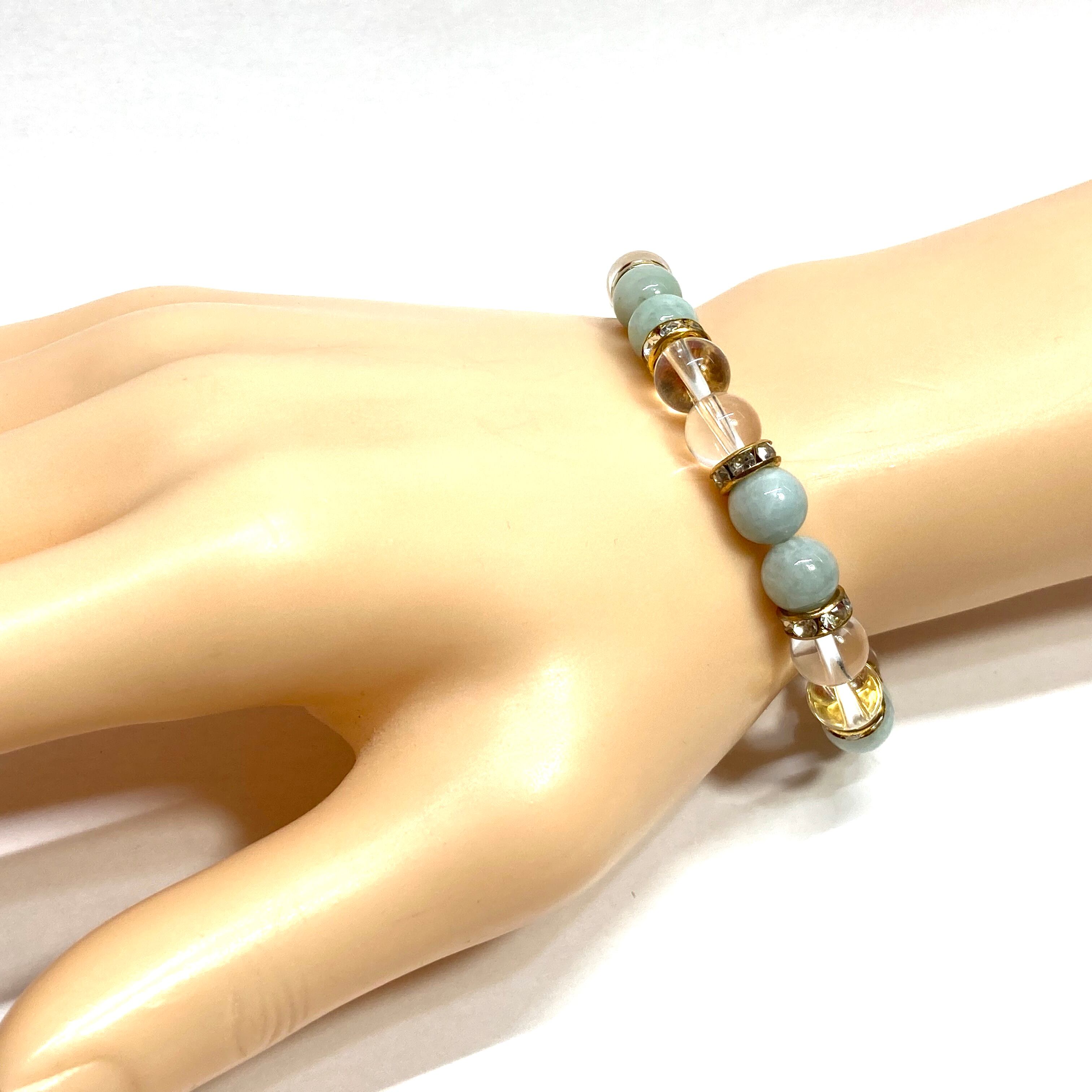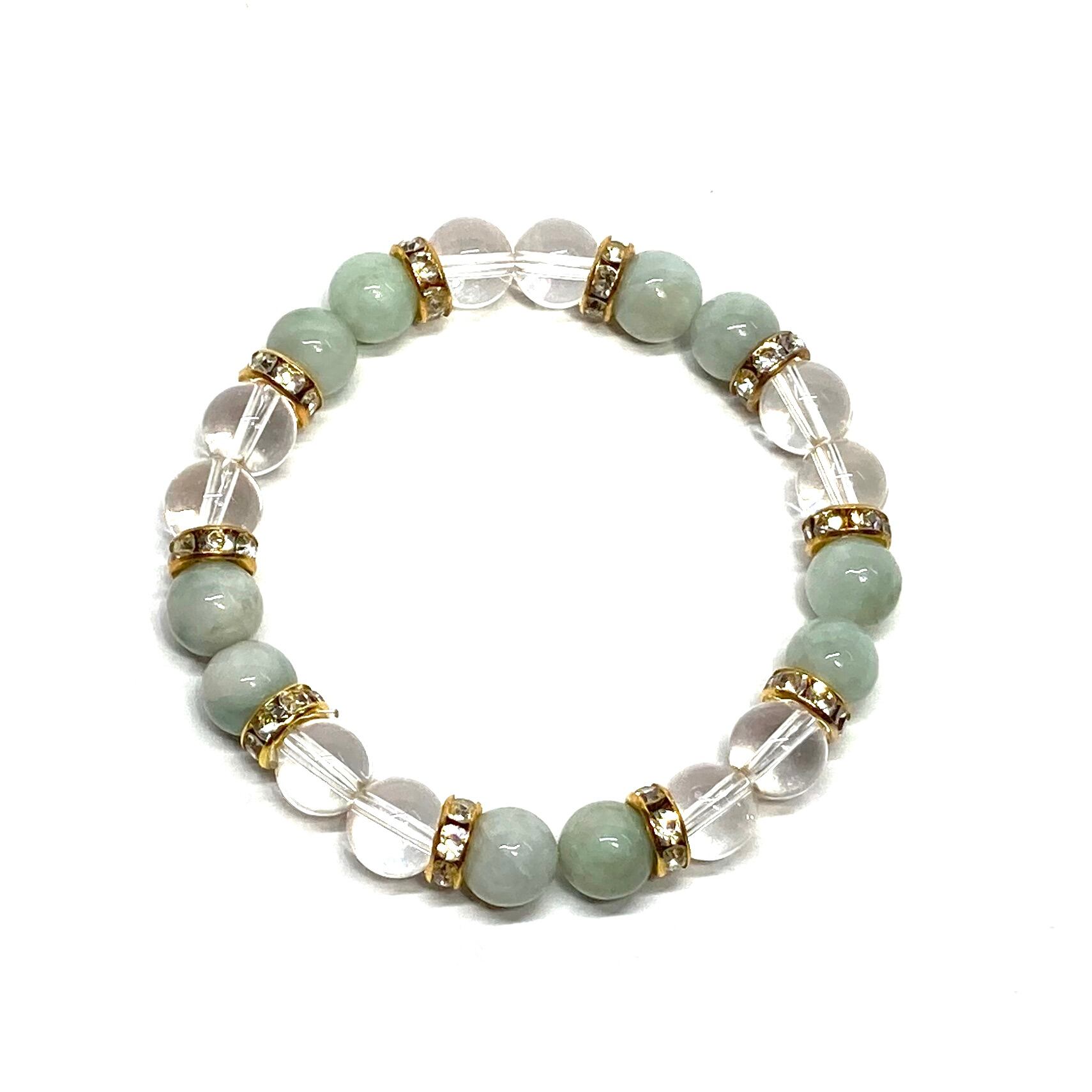 ビルマ翡翠&水晶 パワーストーン ブレスレット 天然石ブレス (ゴールド) 8mm レディース 女性 数珠ブレス 開運 プレゼント ギフト