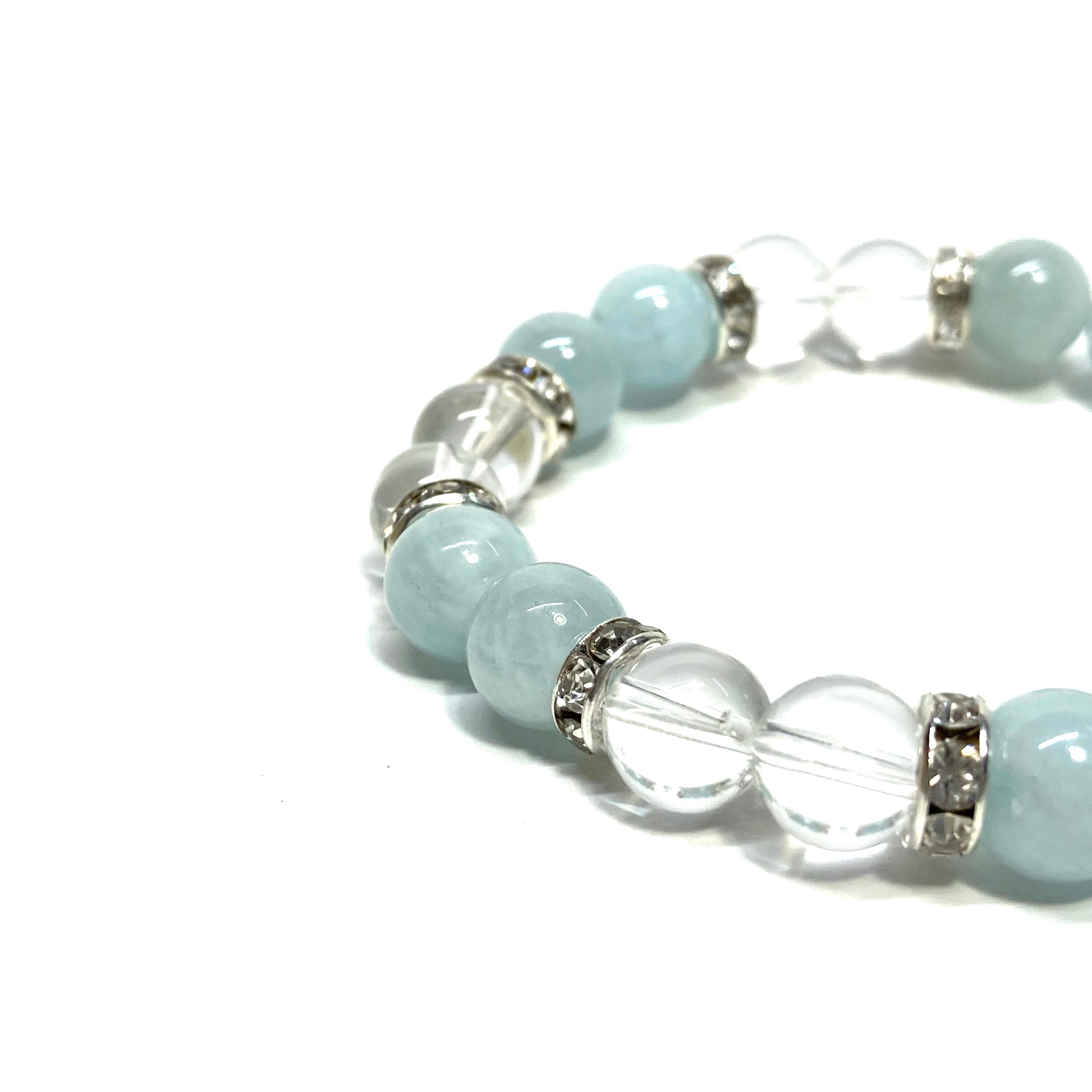 アクアマリン&水晶 パワーストーン ブレスレット 天然石ブレス (シルバー) 8mm レディース 女性 数珠ブレス 開運 プレゼント ギフト