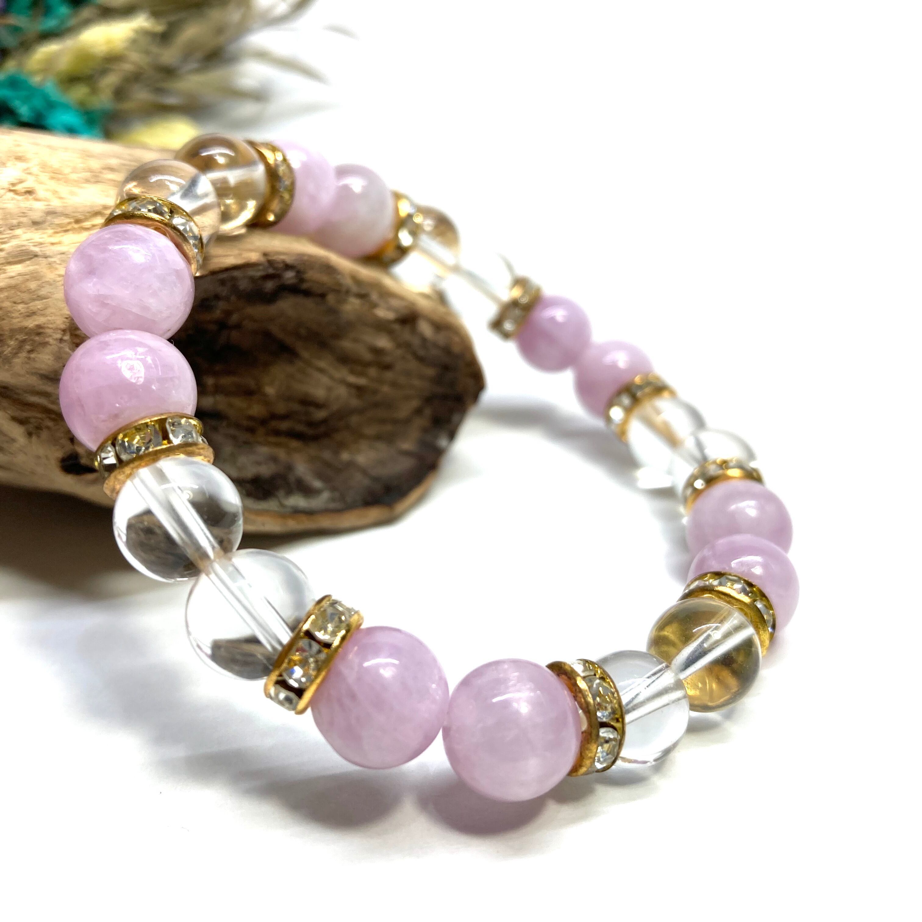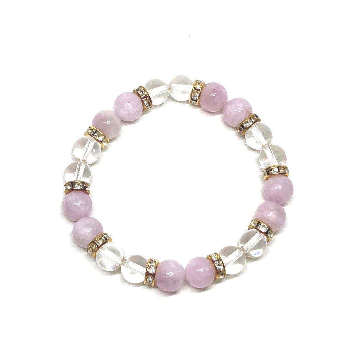 クンツァイト&水晶 パワーストーン ブレスレット 天然石ブレス (ゴールド) 8mm レディース 女性 数珠ブレス 開運 プレゼント ギフト