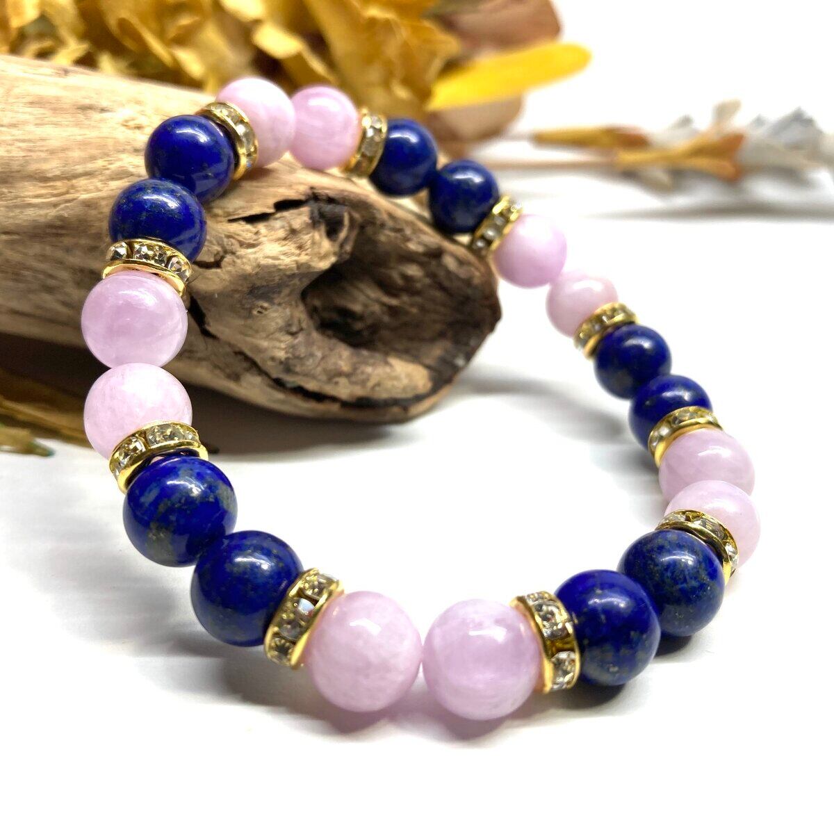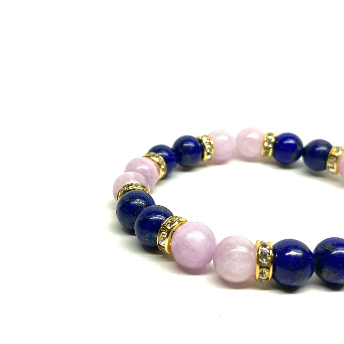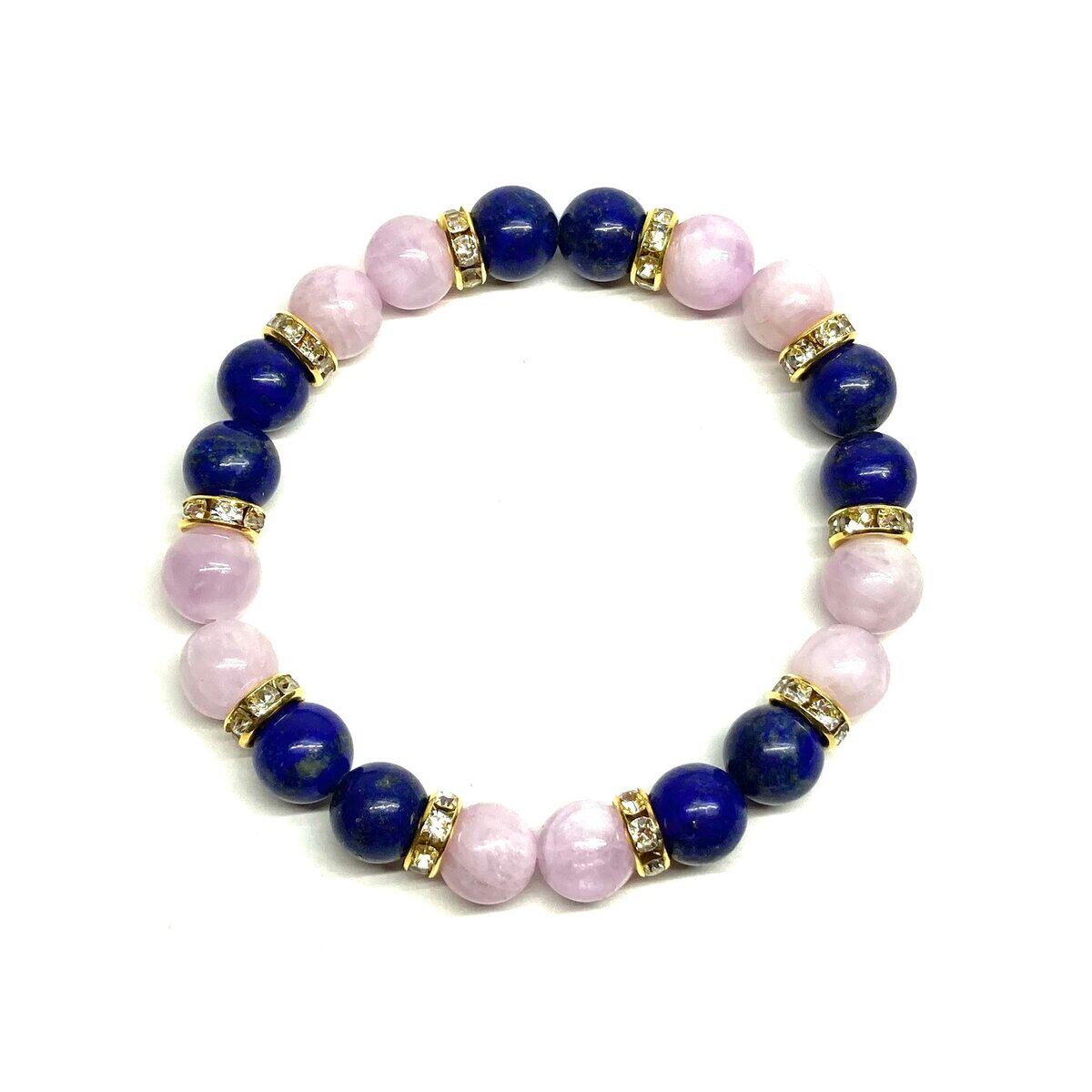 ラピスラズリ&クンツァイト パワーストーン ブレスレット 天然石 (ゴールド) 8mm レディース 女性 数珠ブレス 開運 プレゼント ギフト