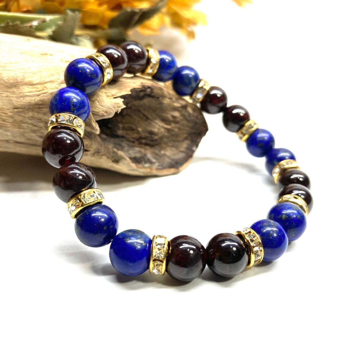 ラピスラズリ&ガーネット パワーストーン ブレスレット 天然石 (ゴールド) 8mm レディース 女性 数珠ブレス 開運 プレゼント ギフト