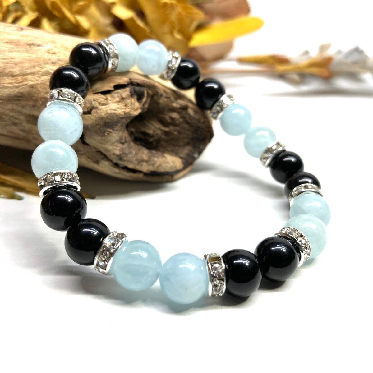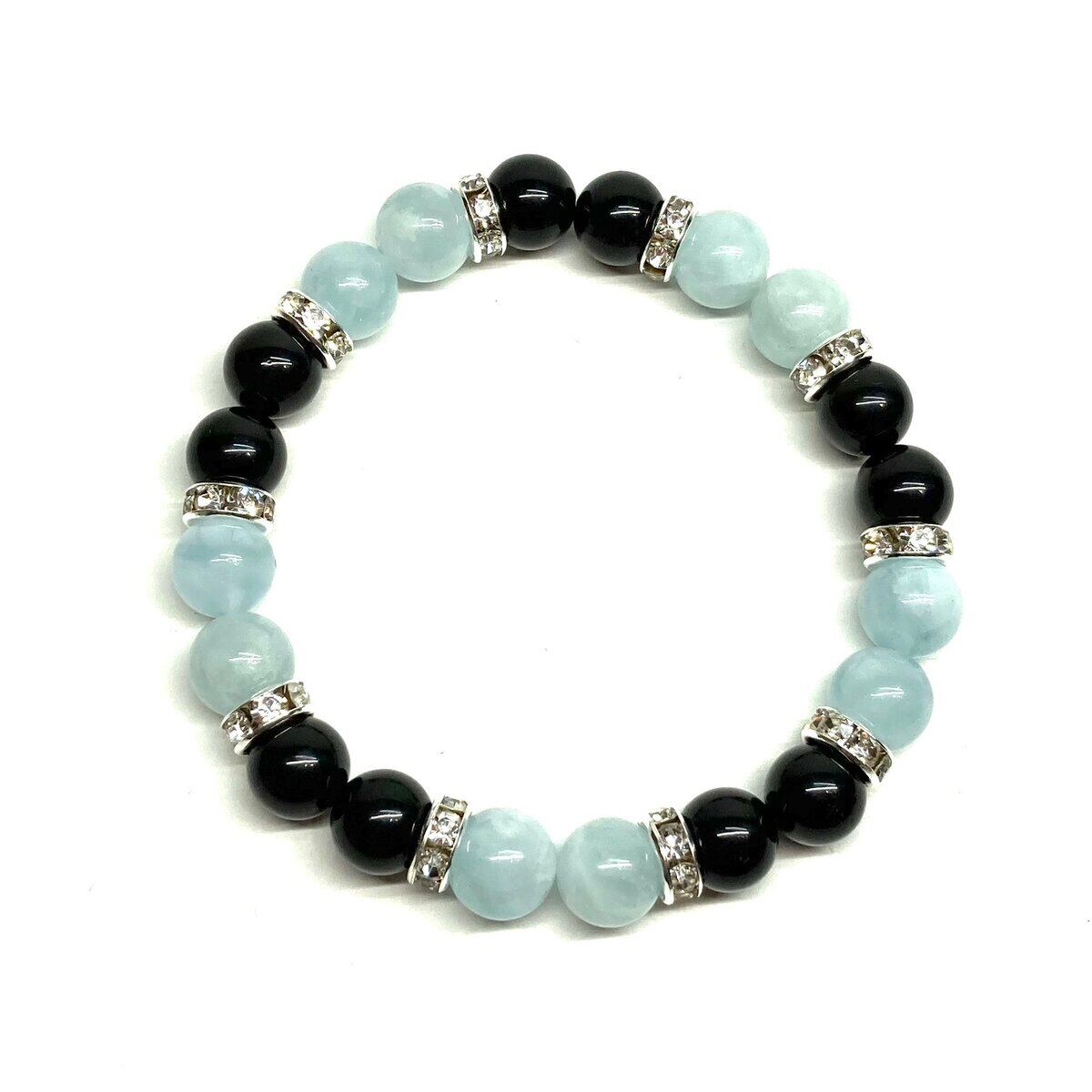 モリオン&アクアマリン パワーストーン ブレスレット 天然石 (シルバー) 8mm レディース 女性 数珠ブレス 開運 プレゼント ギフト