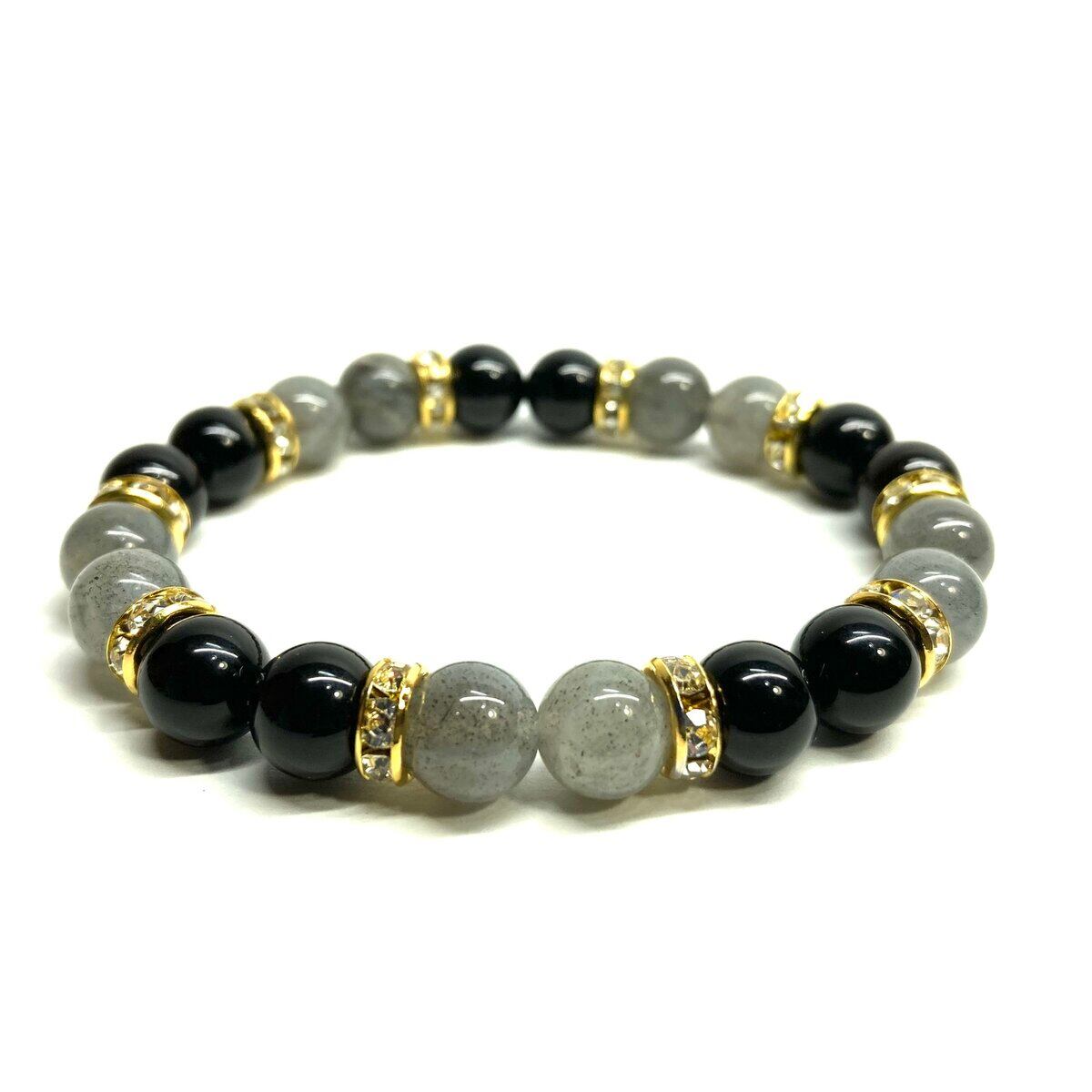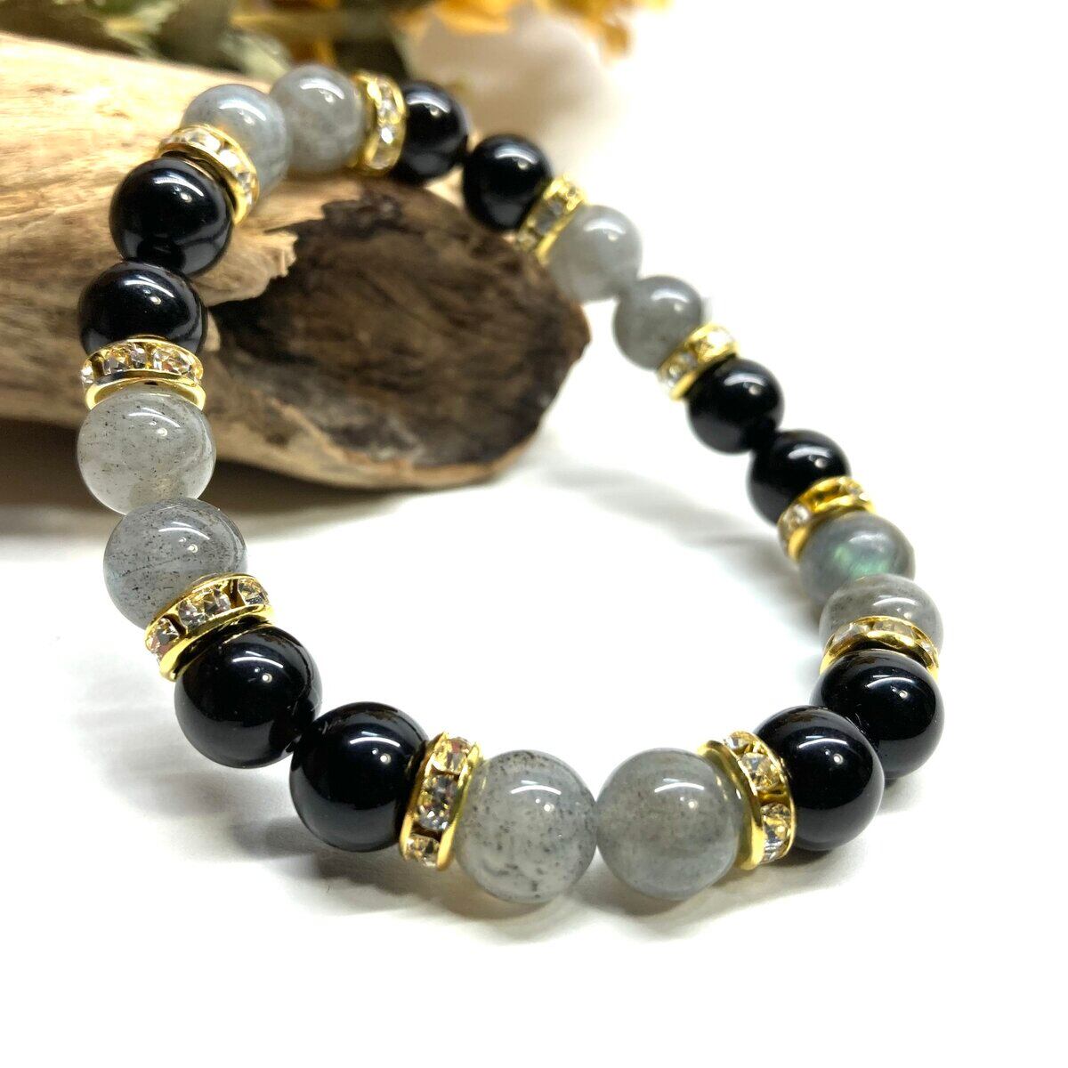 モリオン&ラブラドライト パワーストーン ブレスレット 天然石 (ゴールド) 8mm レディース 女性 数珠ブレス 開運 プレゼント ギフト