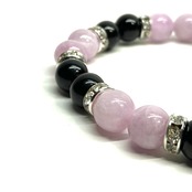 こちらは、8mm玉のモリオンとクンツァイトを使ったパワーストーンブレスレットです。シンプルなデザインでどんなコーディネートにも合わせやすいデザインに仕上げています。サイズは内周 約15cmです。気になる方は是非この機会にどうぞ。