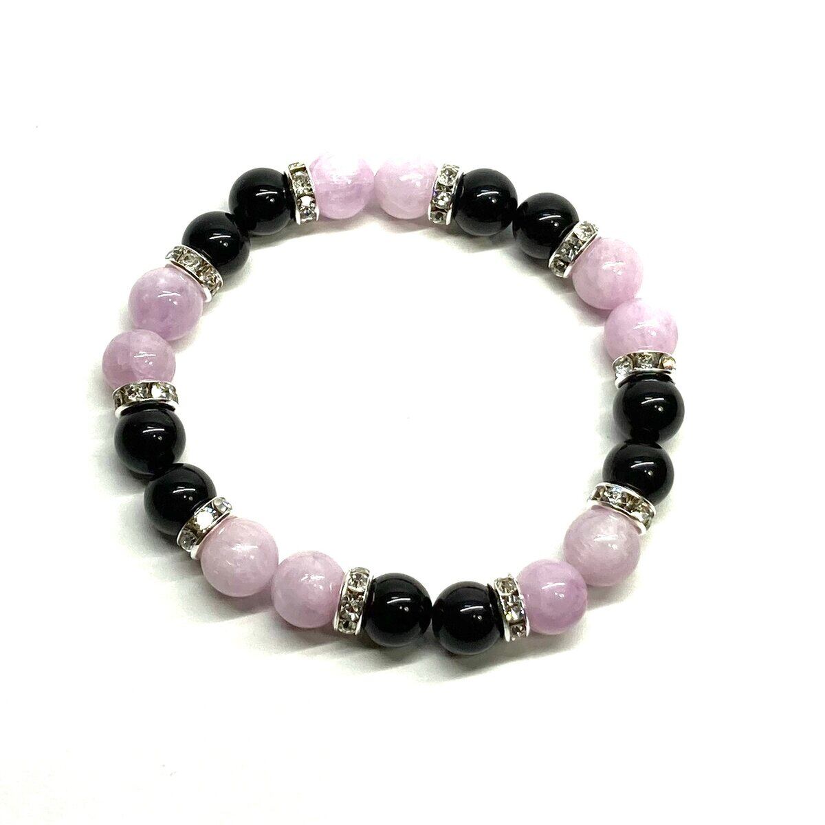 モリオン&クンツァイト パワーストーン ブレスレット 天然石 (シルバー) 8mm レディース 女性 数珠ブレス 開運 プレゼント ギフト