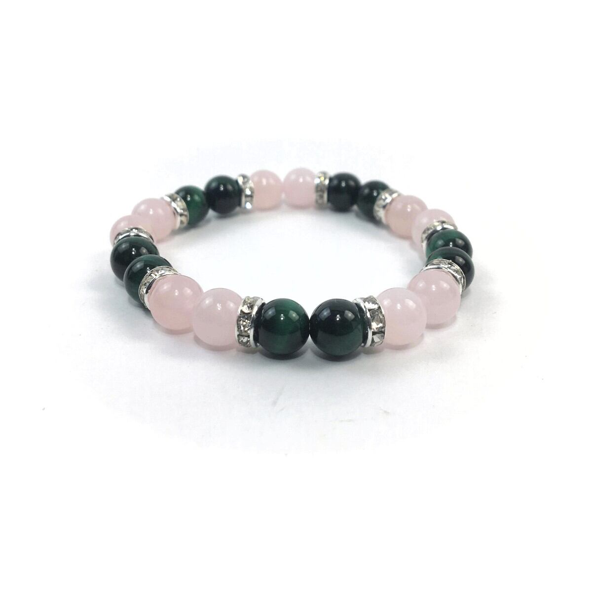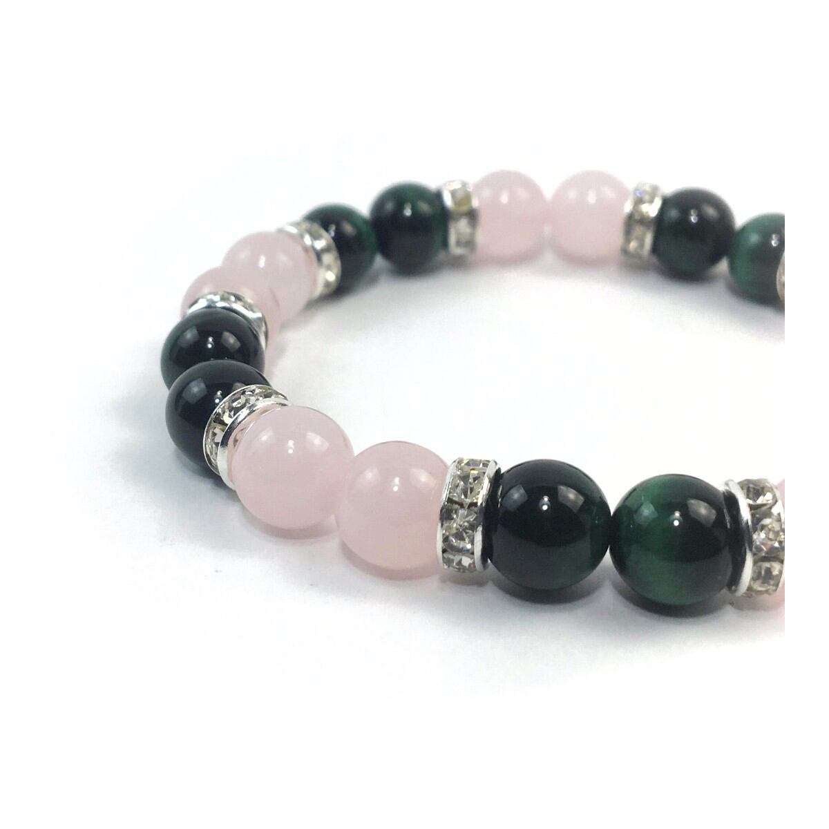 ローズクォーツ&グリーンタイガーアイ パワーストーン ブレスレット 天然石 8mm(シルバー)レディース 女性 数珠ブレス 開運 プレゼント ギフト