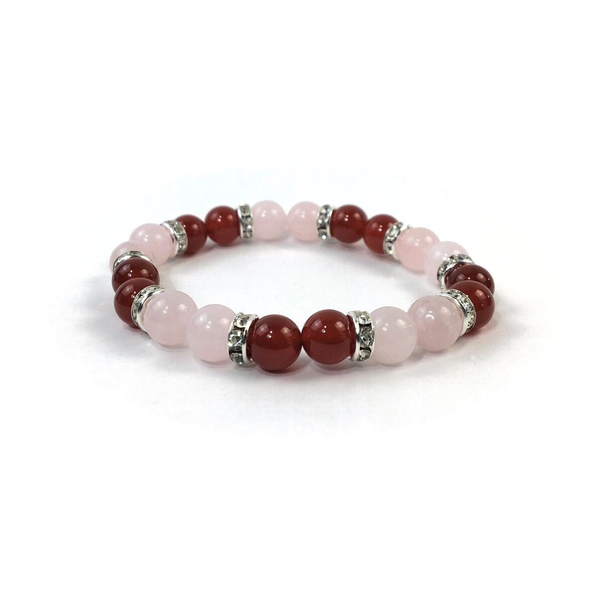 ローズクォーツ&赤メノウ パワーストーン ブレスレット 天然石 8mm(シルバー)レディース 女性 数珠ブレス 開運 プレゼント ギフト