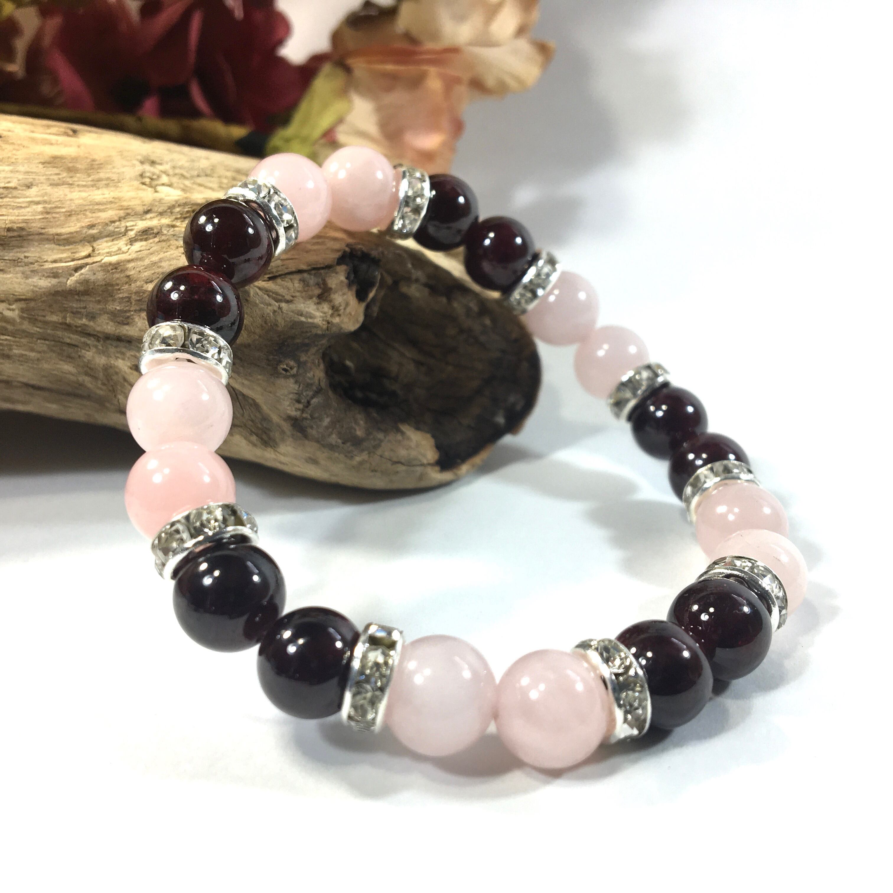 ローズクォーツ&ガーネット パワーストーン ブレスレット 天然石 8mm(シルバー)レディース 女性 数珠ブレス 開運 プレゼント ギフト