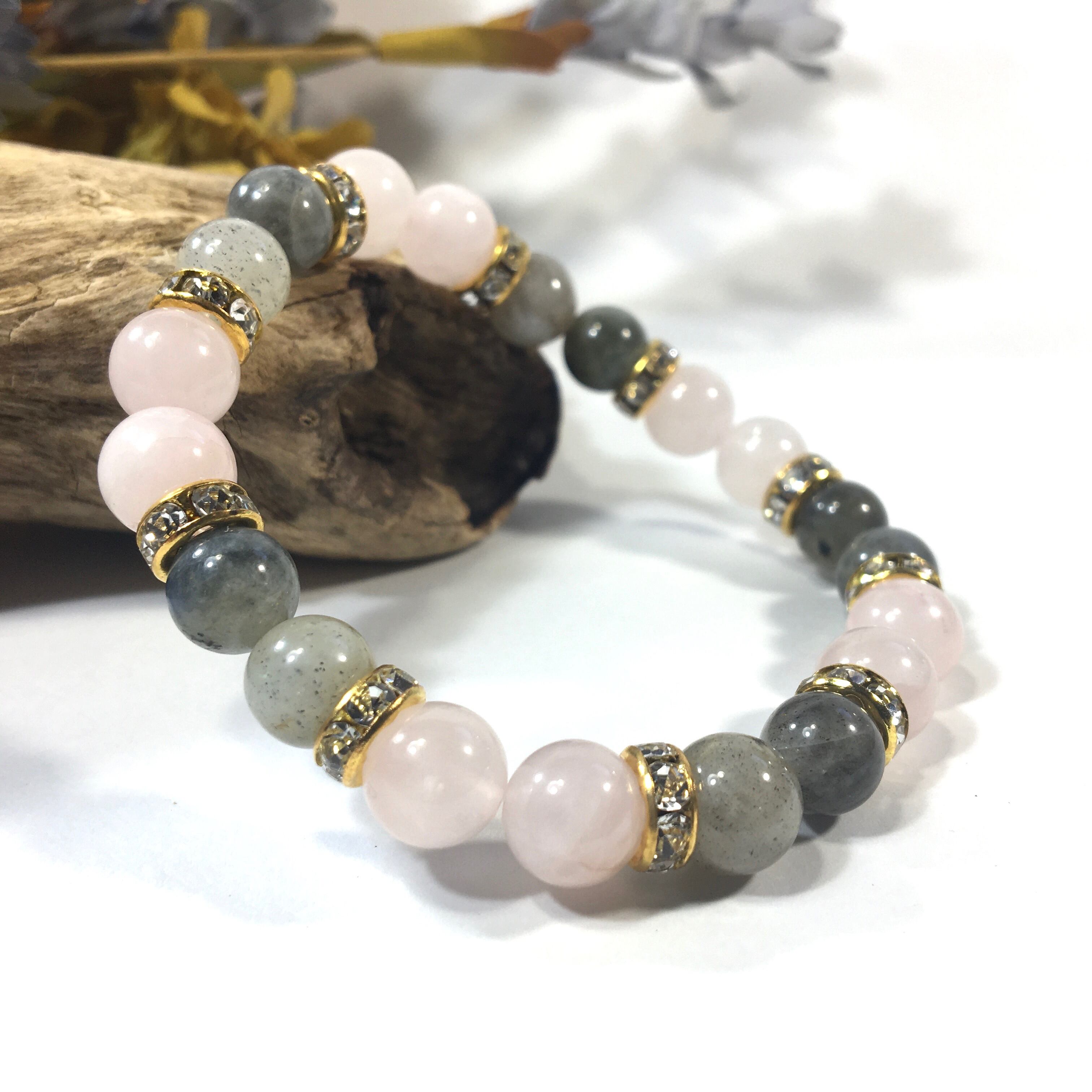ローズクォーツ&ラブラドライト パワーストーン ブレスレット 天然石 8mm(ゴールド)レディース 女性 数珠ブレス 開運 プレゼント ギフト