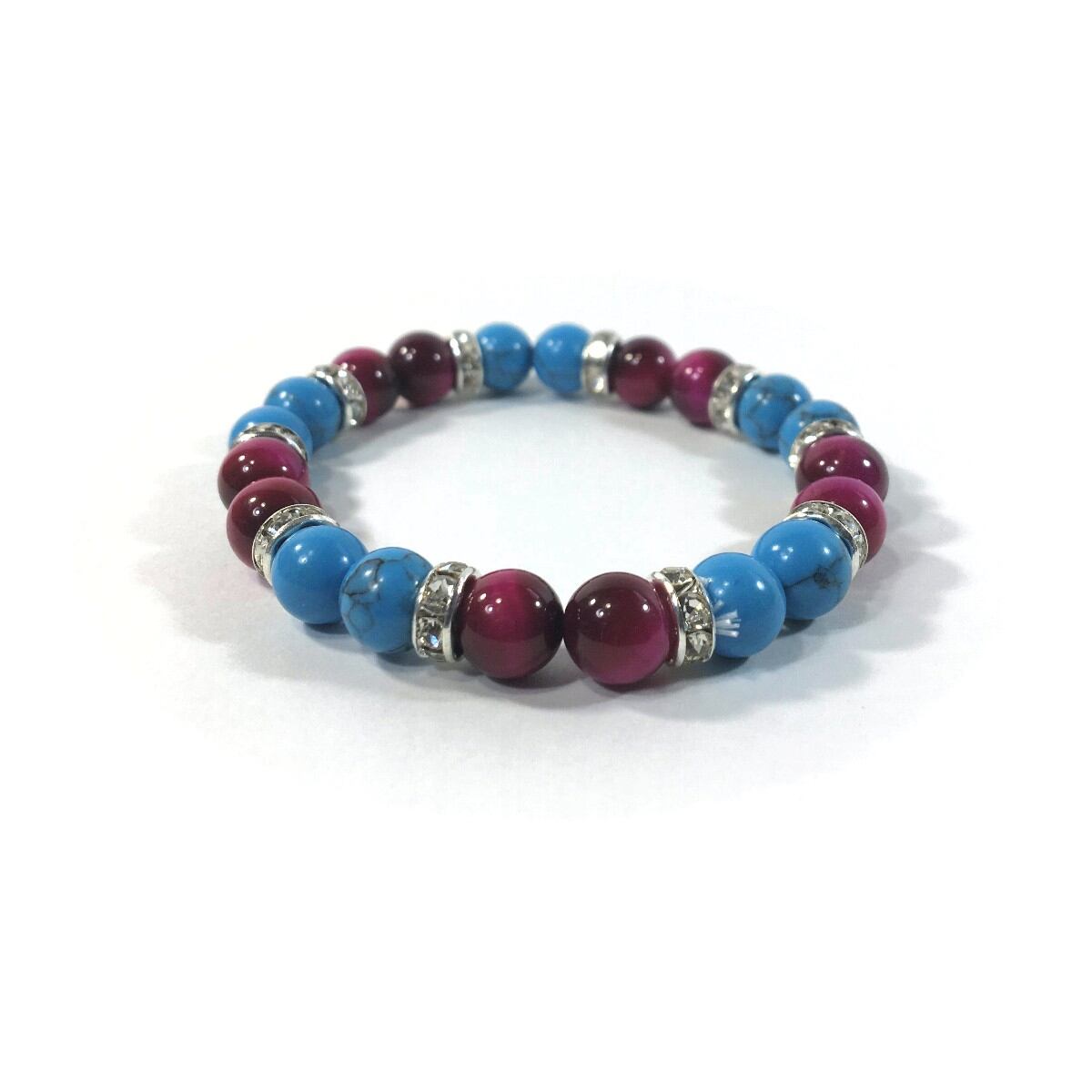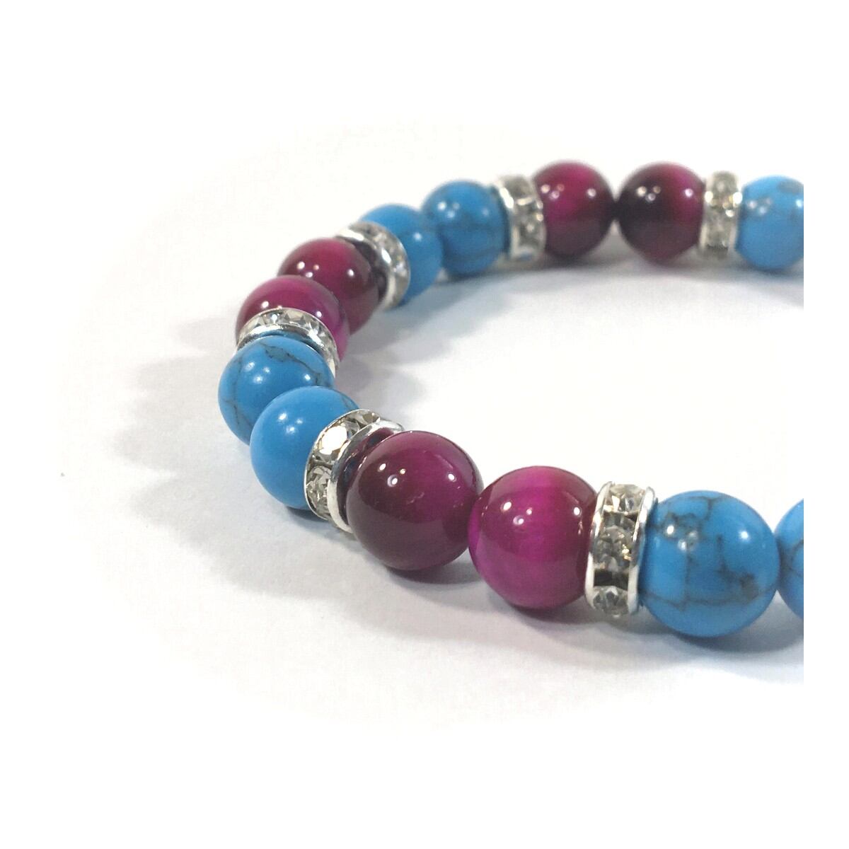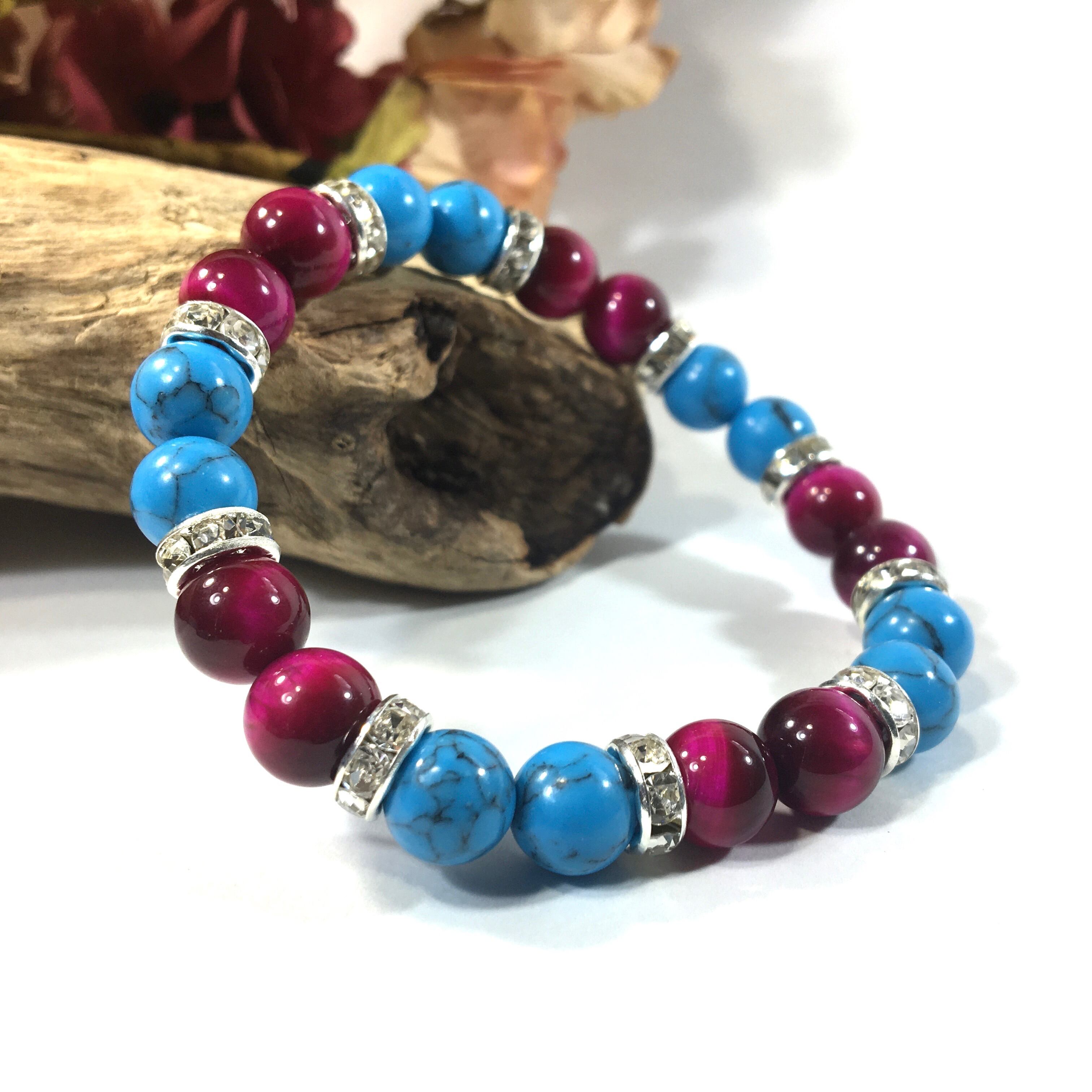 ターコイズ &ピンクタイガーアイ パワーストーン ブレスレット 8mm(シルバー)レディース 女性 数珠ブレス 開運 プレゼント ギフト
