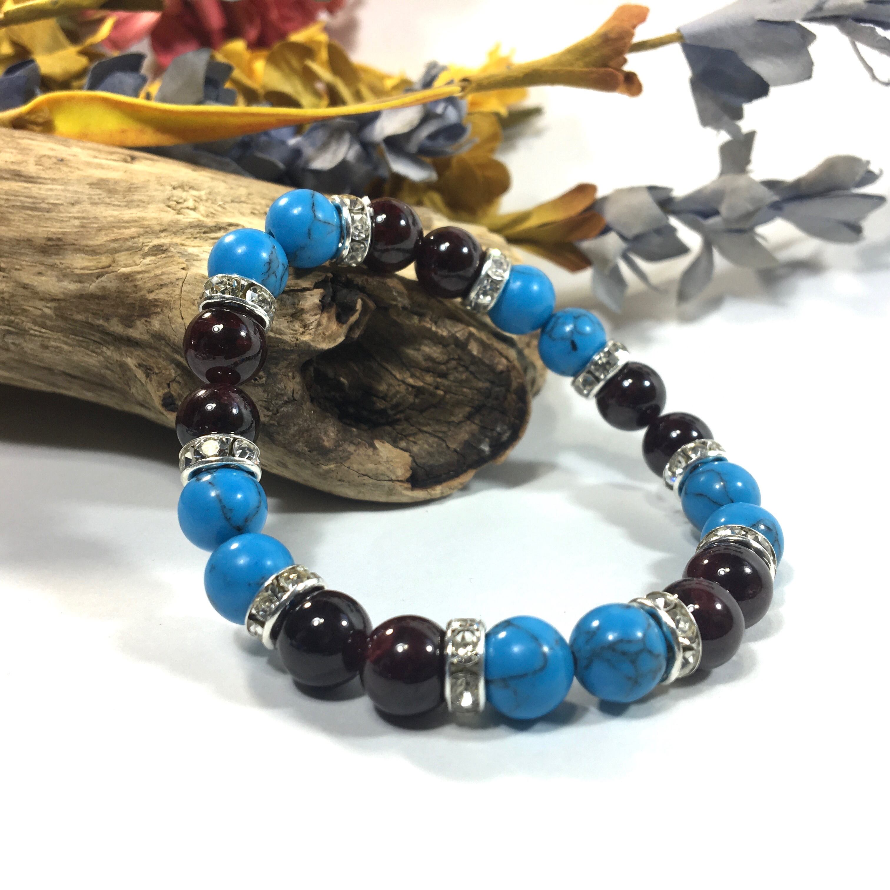 ターコイズ&ガーネット  パワーストーン ブレスレット 天然石ブレス 8mm(シルバー)レディース 女性 数珠ブレス 開運 プレゼント ギフト