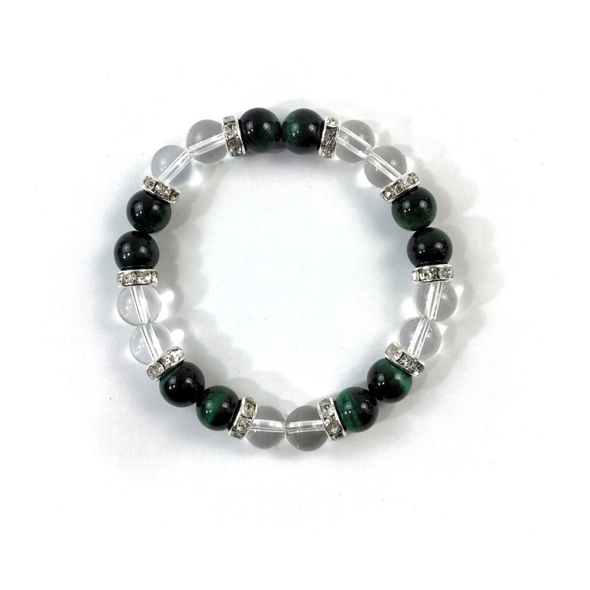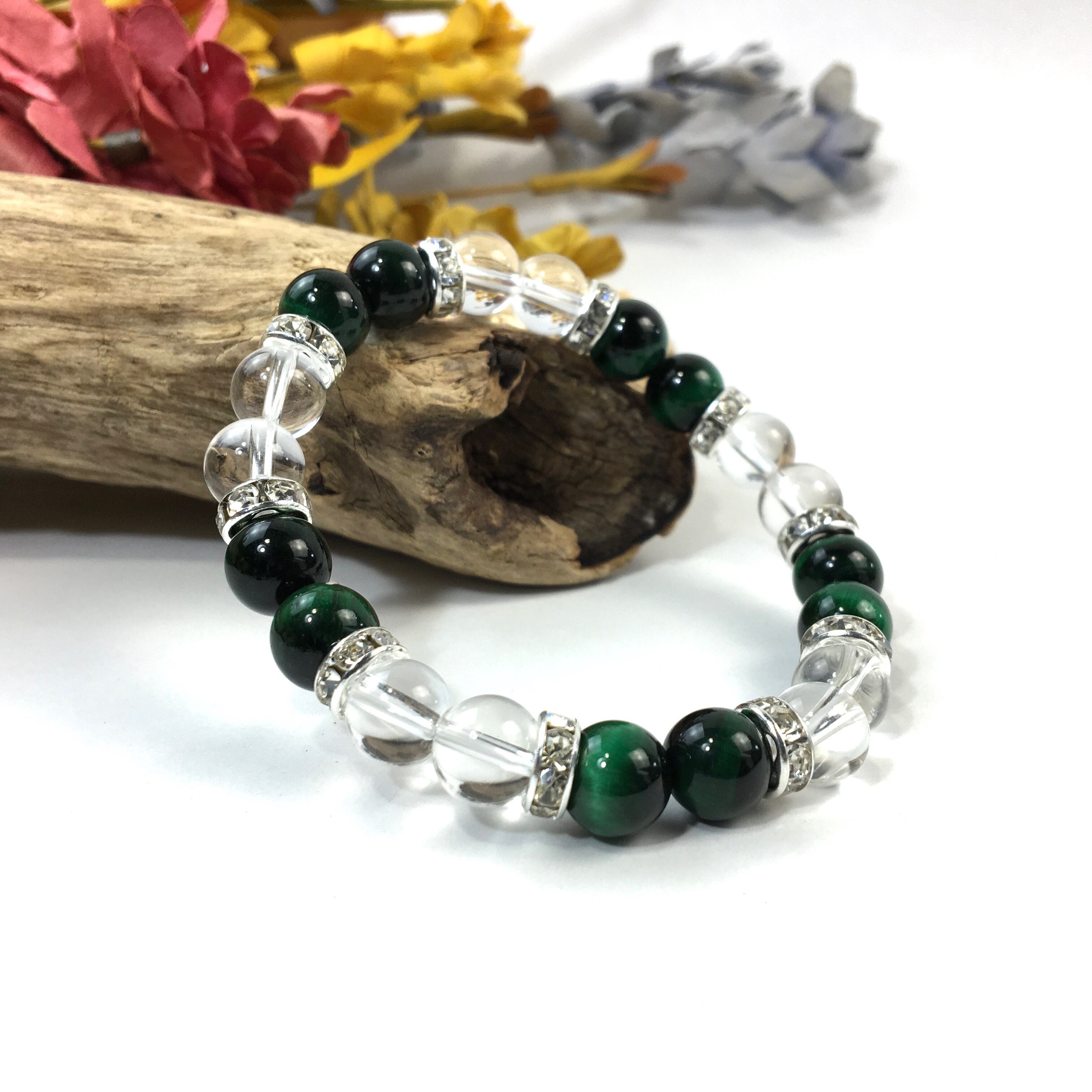 水晶&グリーンタイガーアイ パワーストーン ブレスレット 天然石 8mm(シルバー)レディース 女性 数珠ブレス 開運 プレゼント ギフト