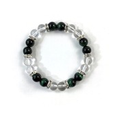 こちらは、8mm玉の水晶とグリーンタイガーアイを使ったパワーストーンブレスレットです。シンプルなデザインでどんなコーディネートにも合わせやすいデザインに仕上げています。サイズは内周約15cmです。気になる方は是非この機会にどうぞ。