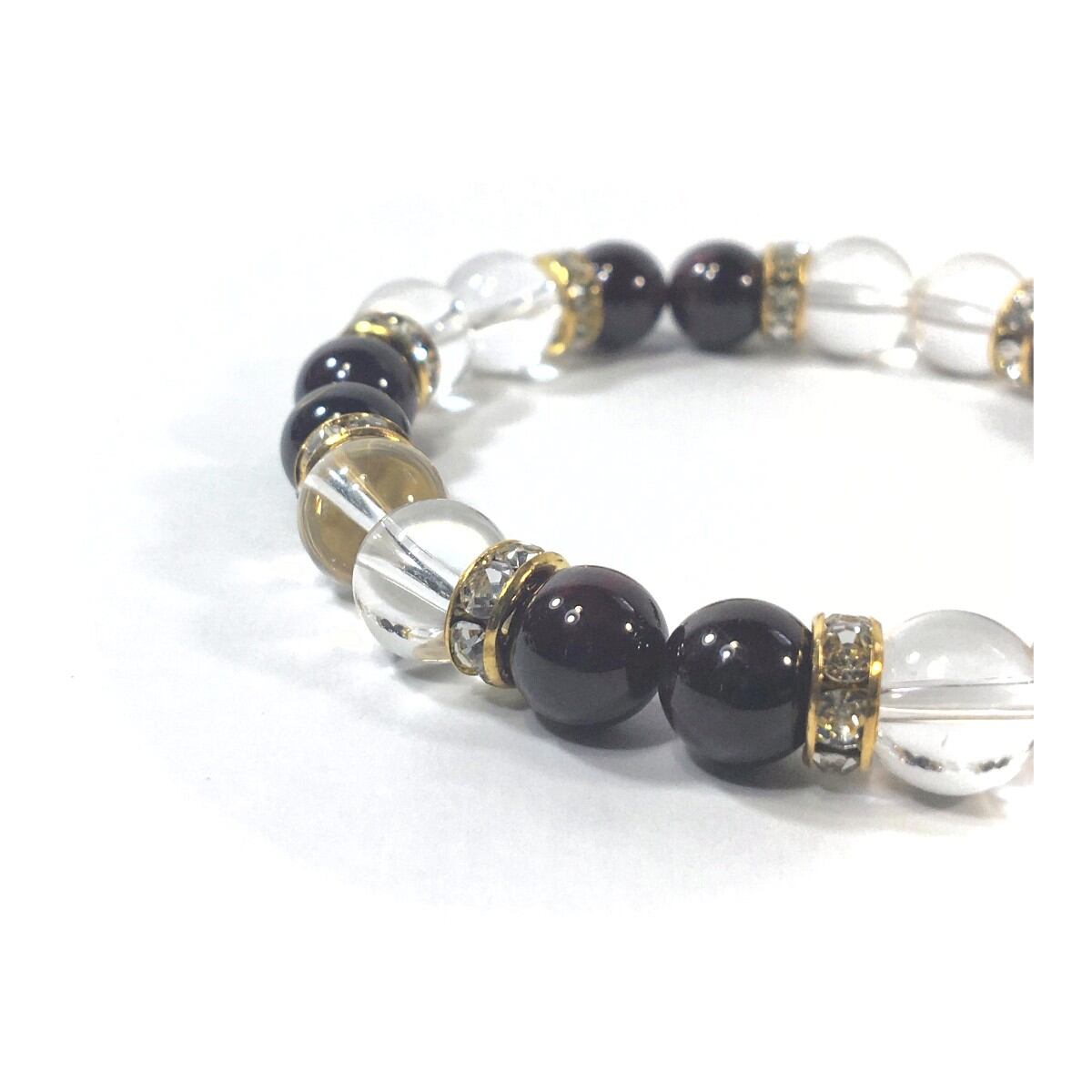 水晶&ガーネット パワーストーン ブレスレット 天然石 8mm(ゴールド)レディース 女性 数珠ブレス 開運 プレゼント ギフト