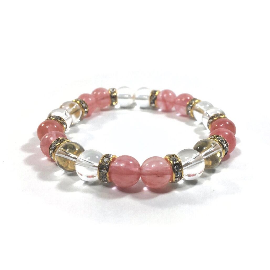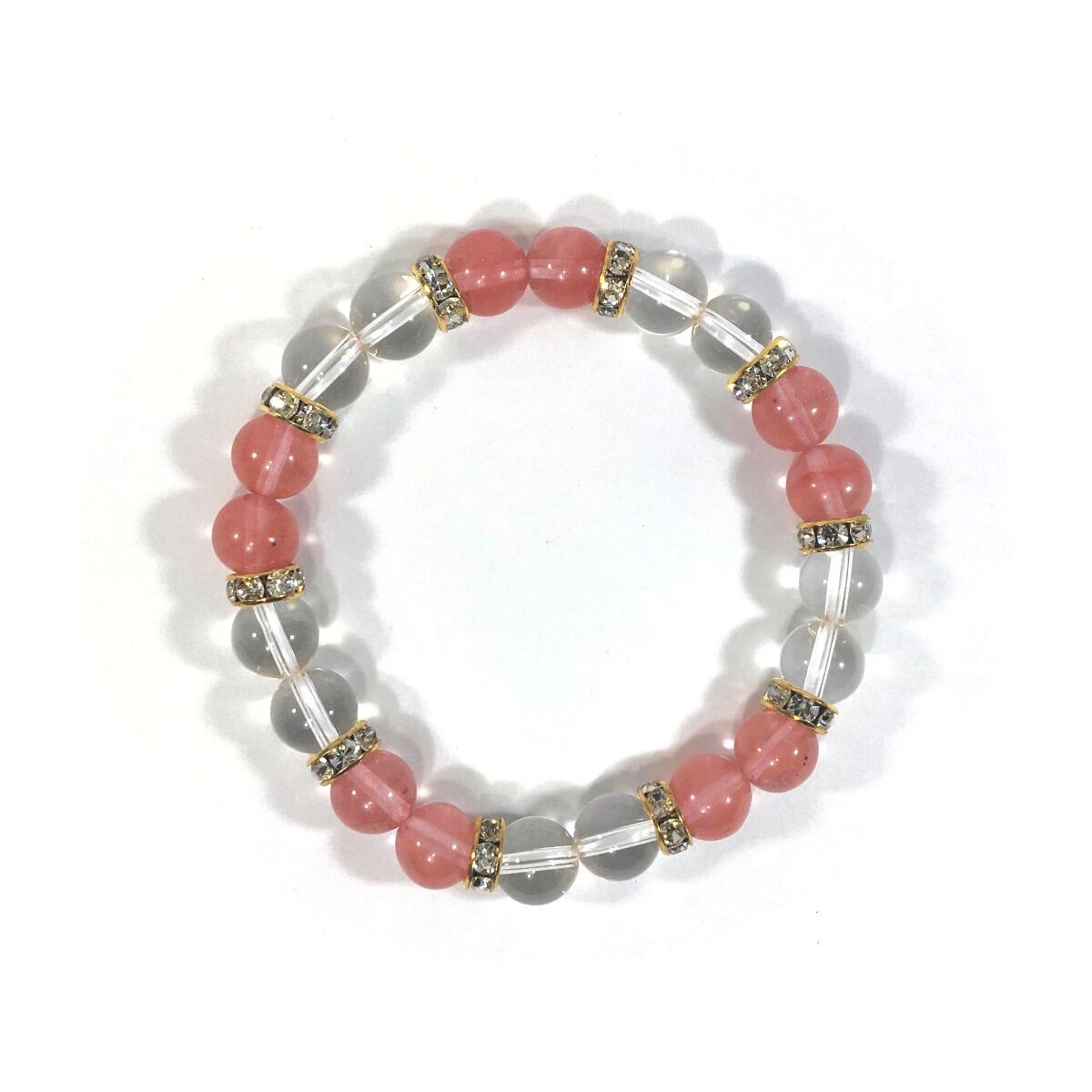 水晶&チェリークォーツ パワーストーン ブレスレット 天然石ブレスレット 8mm(ゴールド)レディース 女性 数珠ブレス 開運 プレゼント ギフト