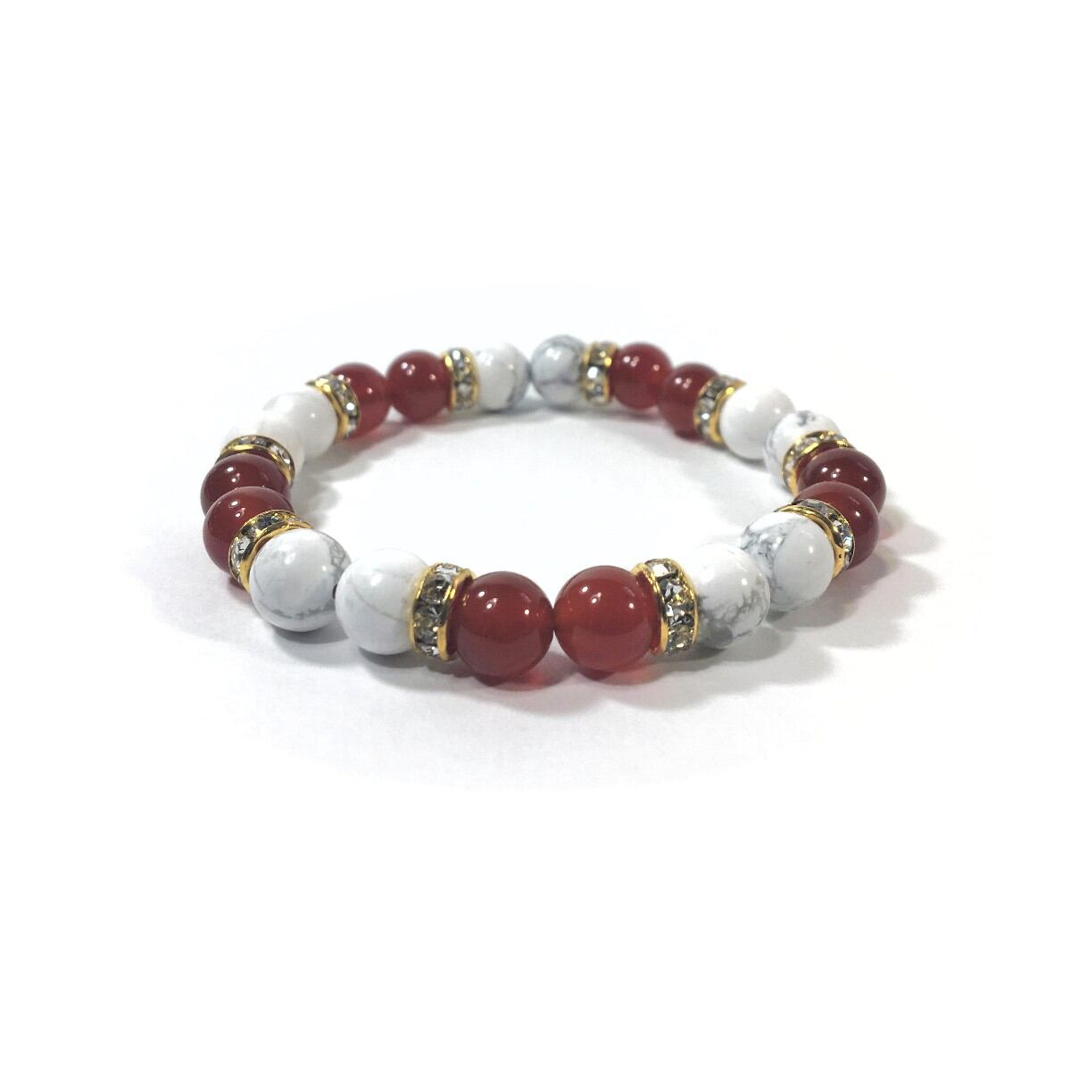 ハウライト&赤瑪瑙 パワーストーン ブレスレット 天然石ブレス 8mm(ゴールド)レディース 女性 数珠ブレス 開運 プレゼント ギフト