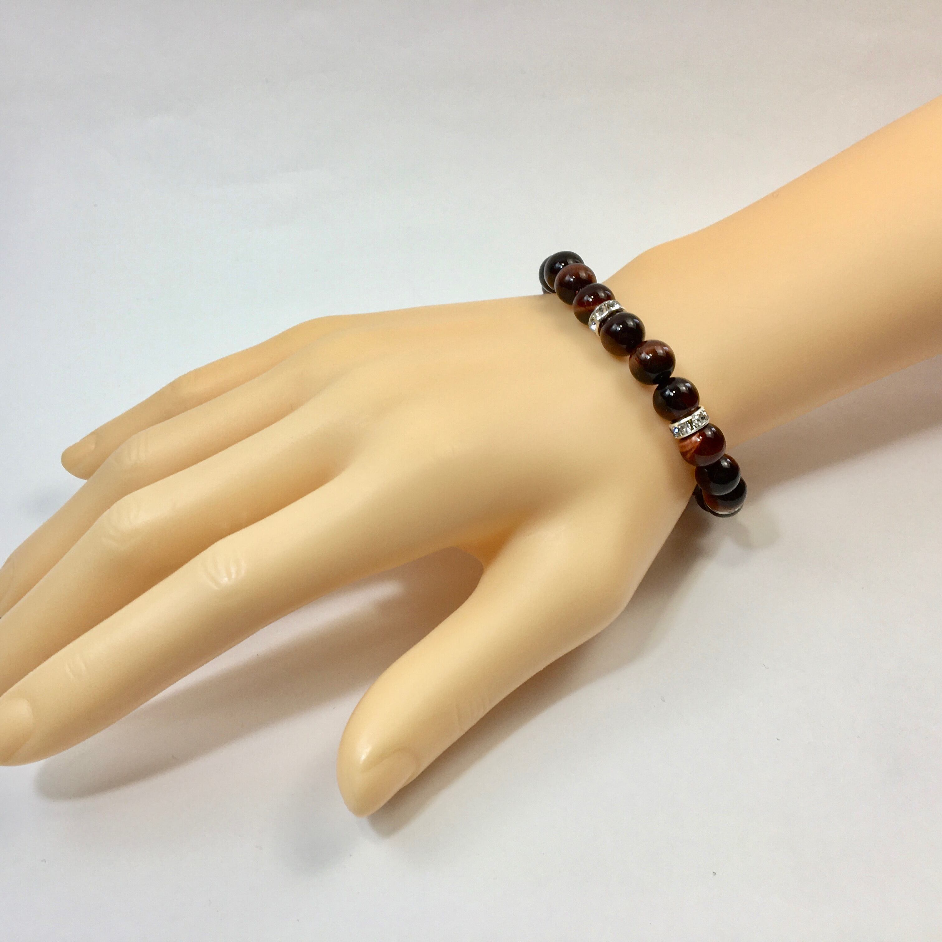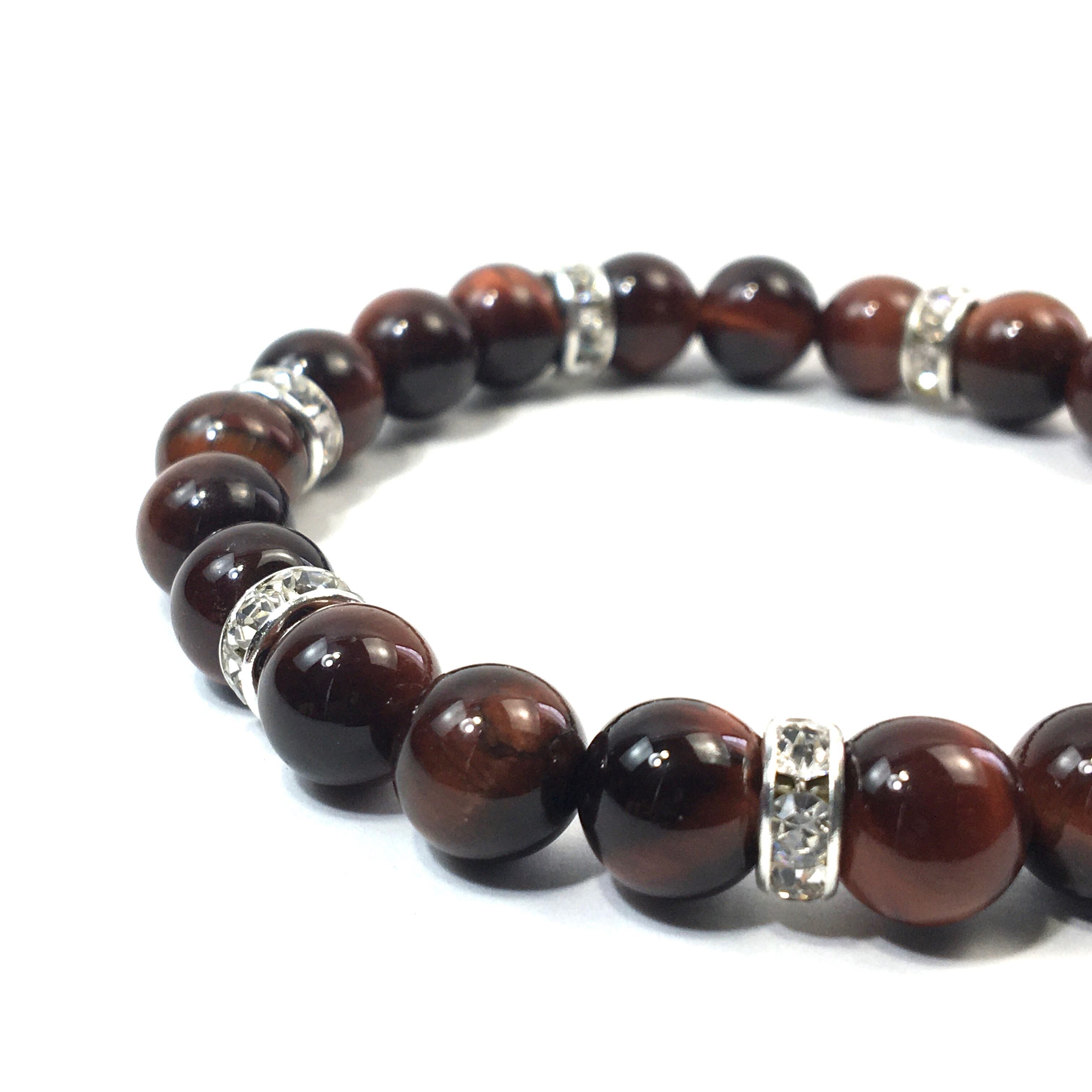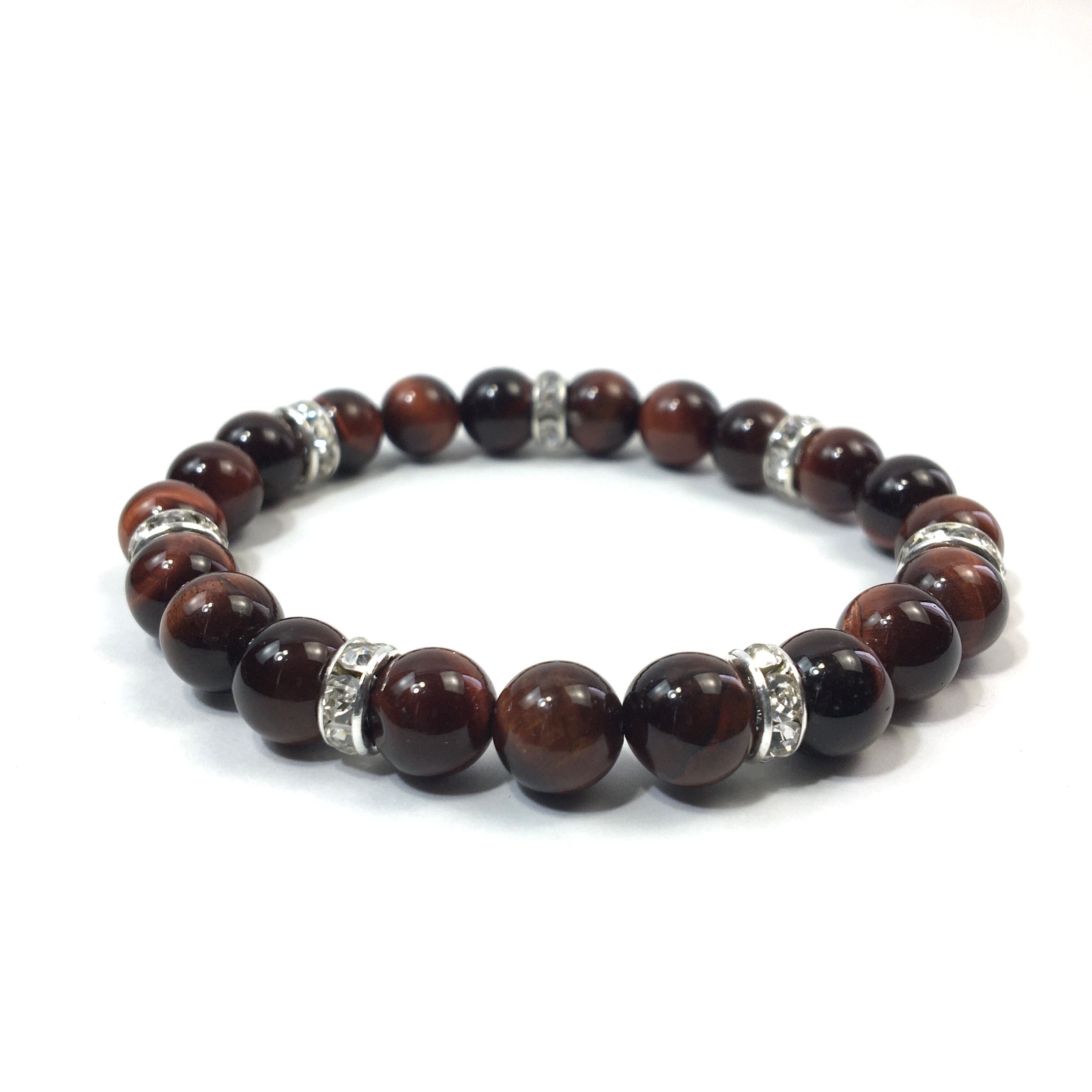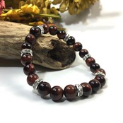 こちらは、8mm玉のレッドタイガーアイを使ったパワーストーンブレスレットです。シンプルなデザインでどんなコーディネートにも合わせやすいデザインに仕上げています。サイズは内周約15cmです。気になる方は是非この機会にどうぞ。
