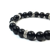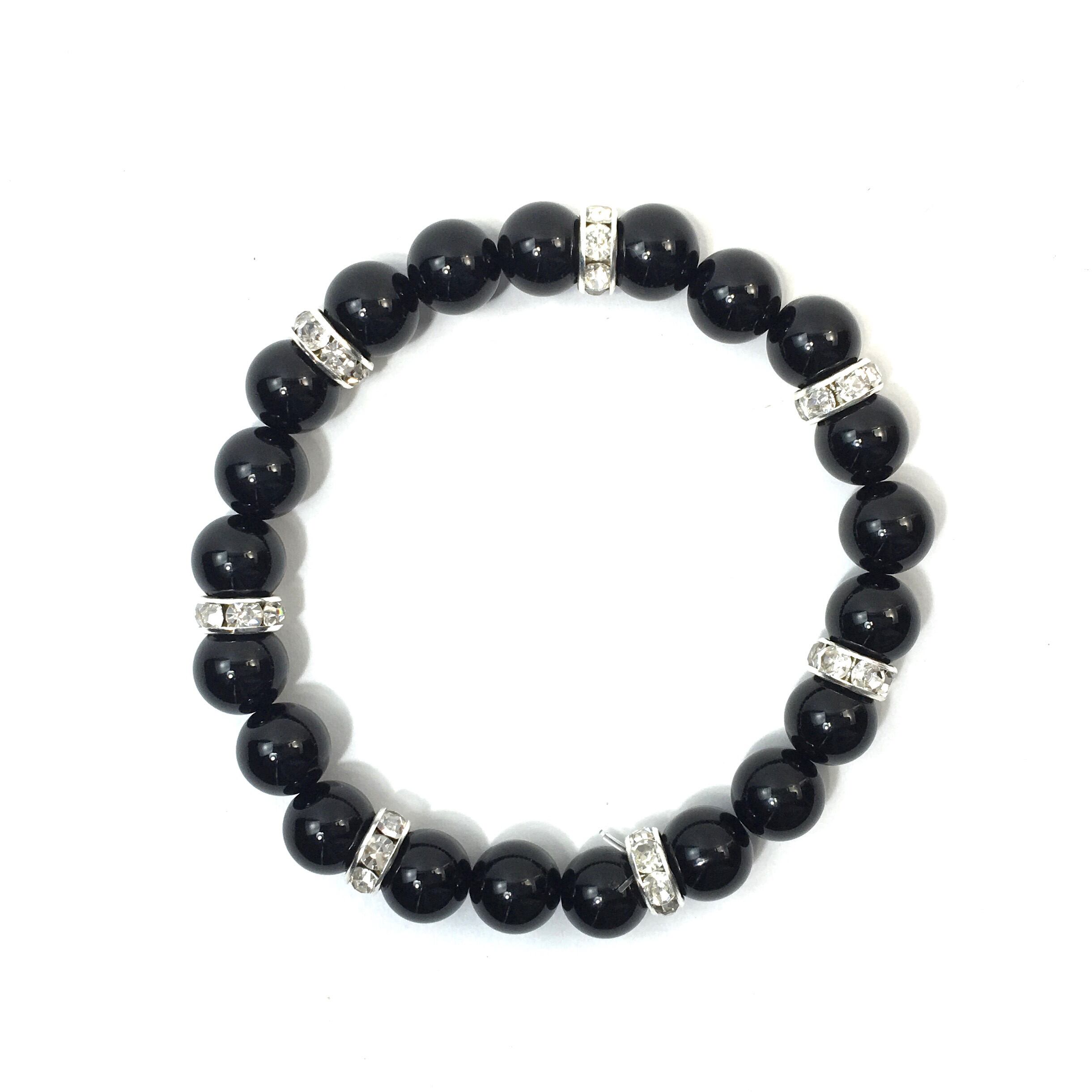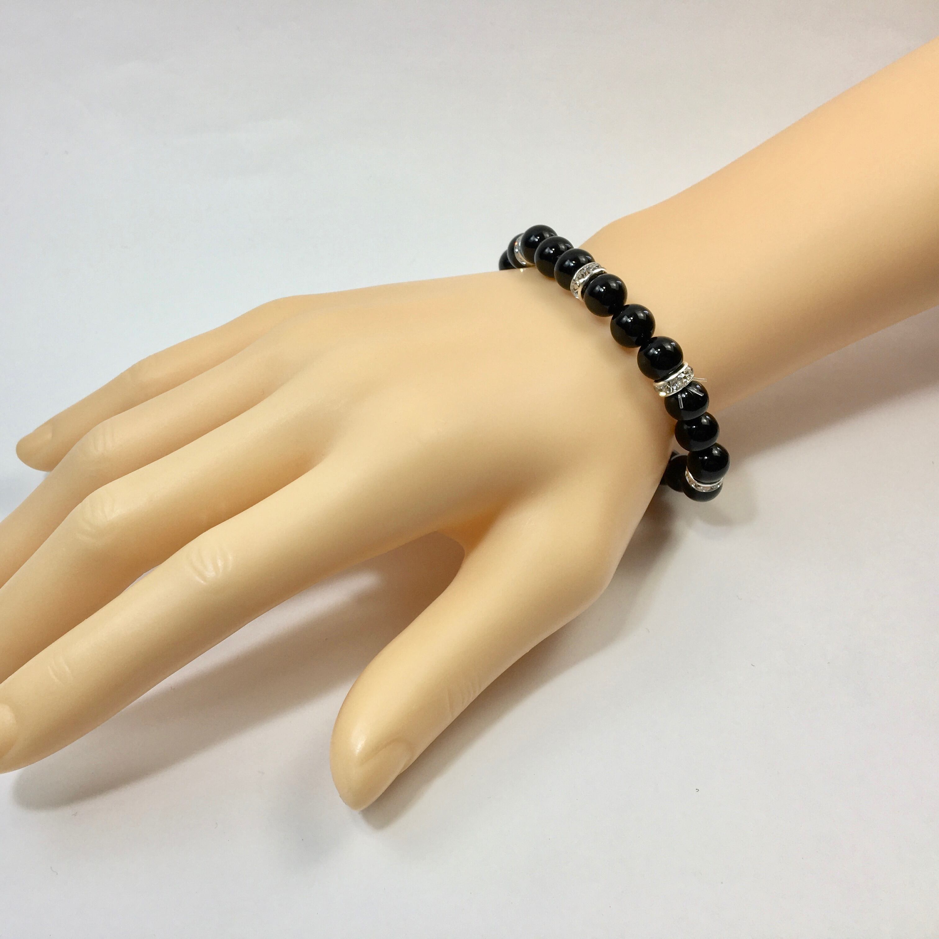 こちらは、8mm玉のオニキスを使ったパワーストーンブレスレットです。シンプルなデザインでどんなコーディネートにも合わせやすいデザインに仕上げています。サイズは内周約15cmです。気になる方は是非この機会にどうぞ。