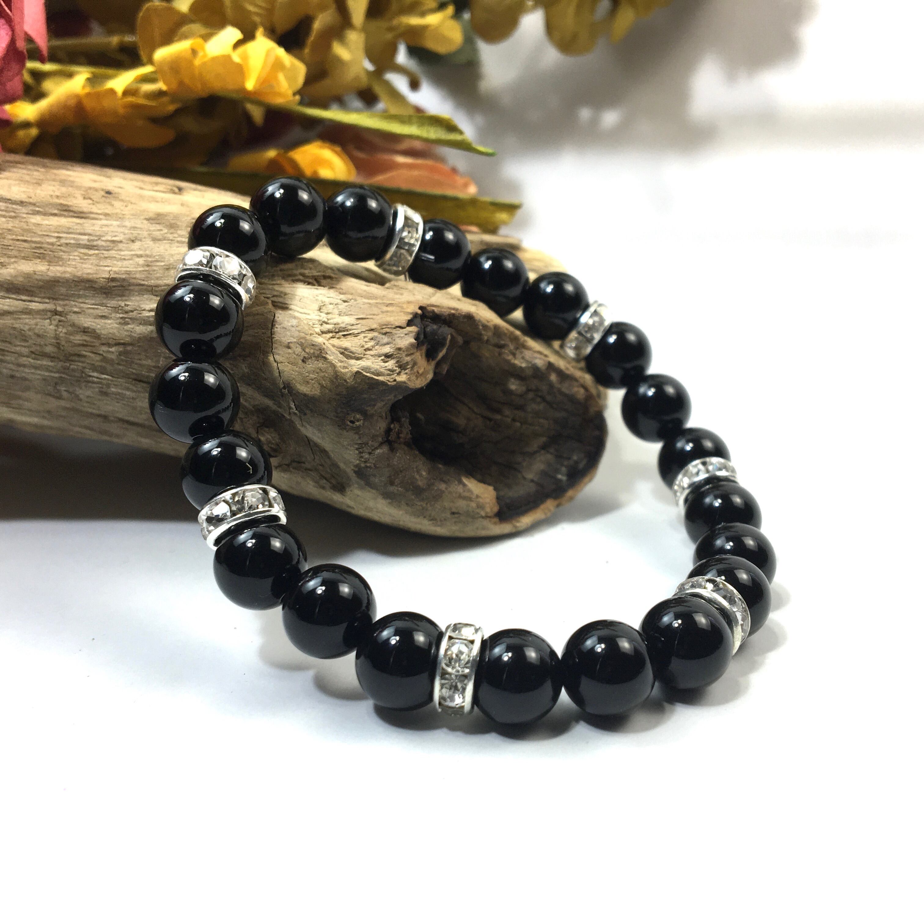 パワーストーン ブレスレット オニキス 天然石ブレス (シルバー)レディース 女性 数珠ブレス 開運 プレゼント ギフト