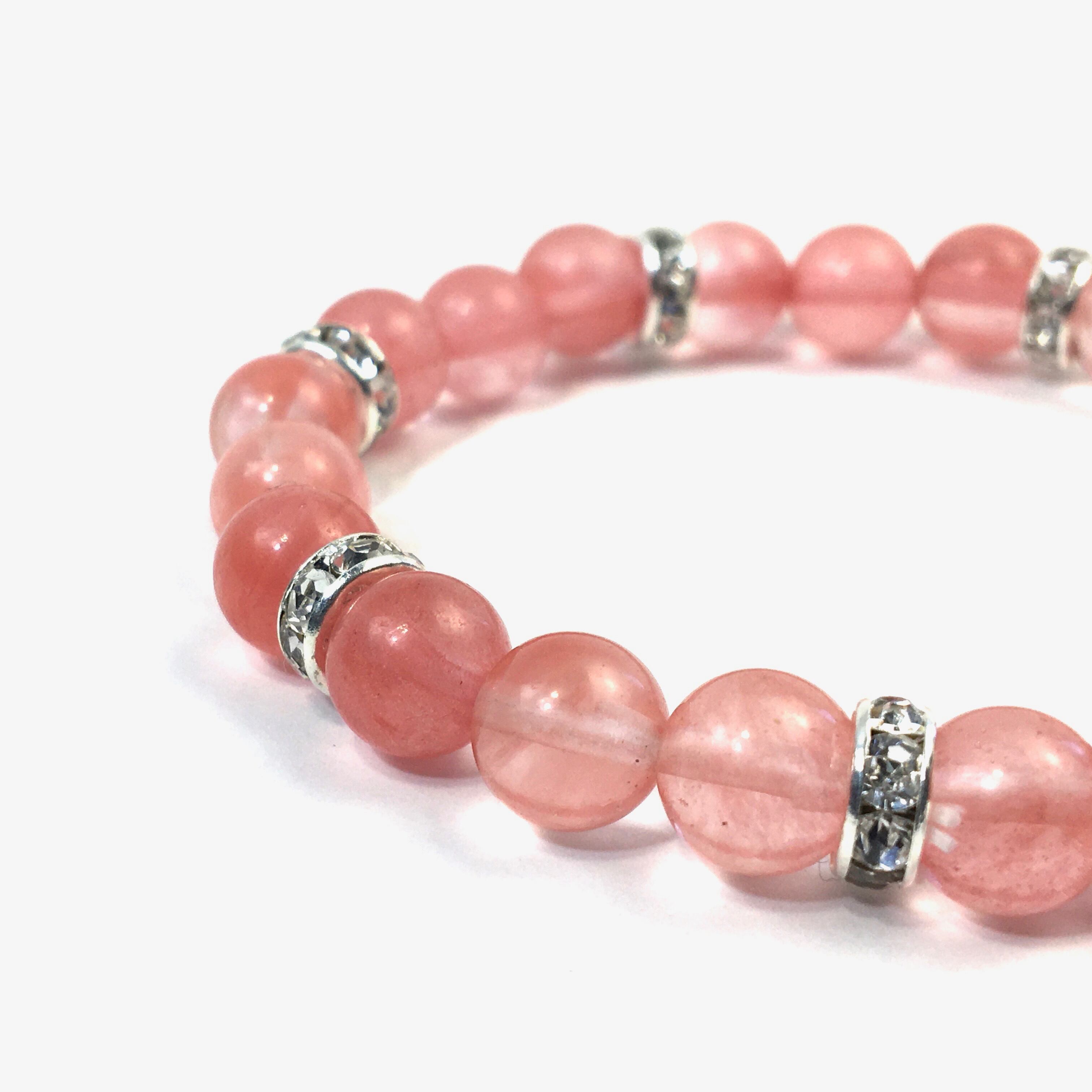 こちらは、8mm玉のチェリークォーツを使ったパワーストーンブレスレットです。シンプルなデザインでどんなコーディネートにも合わせやすいデザインに仕上げています。サイズは内周約15cmです。気になる方は是非この機会にどうぞ。