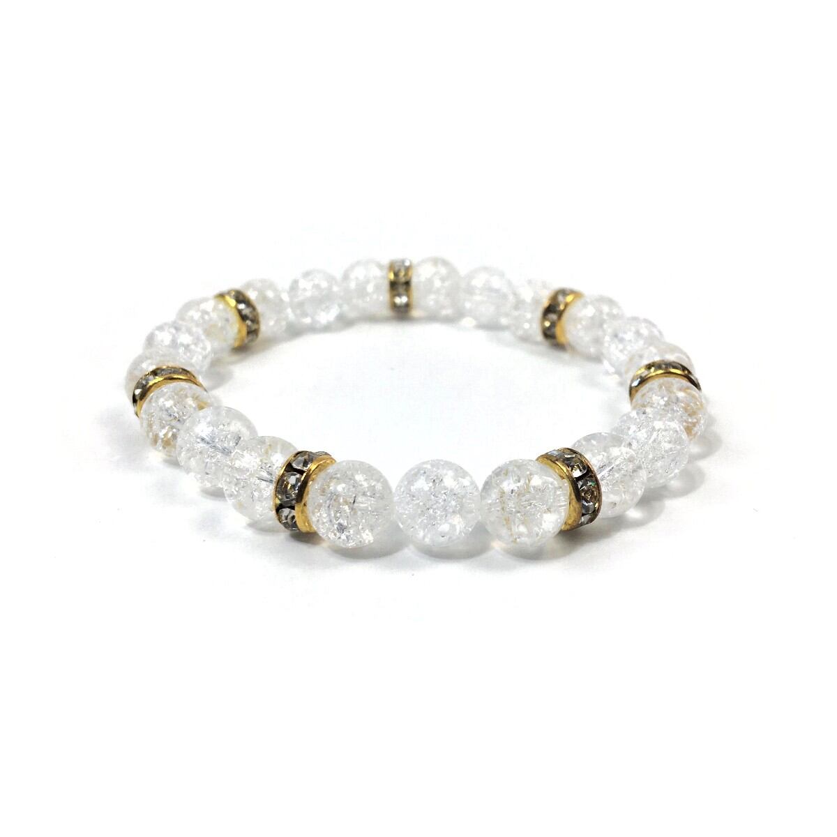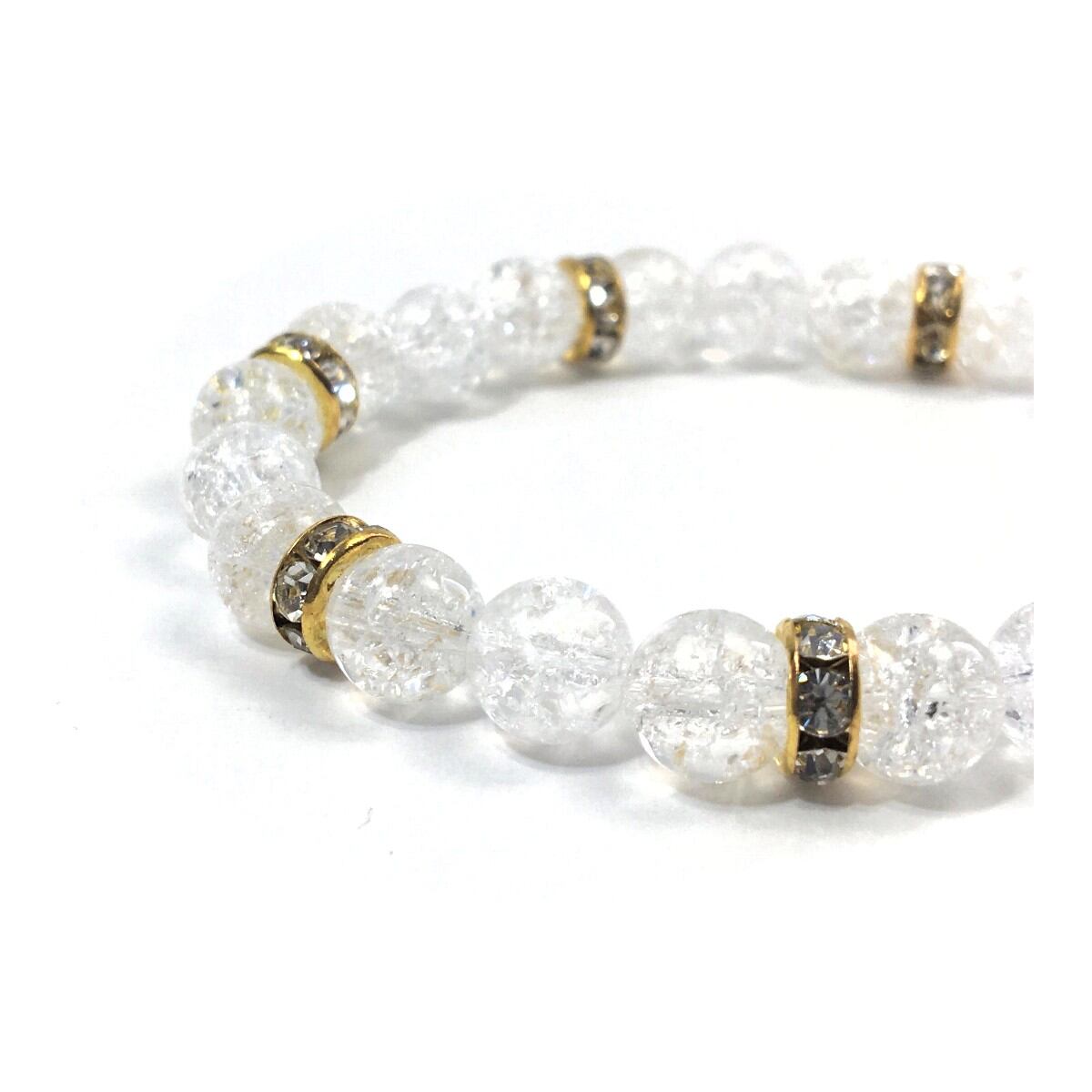パワーストーン ブレスレット クラック水晶 天然石ブレス (ゴールド)レディース 女性 数珠ブレス 開運 プレゼント ギフト