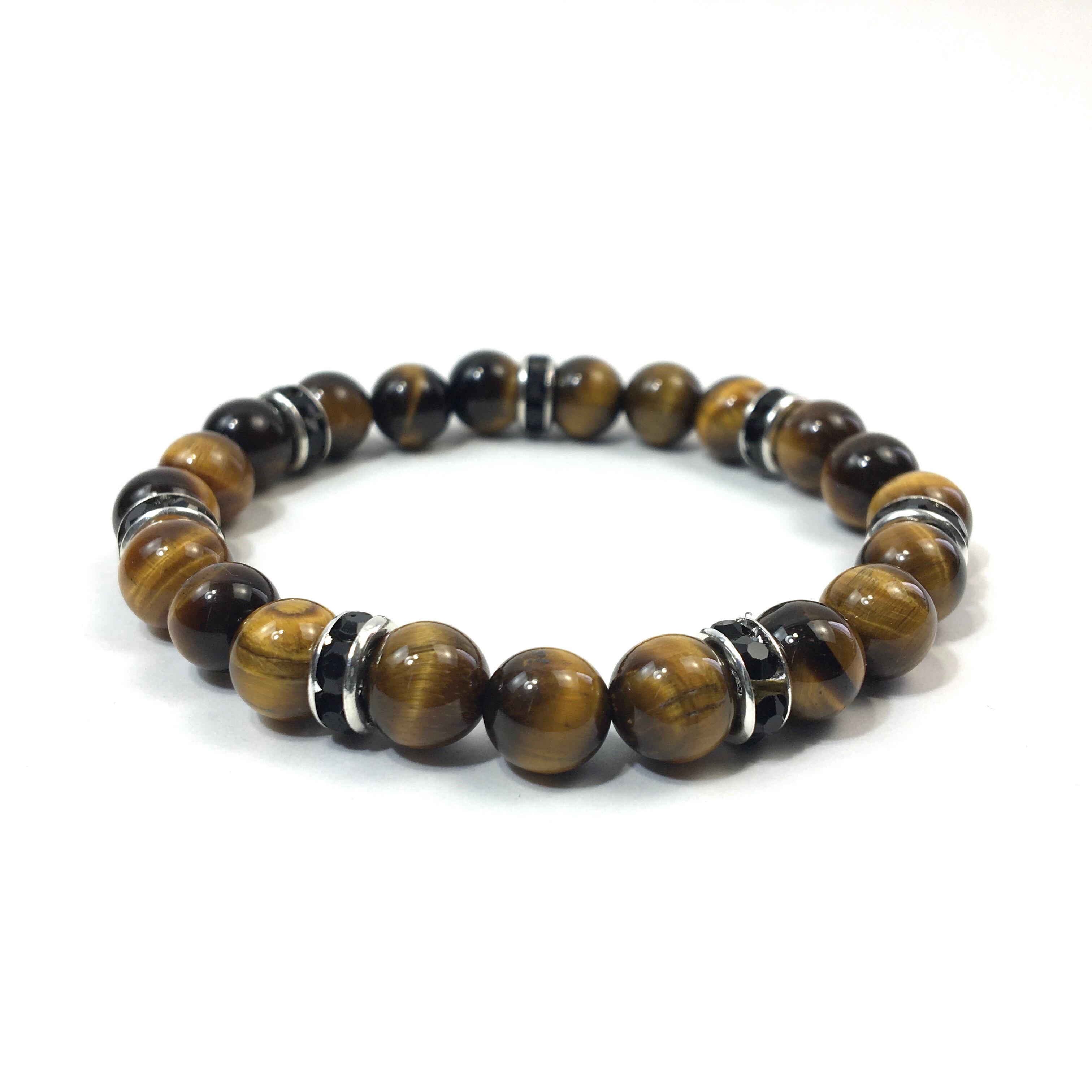 こちらは、8mm玉のタイガーアイを使ったパワーストーンブレスレットです。シンプルなデザインでどんなコーディネートにも合わせやすいデザインに仕上げています。サイズは内周約15cmです。気になる方は是非この機会にどうぞ。
