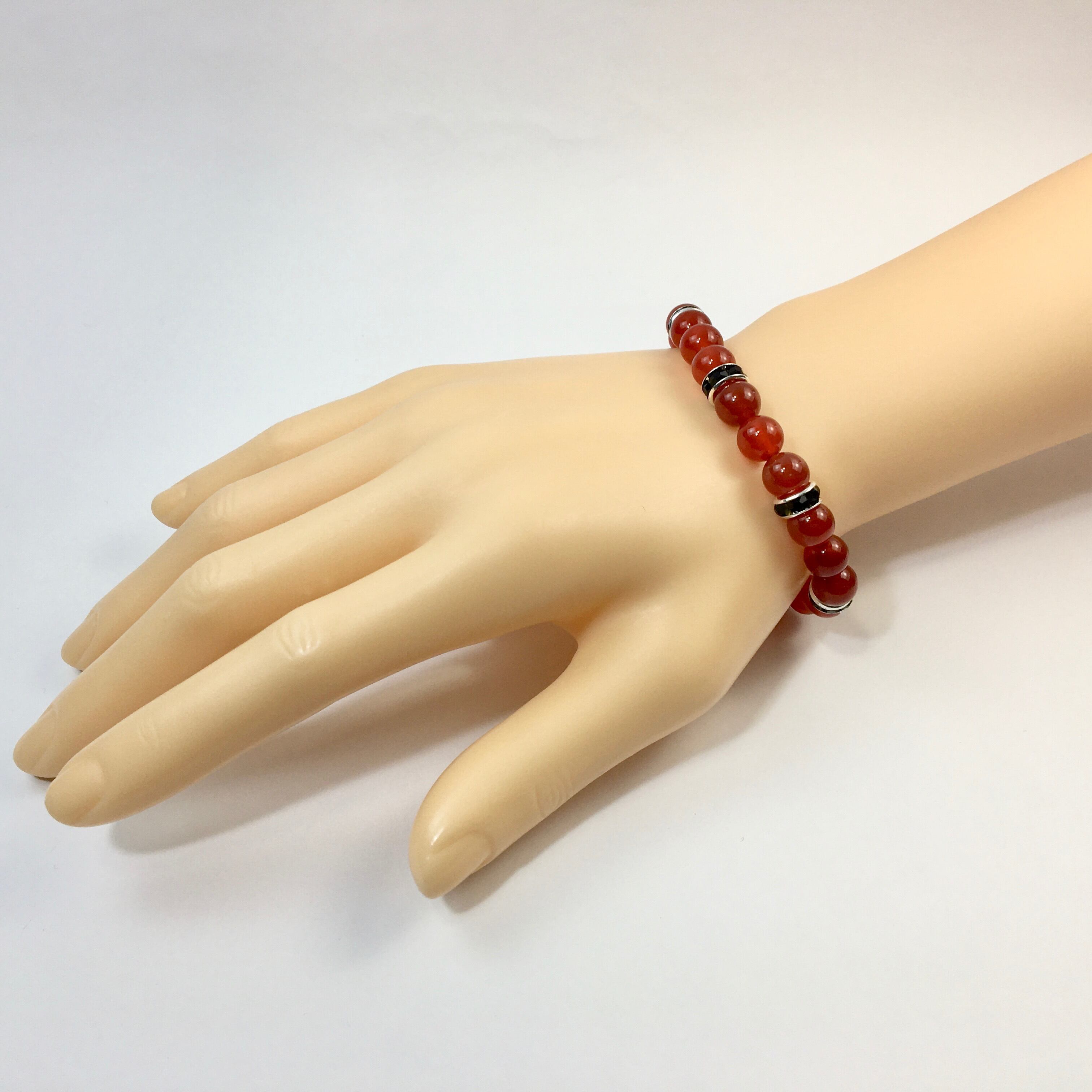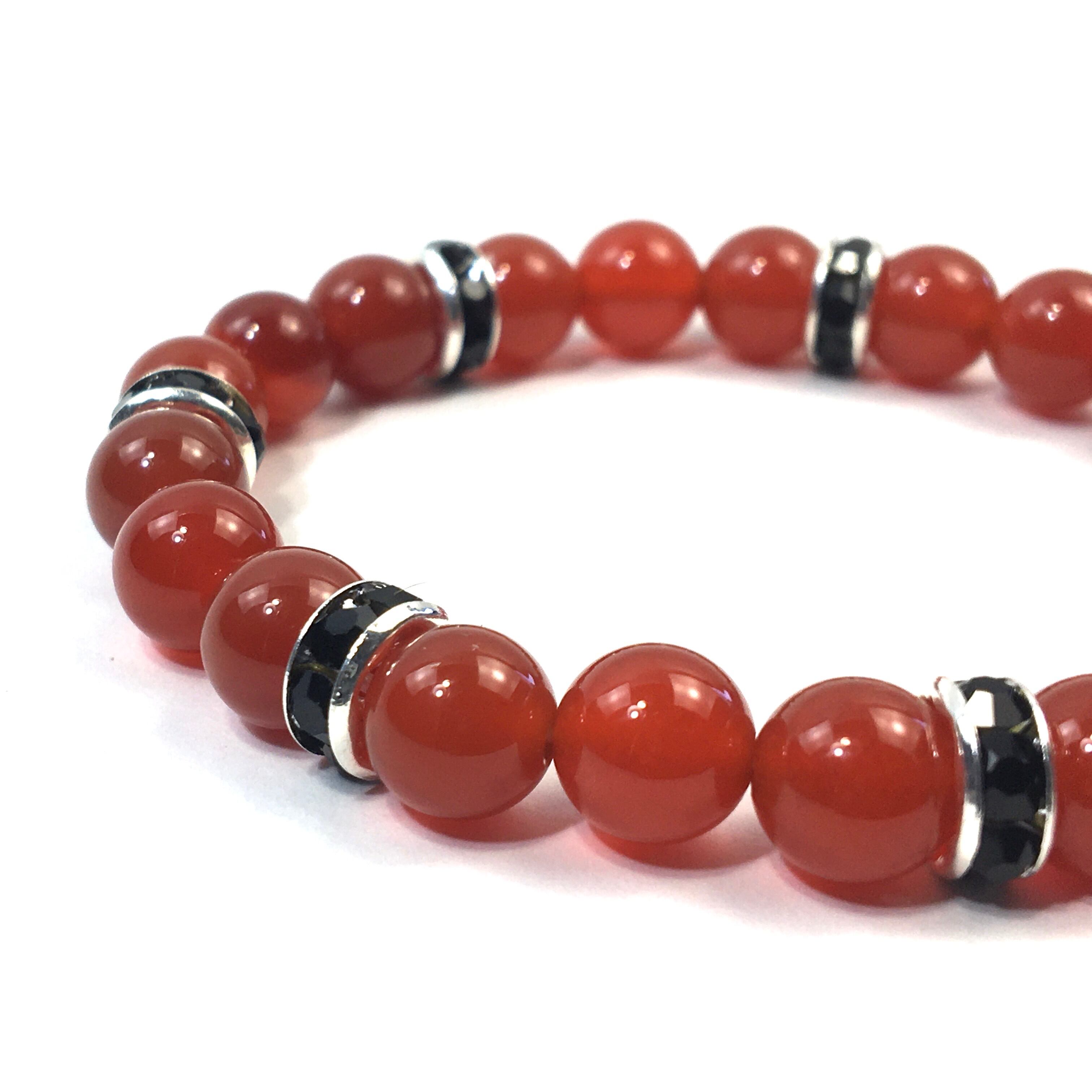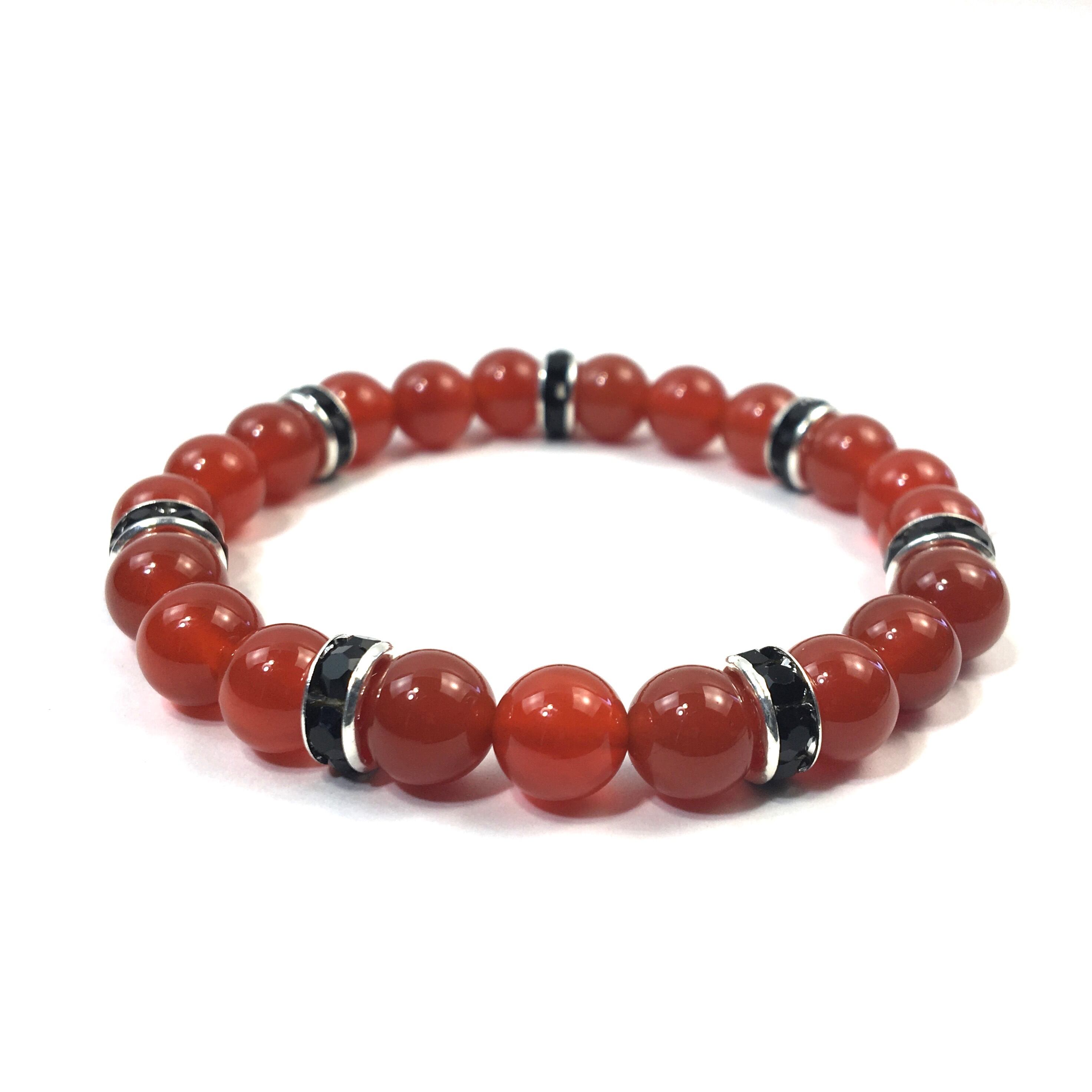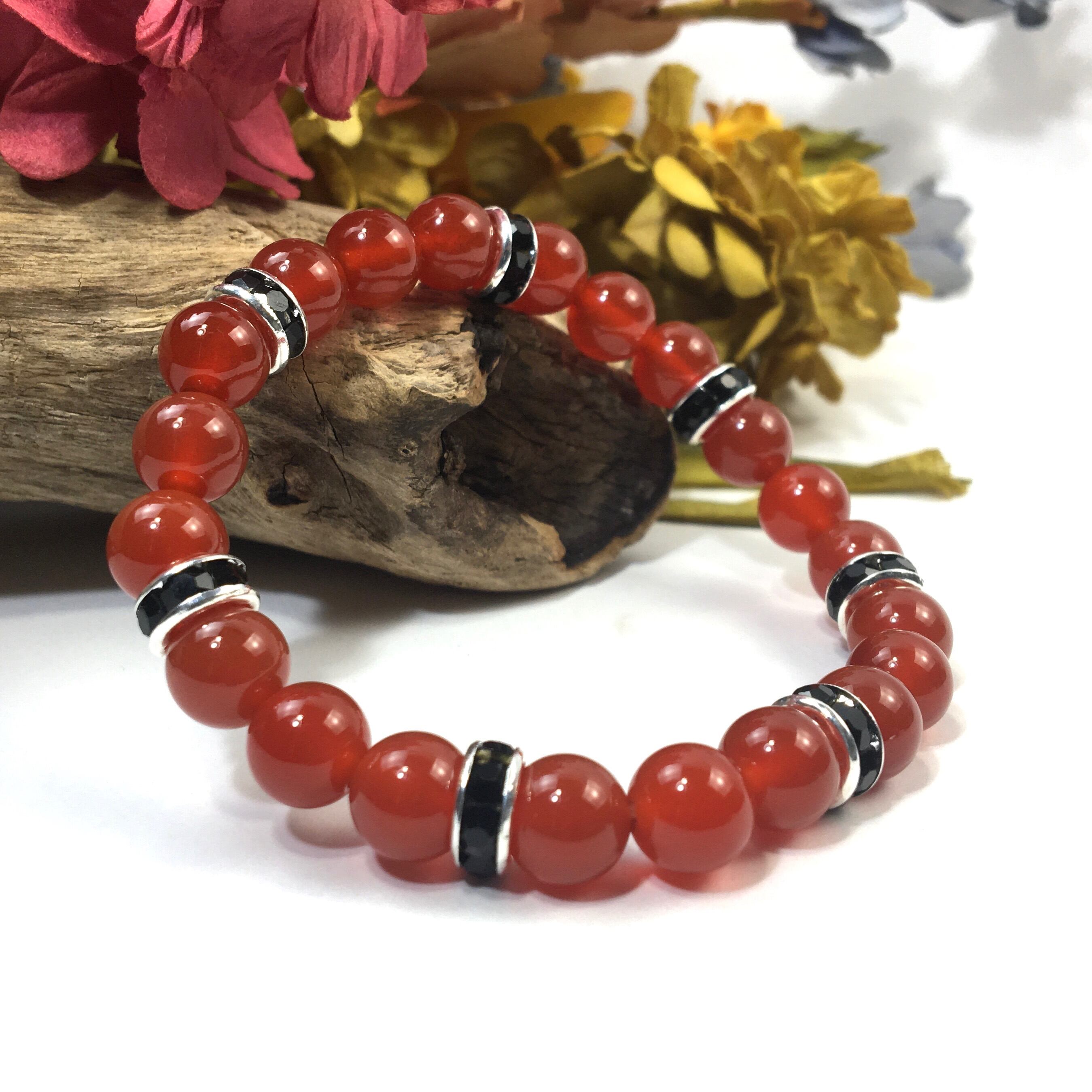パワーストーン ブレスレット 赤瑪瑙 天然石ブレス (ブラック)レディース 女性 数珠ブレス 開運 プレゼント ギフト