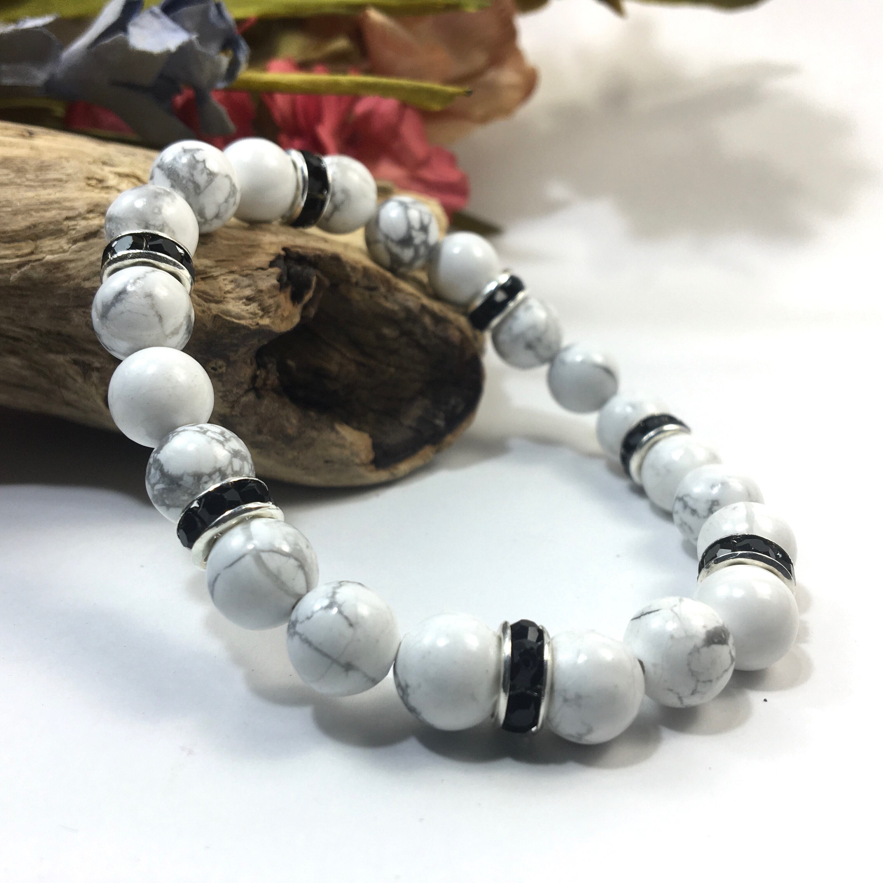 パワーストーン ブレスレット ハウライト 天然石ブレス (ブラック)レディース 女性 数珠ブレス 開運 プレゼント ギフト