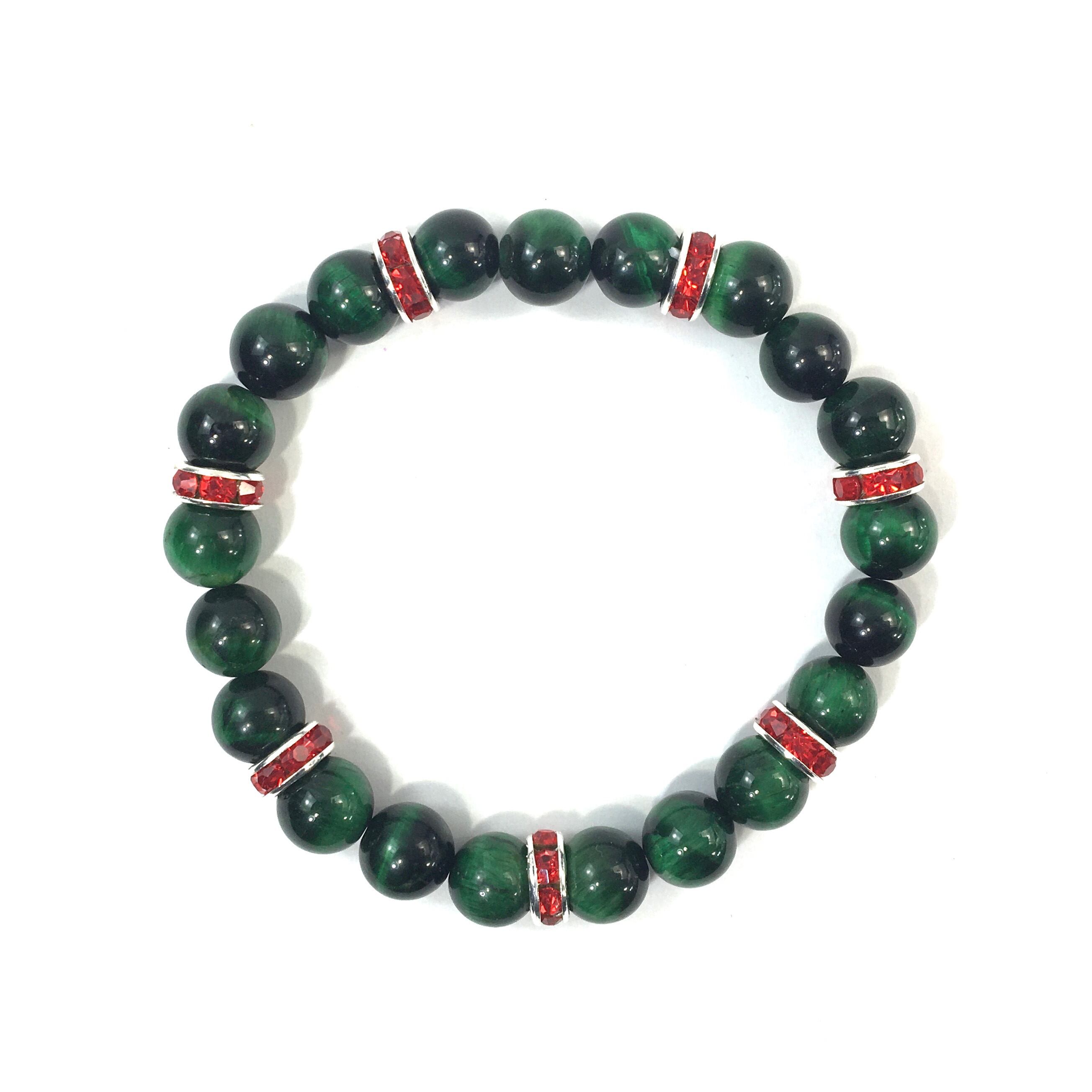 パワーストーン ブレスレット グリーンタイガーアイ (レッド)レディース 女性 数珠ブレス 開運 プレゼント ギフト